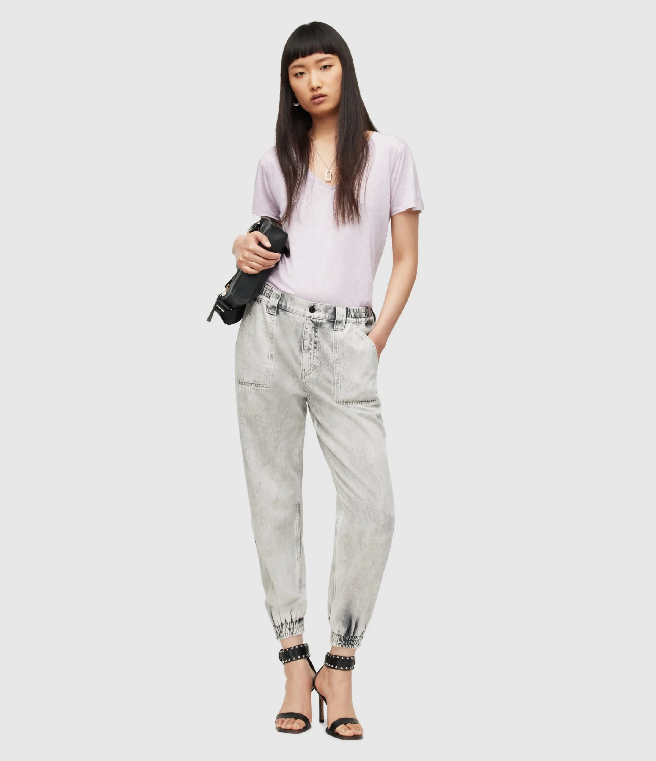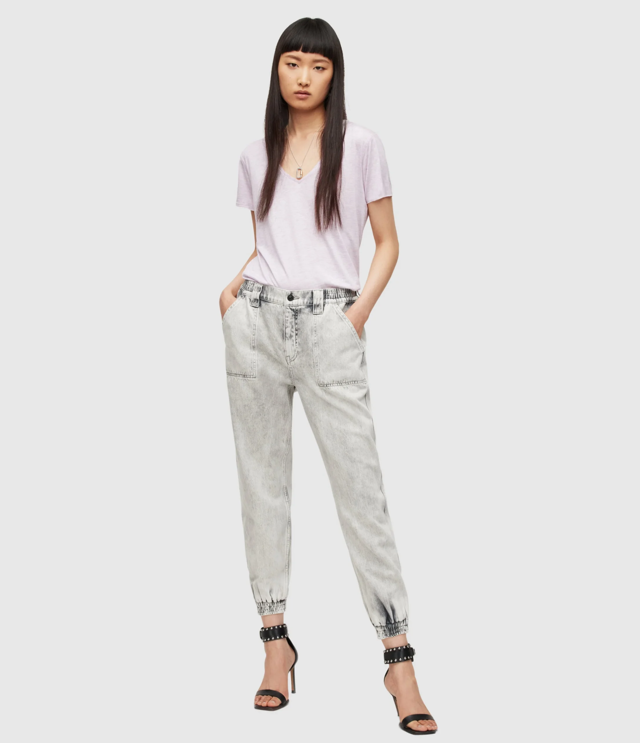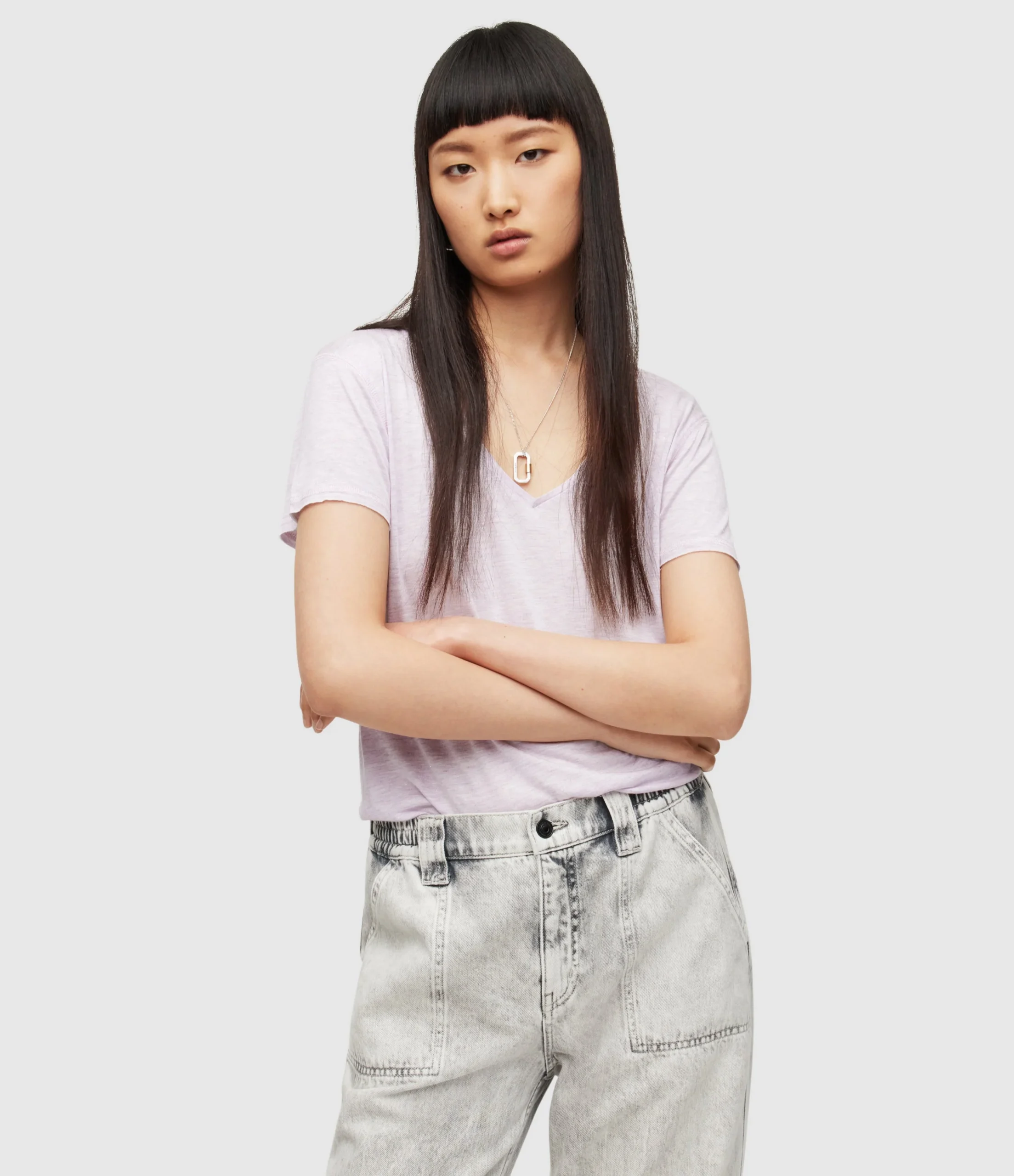 Camiseta Emelyn Rosa para mujer, marca AllSaints, con brillo. COMPOSICIÓN Y LAVADO: Consultar etiqueta interna.
