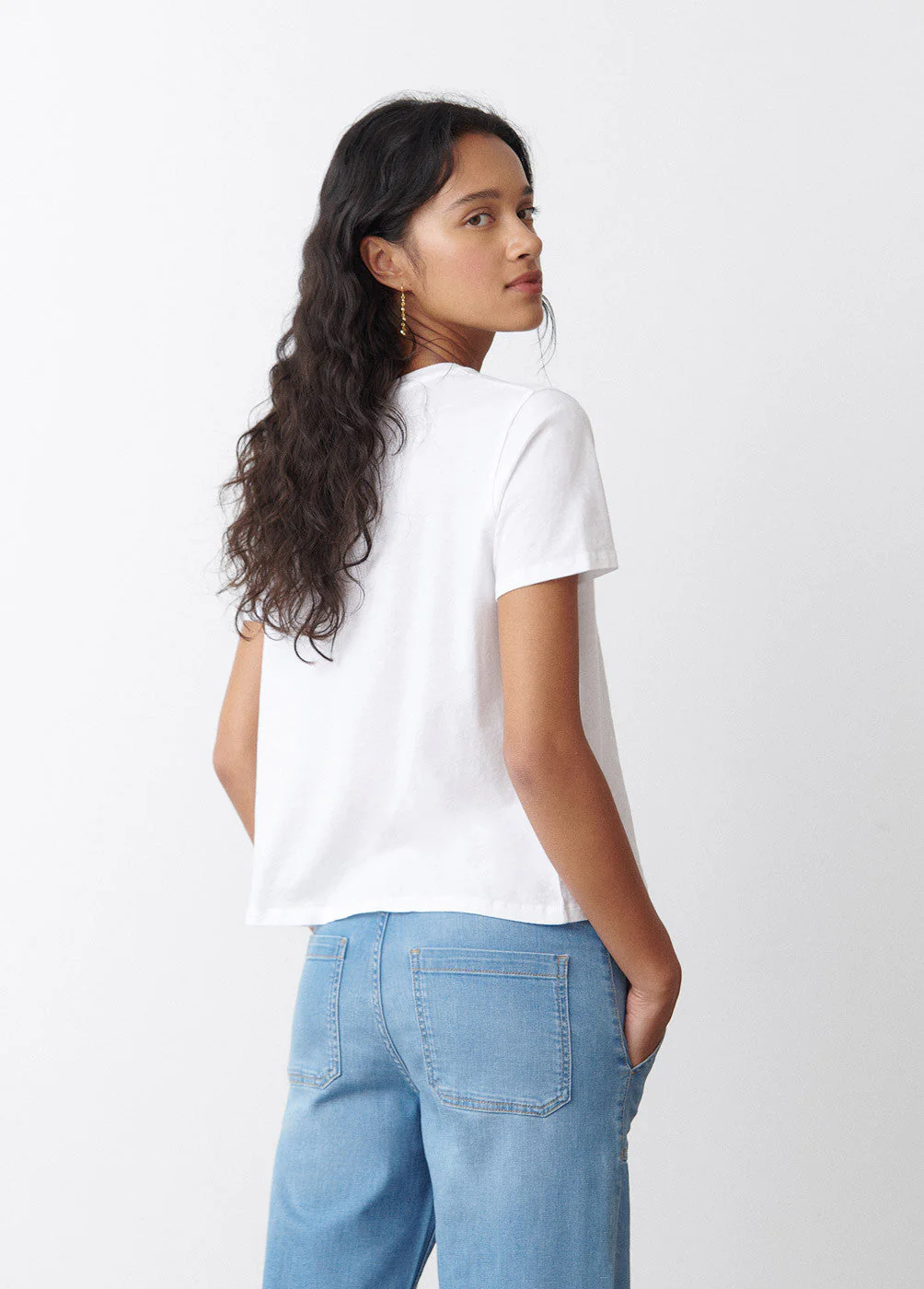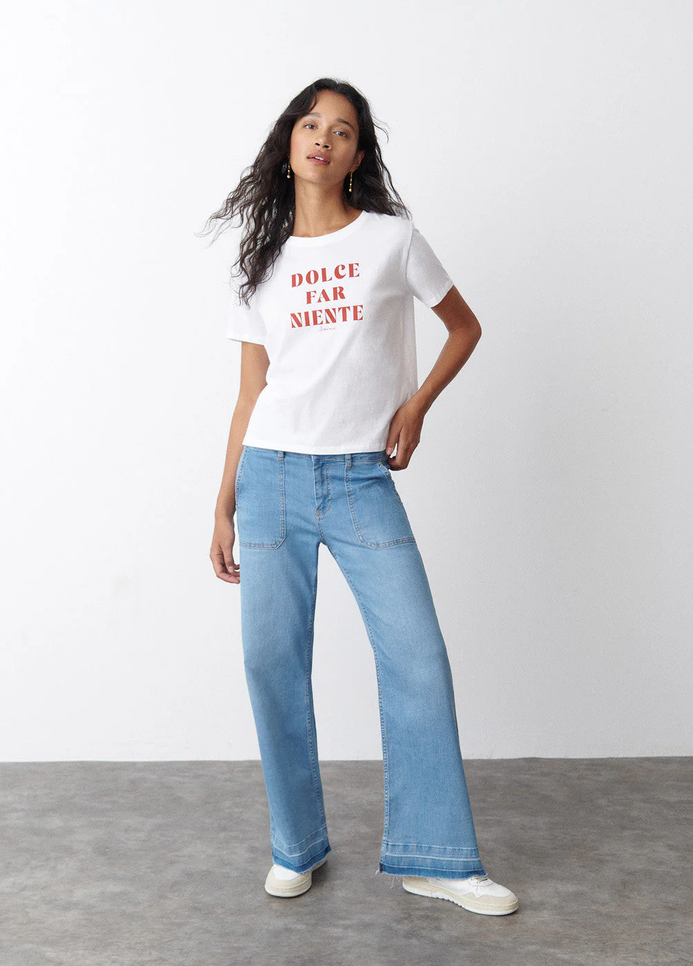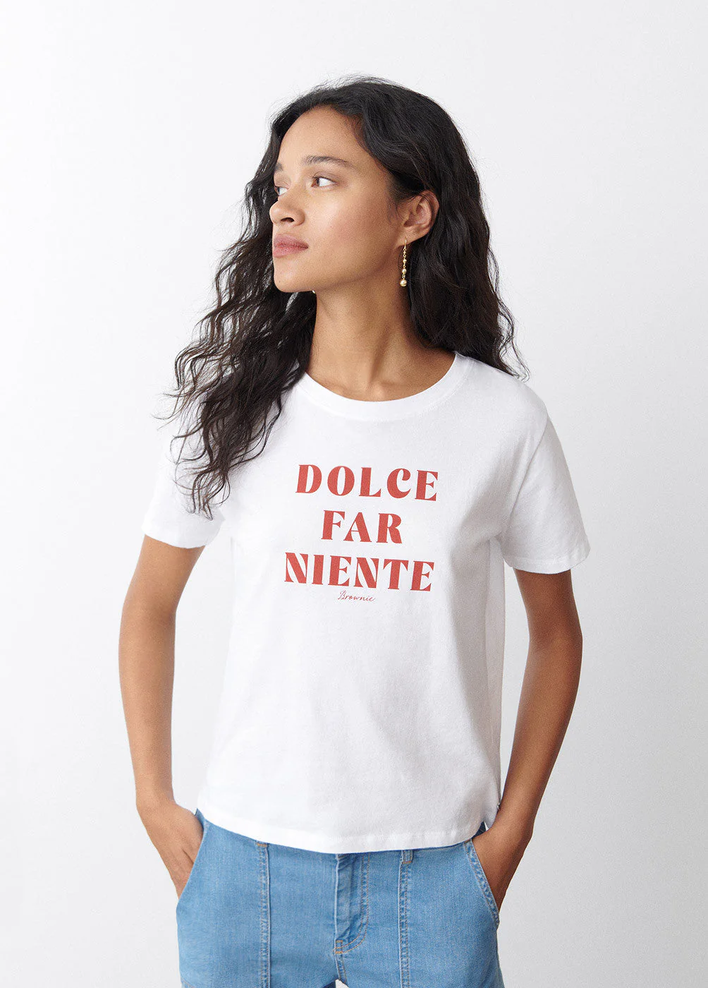 Camiseta de manga corta, cuello redondo y mensaje en el frontal.