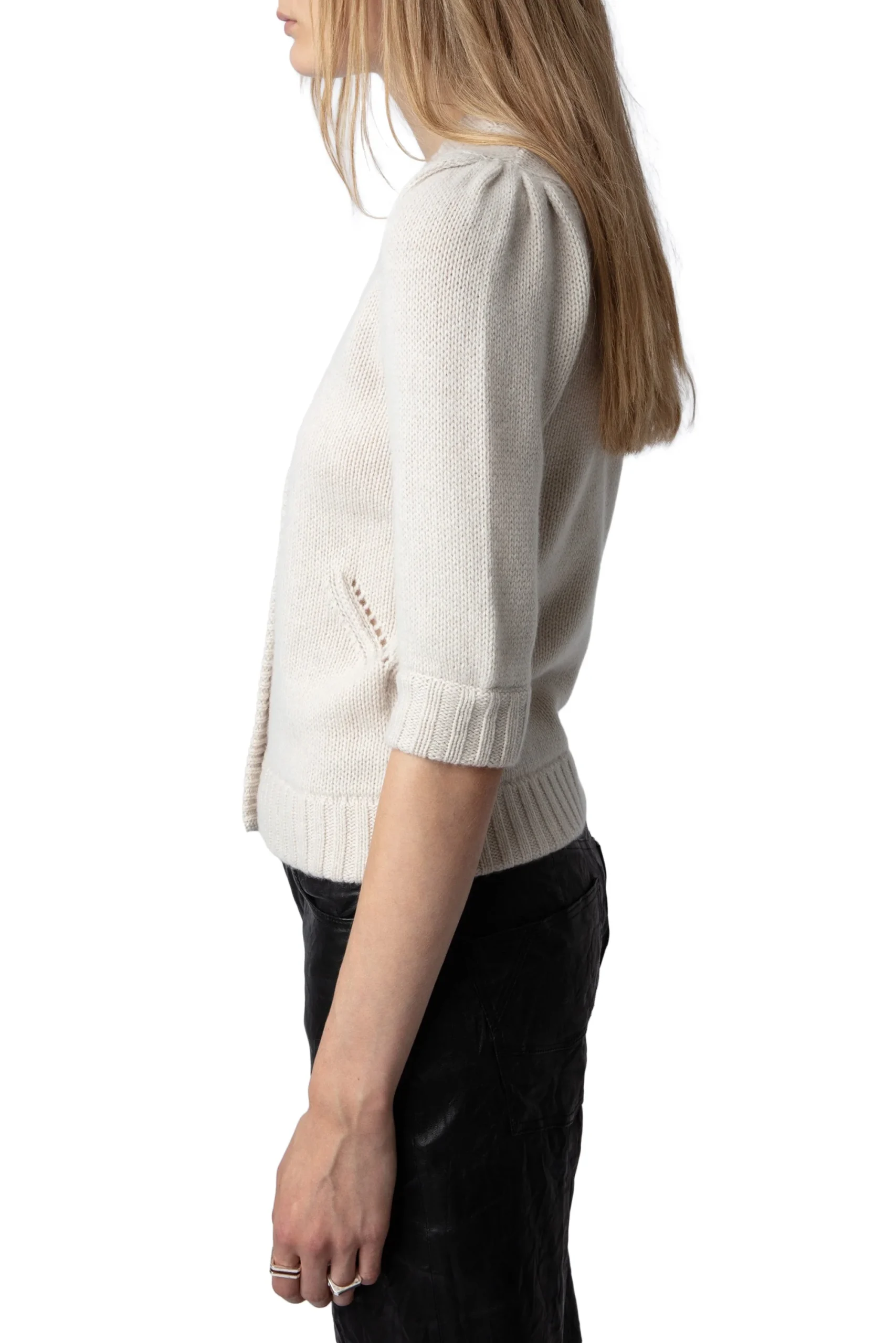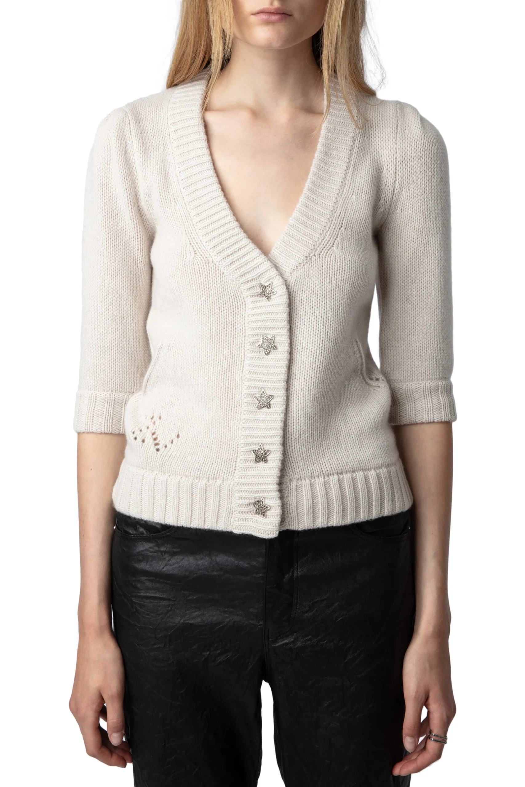 Cardigan Betsy Ecru marca Zadig & Voltaire. COMPOSICIÓN. Material principal: Cashmere. Consultar instrucciones de lavado en etiqueta interna.