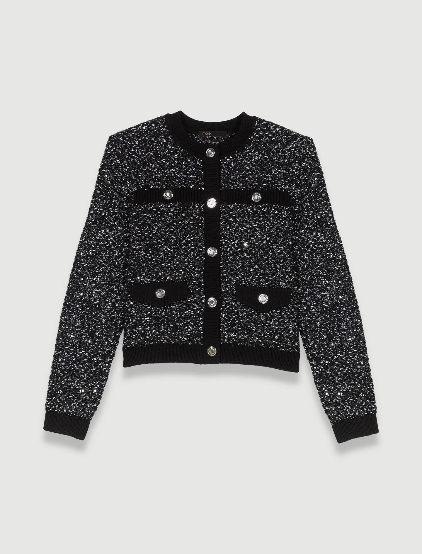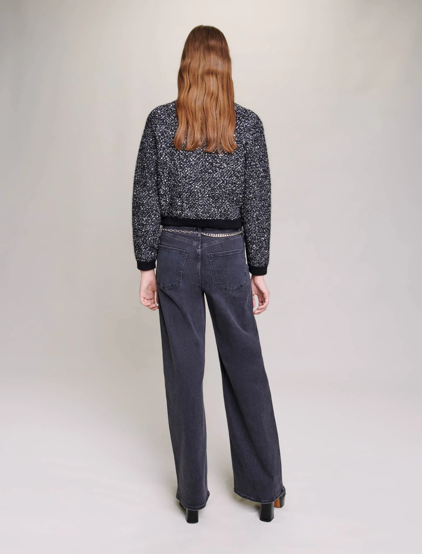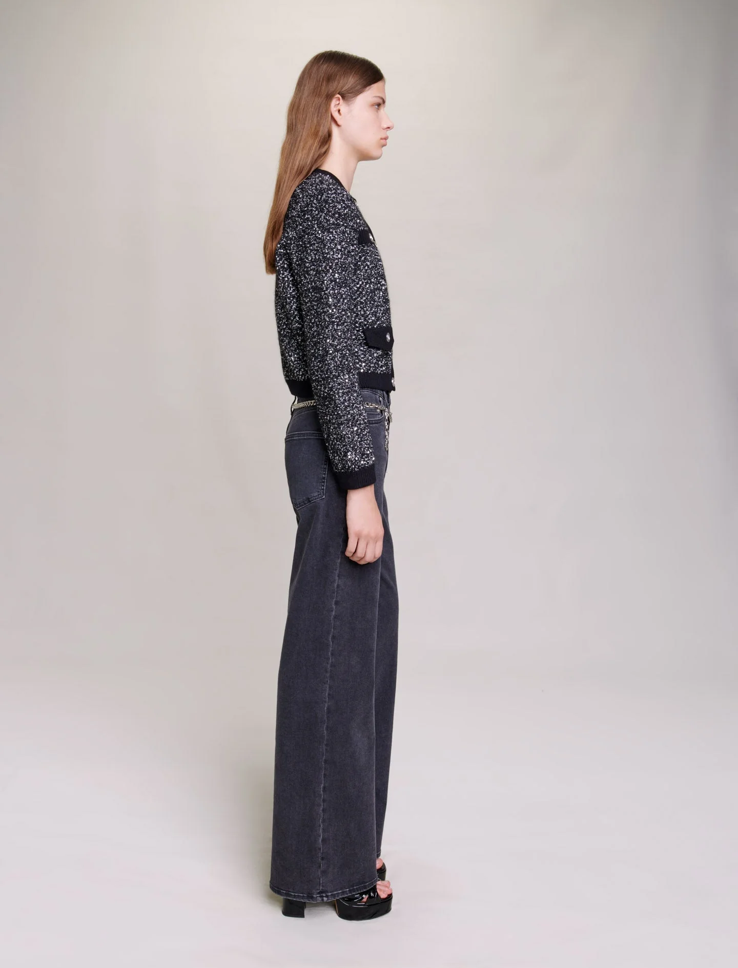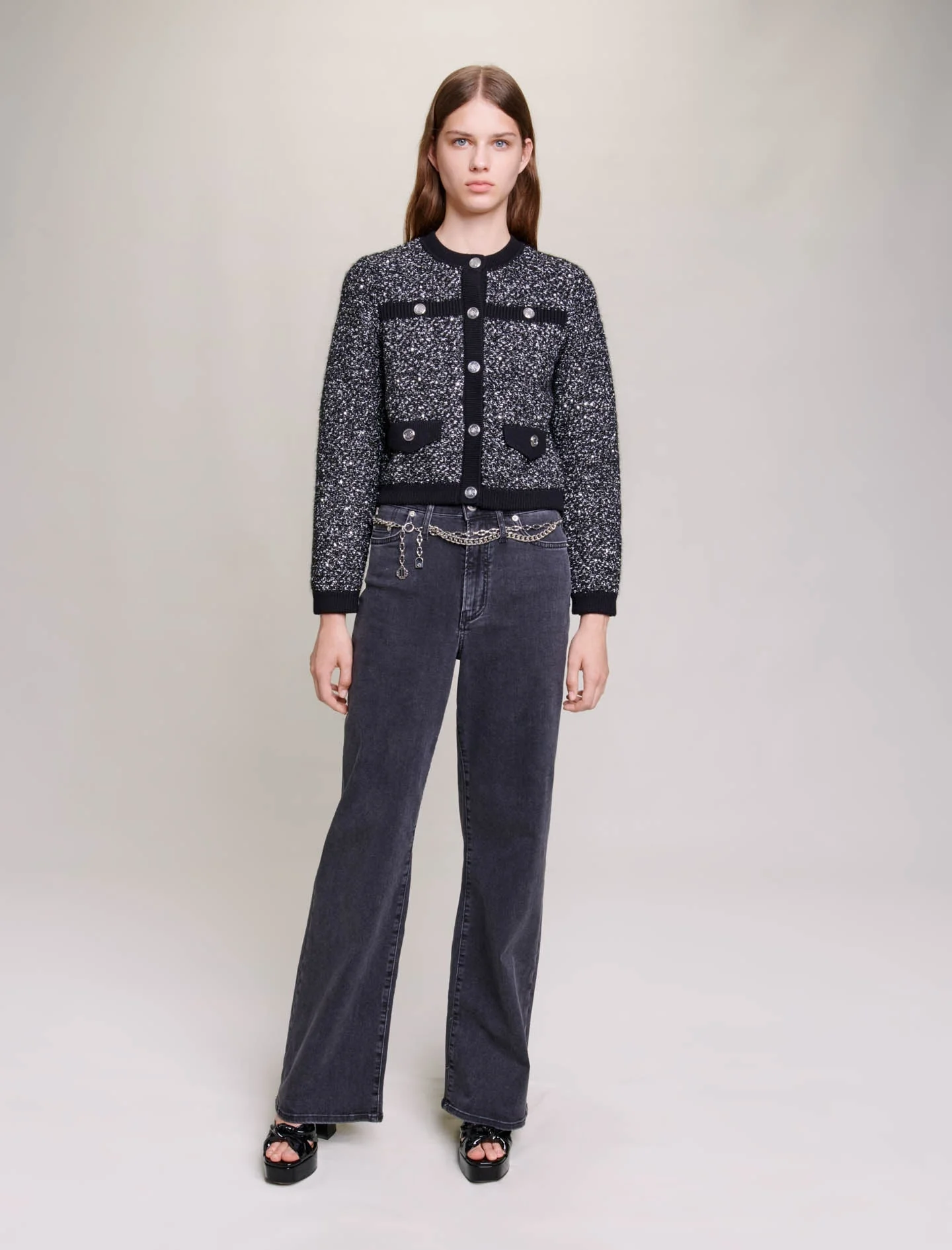 • Cárdigan corto de punto efecto tweed con hilos metalizados