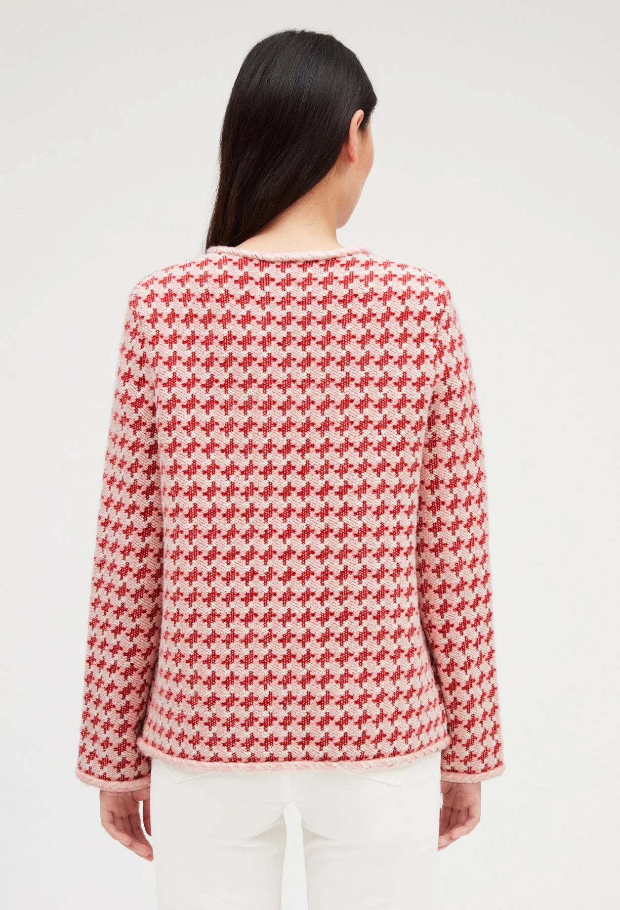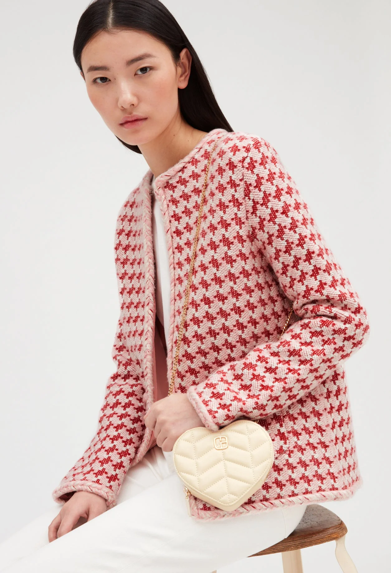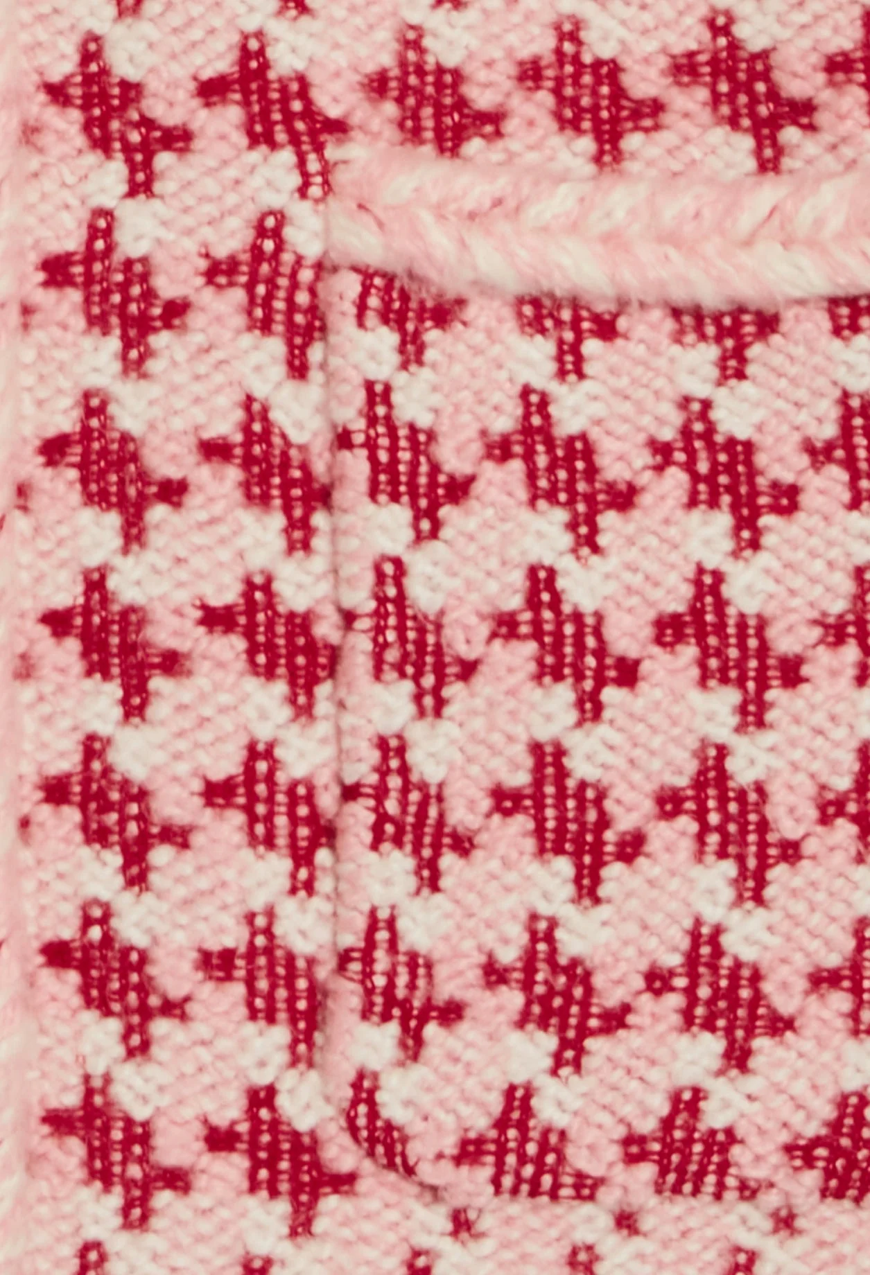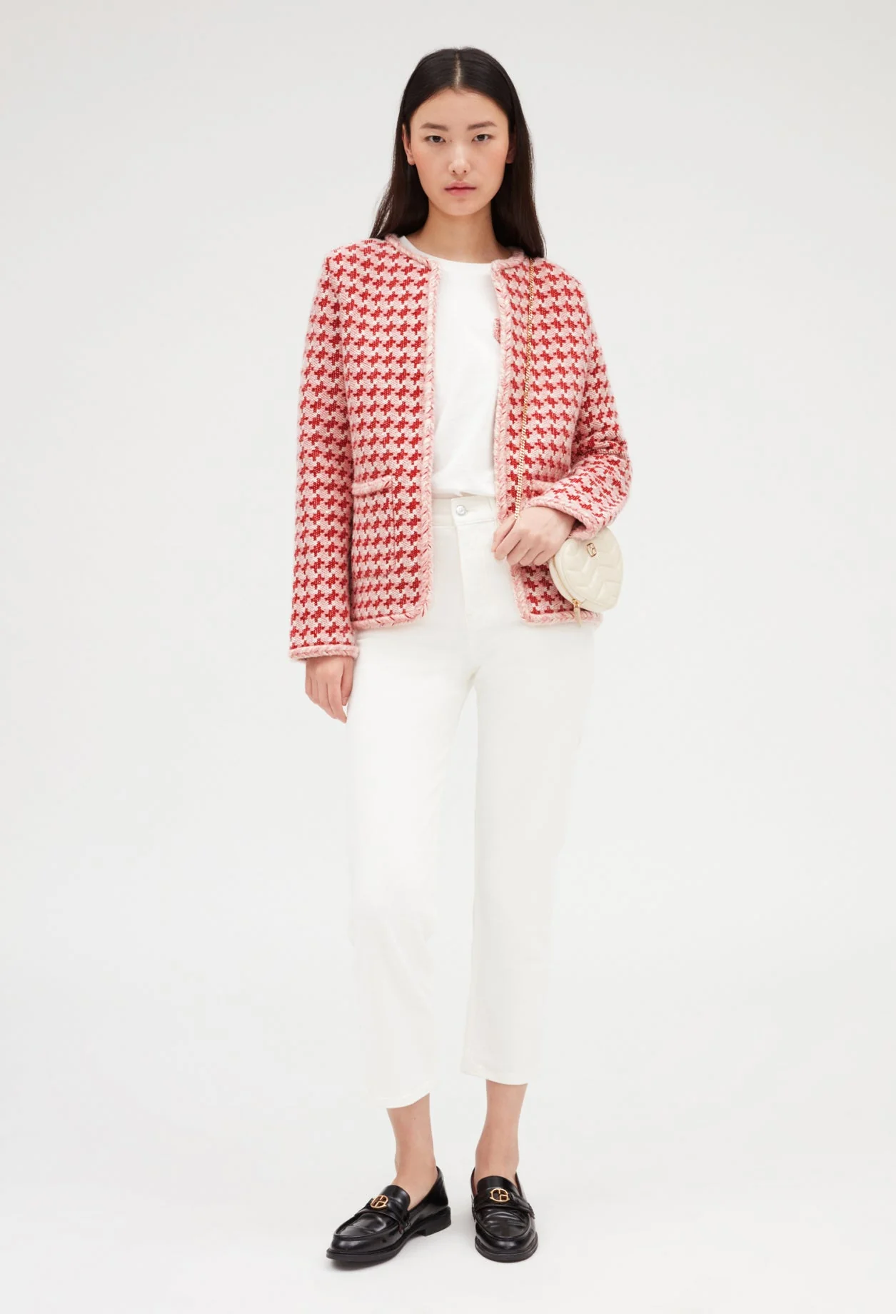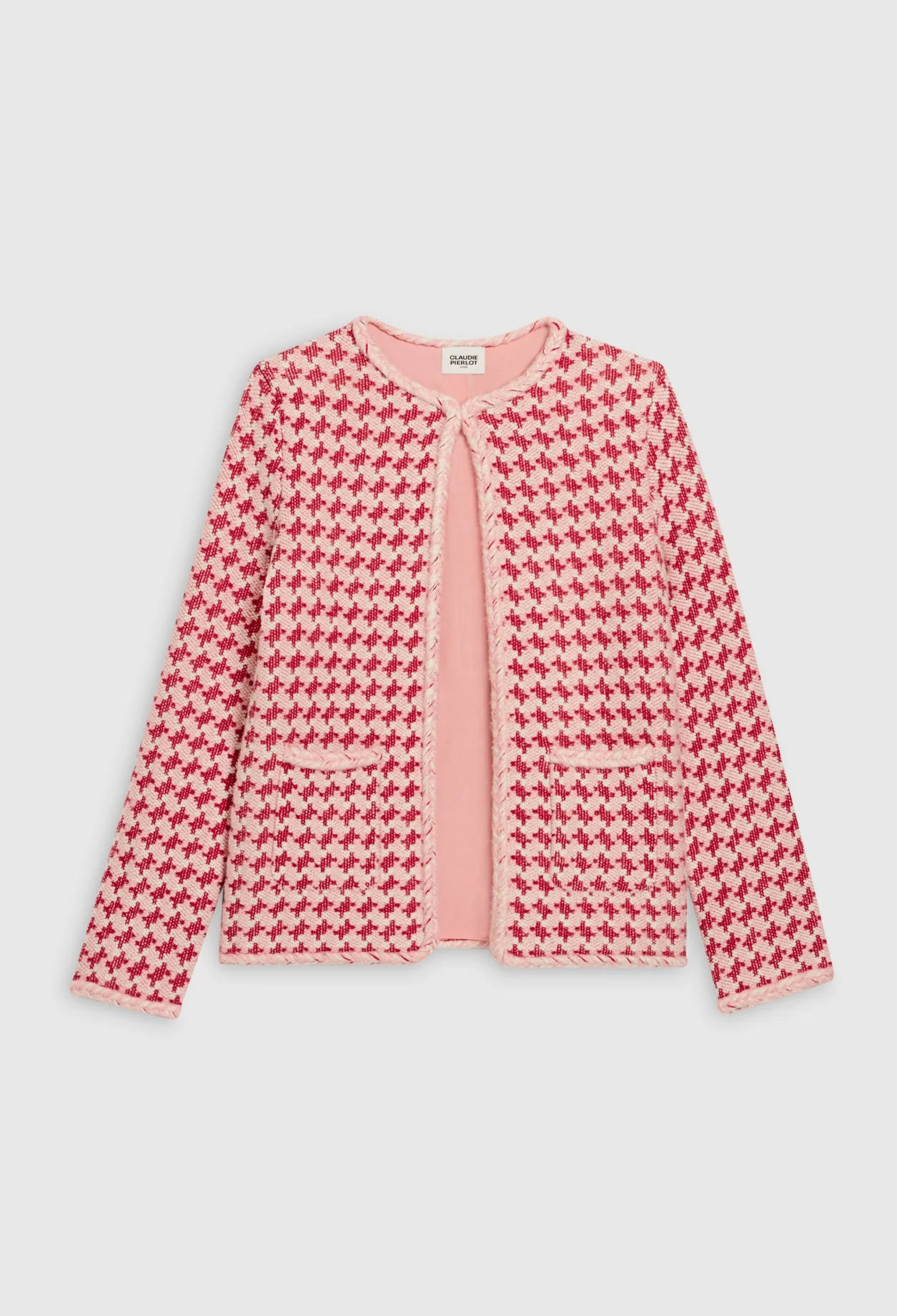 Detalles tejidos en la parte delantera, el bajo de las mangas, los bolsillos y el cuello