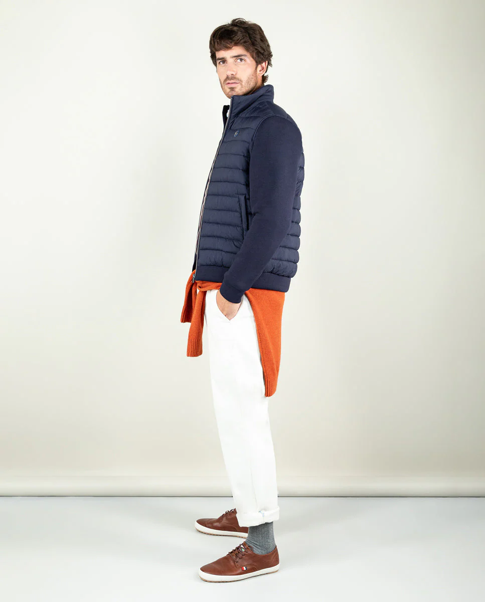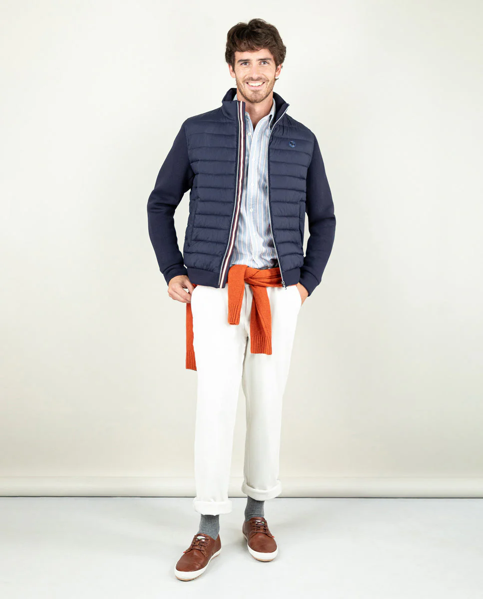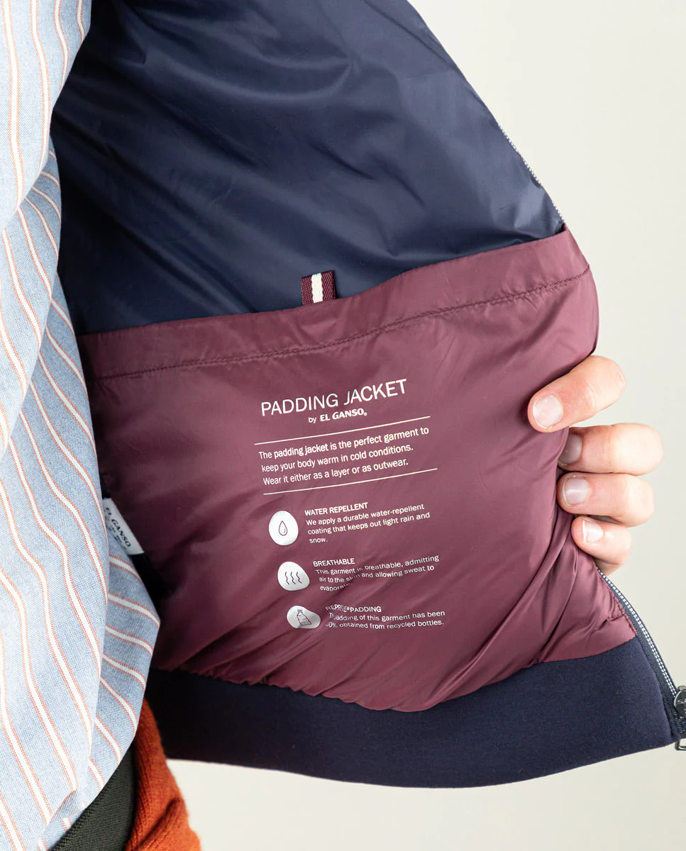 Chaqueta acolchada liso de hombre confeccionado en tejido de nylon reciclado y neopreno en mangas y bajo. Corte Slim Fit, cierre con cremallera. Lleva manga larga y bolsillos delanteros inclinados con corchete y bolsillo interior. Detalle de logo met谩lico en pecho. | REPREVE. En nuestro camino hacia ser una marca 100% sostenible hemos querido usar para el tejido interior, una fibra de alto rendimiento y de 煤ltima generaci贸n, fabricada con todo tipo de materiales reciclados, incluidas las botellas de pl谩stico. Hasta ahora, la empresa ha conseguido reciclar m谩s de 31.000 millones de botellas de pl谩stico y el contador sigue subiendo cada segundo.