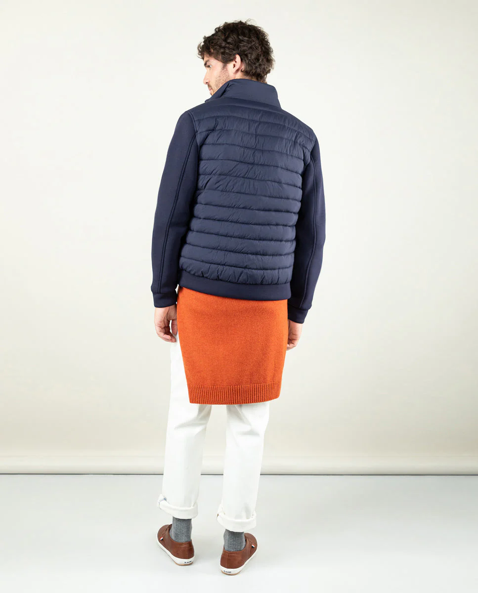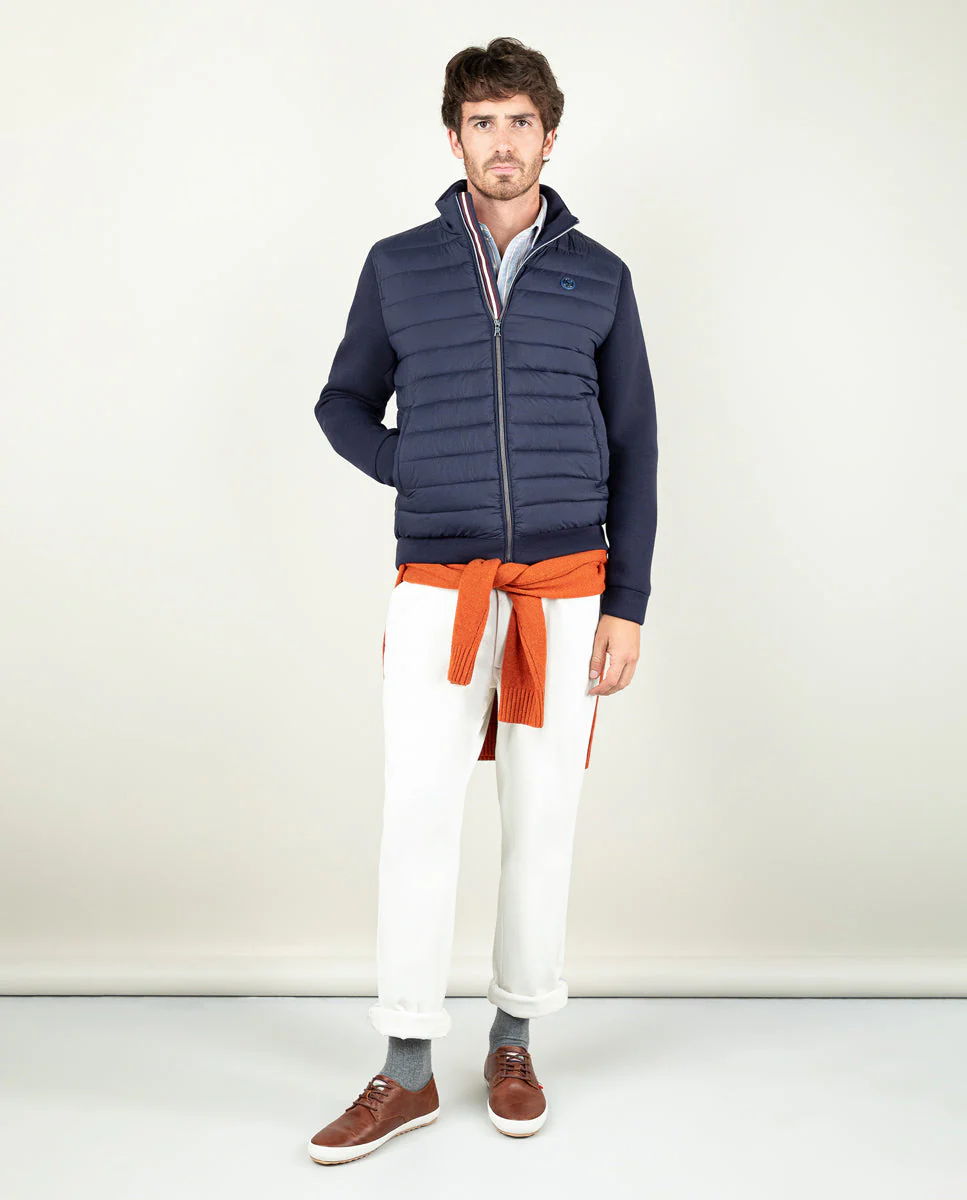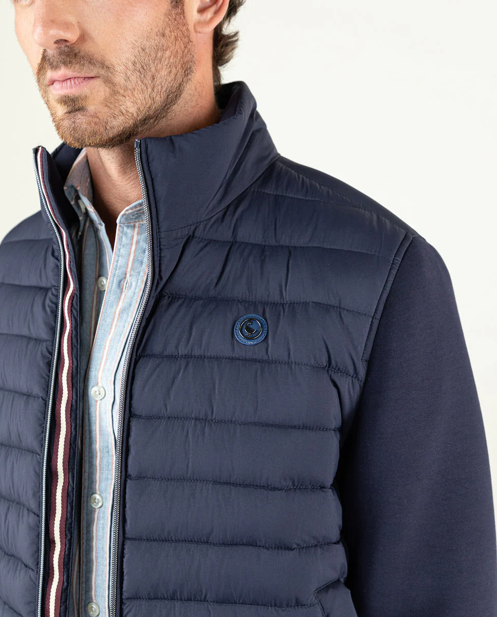 Chaqueta acolchada liso de hombre confeccionado en tejido de nylon reciclado y neopreno en mangas y bajo. Corte Slim Fit, cierre con cremallera. Lleva manga larga y bolsillos delanteros inclinados con corchete y bolsillo interior. Detalle de logo met谩lico en pecho. | REPREVE. En nuestro camino hacia ser una marca 100% sostenible hemos querido usar para el tejido interior, una fibra de alto rendimiento y de 煤ltima generaci贸n, fabricada con todo tipo de materiales reciclados, incluidas las botellas de pl谩stico. Hasta ahora, la empresa ha conseguido reciclar m谩s de 31.000 millones de botellas de pl谩stico y el contador sigue subiendo cada segundo.