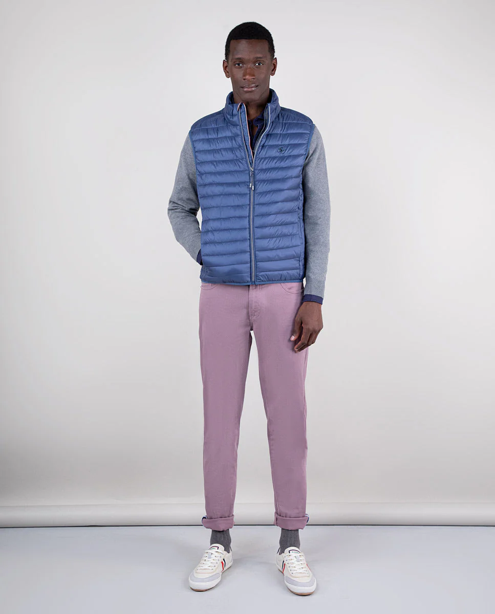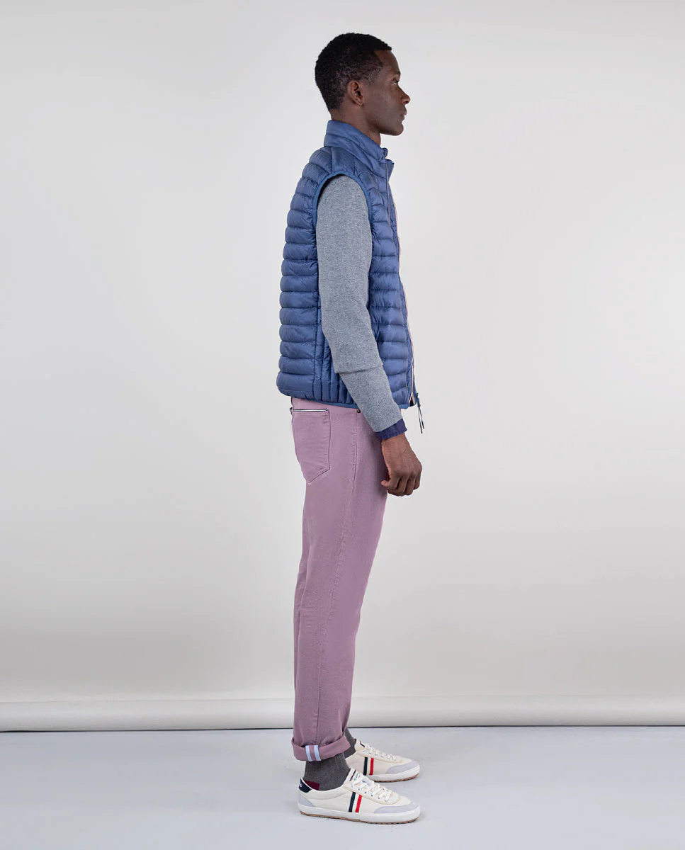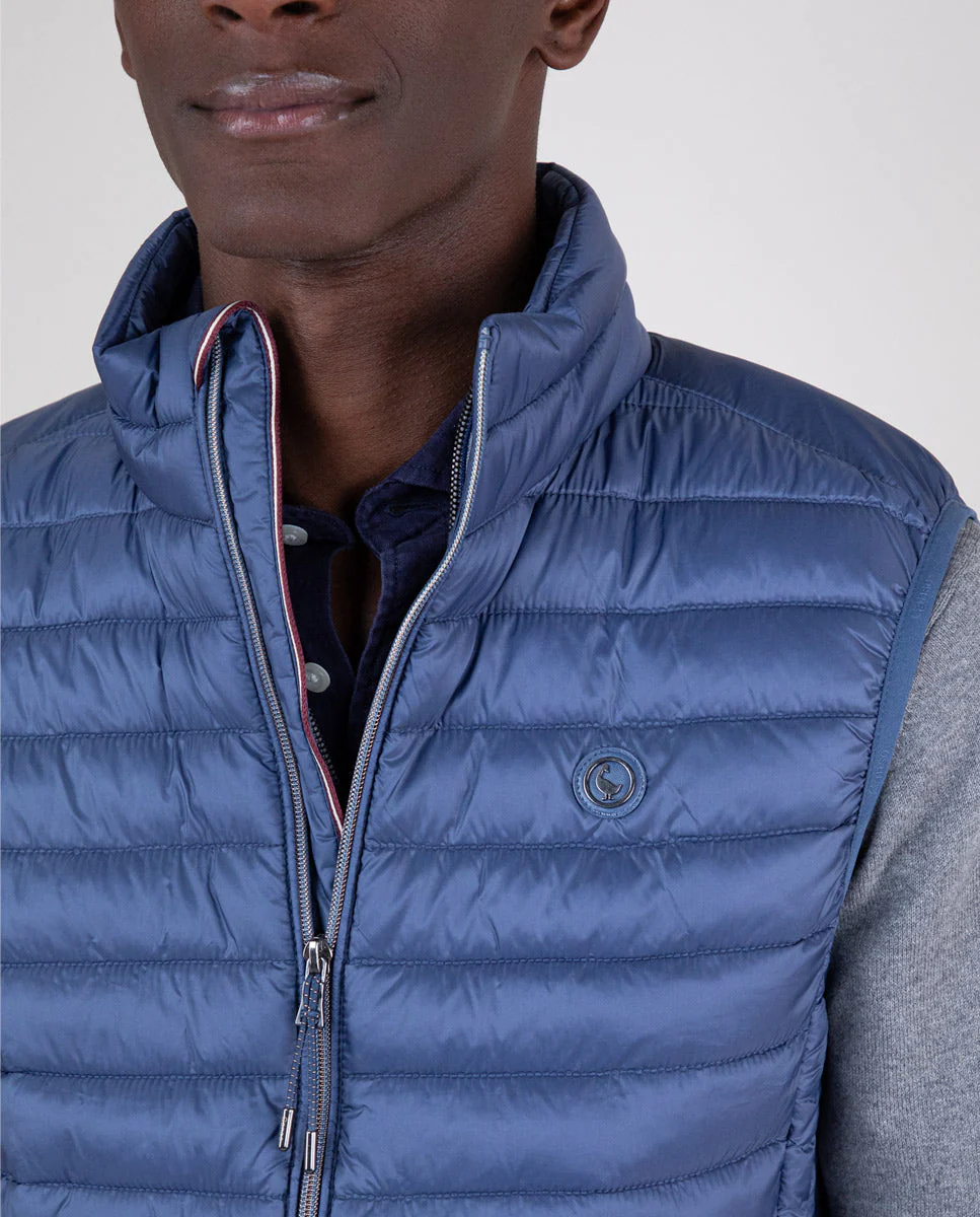 Chaleco de hombre acolchado de nylon reciclado repelente al agua. El patrón es Slim Fit, tiene una cremallera con un detalle de cinta de 3mm en el interior y una sisa elástica. Bolsillos con cremallera en la parte frontal y bolsillo interior. Logo metálico en el pecho. | REPREVE. En nuestro camino hacia ser una marca 100% sostenible hemos querido usar para el tejido interior, una fibra de alto rendimiento y de última generación, fabricada con todo tipo de materiales reciclados, incluidas las botellas de plástico. Hasta ahora, la empresa ha conseguido reciclar más de 31.000 millones de botellas de plástico y el contador sigue subiendo cada segundo.