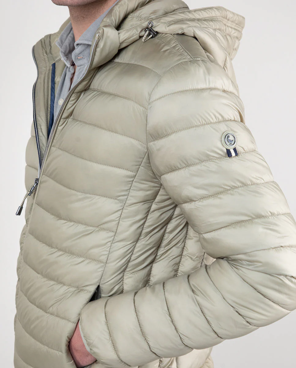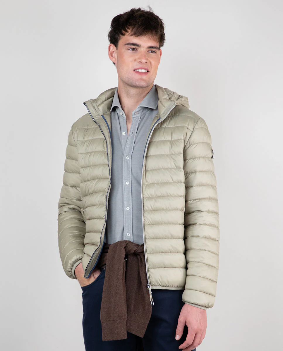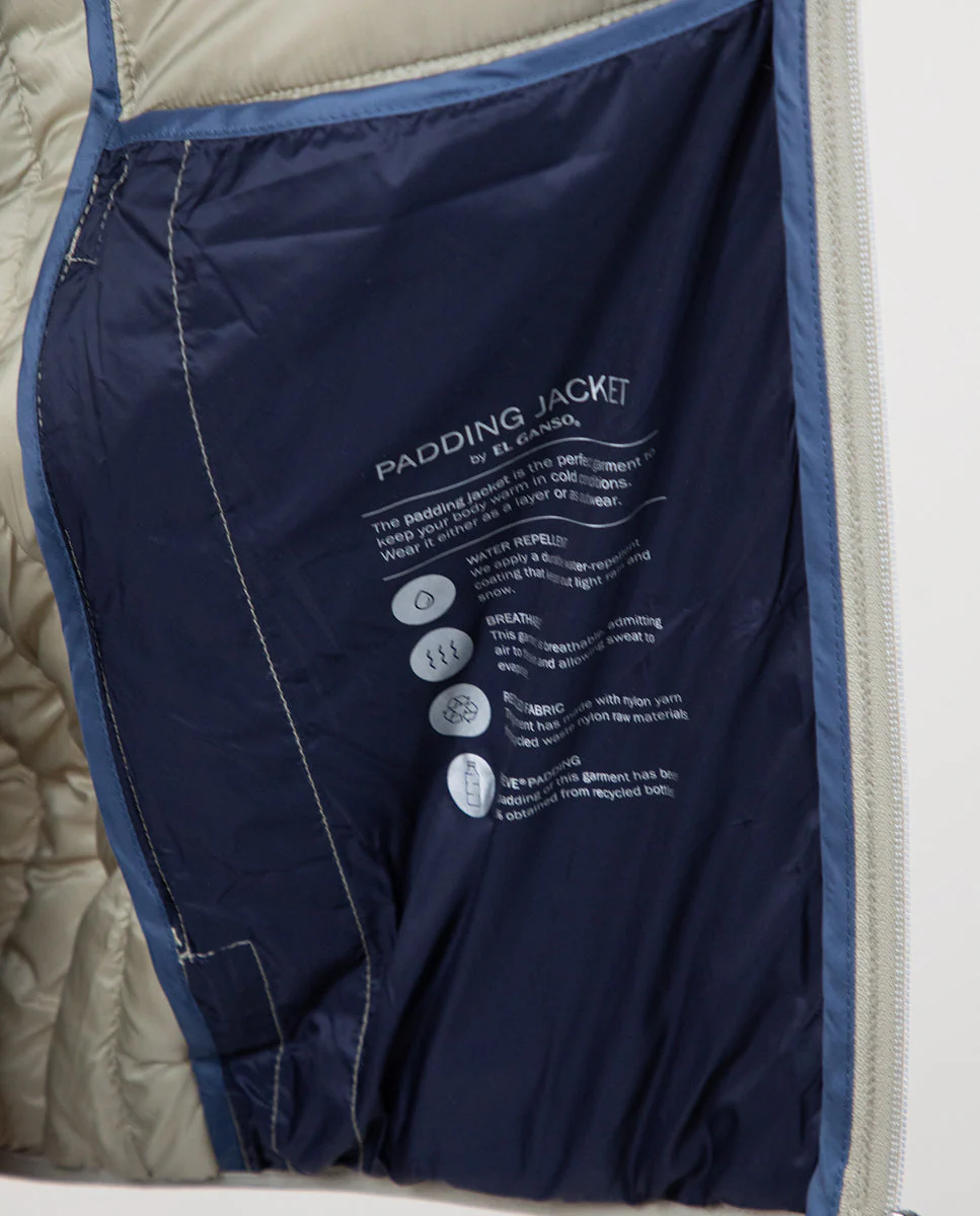 Chaqueta acolchada lisa confeccionada en tejido de nylon reciclado repelente al agua. Tiene un corte Slim Fit, cuello con capucha desmontable y cierre con cremallera con un detalle de bandera de 3mm en el interior. Manga larga, bolsillos laterales con cremallera y bolsillos interiores. | REPREVE. En nuestro camino hacia ser una marca 100% sostenible hemos querido usar para el tejido interior, una fibra de alto rendimiento y de última generación, fabricada con todo tipo de materiales reciclados, incluidas las botellas de plástico. Hasta ahora, la empresa ha conseguido reciclar más de 31.000 millones de botellas de plástico y el contador sigue subiendo cada segundo.