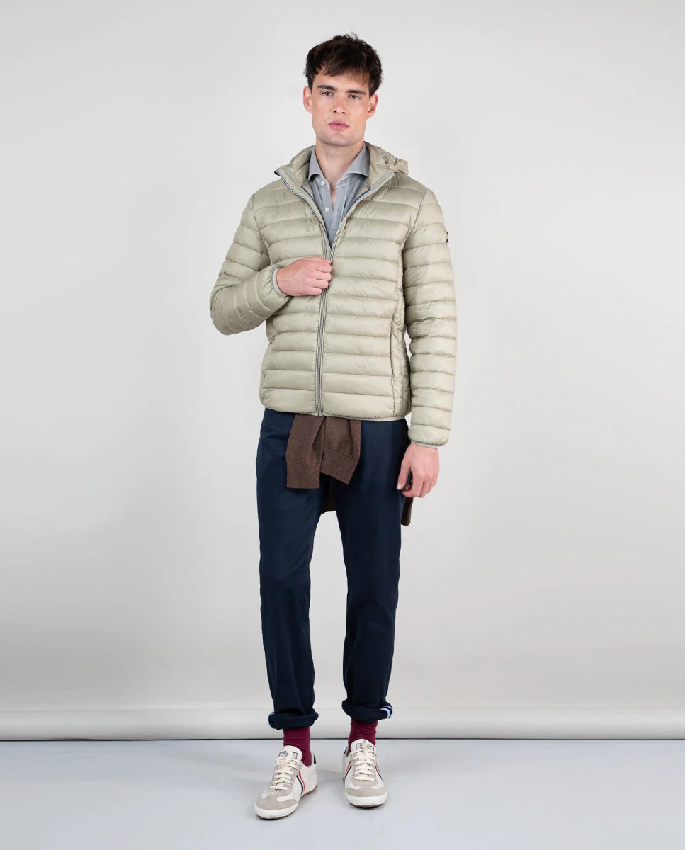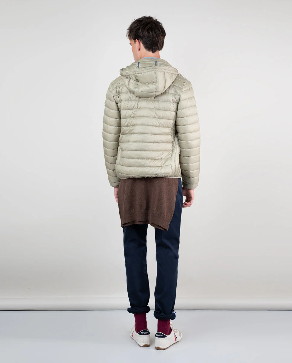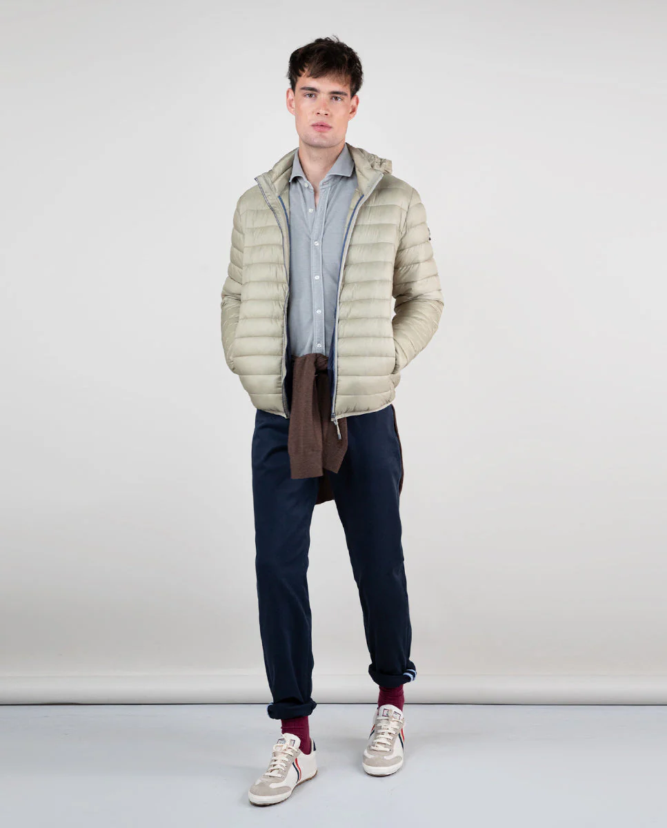 Chaqueta acolchada lisa confeccionada en tejido de nylon reciclado repelente al agua. Tiene un corte Slim Fit, cuello con capucha desmontable y cierre con cremallera con un detalle de bandera de 3mm en el interior. Manga larga, bolsillos laterales con cremallera y bolsillos interiores. | REPREVE. En nuestro camino hacia ser una marca 100% sostenible hemos querido usar para el tejido interior, una fibra de alto rendimiento y de última generación, fabricada con todo tipo de materiales reciclados, incluidas las botellas de plástico. Hasta ahora, la empresa ha conseguido reciclar más de 31.000 millones de botellas de plástico y el contador sigue subiendo cada segundo.