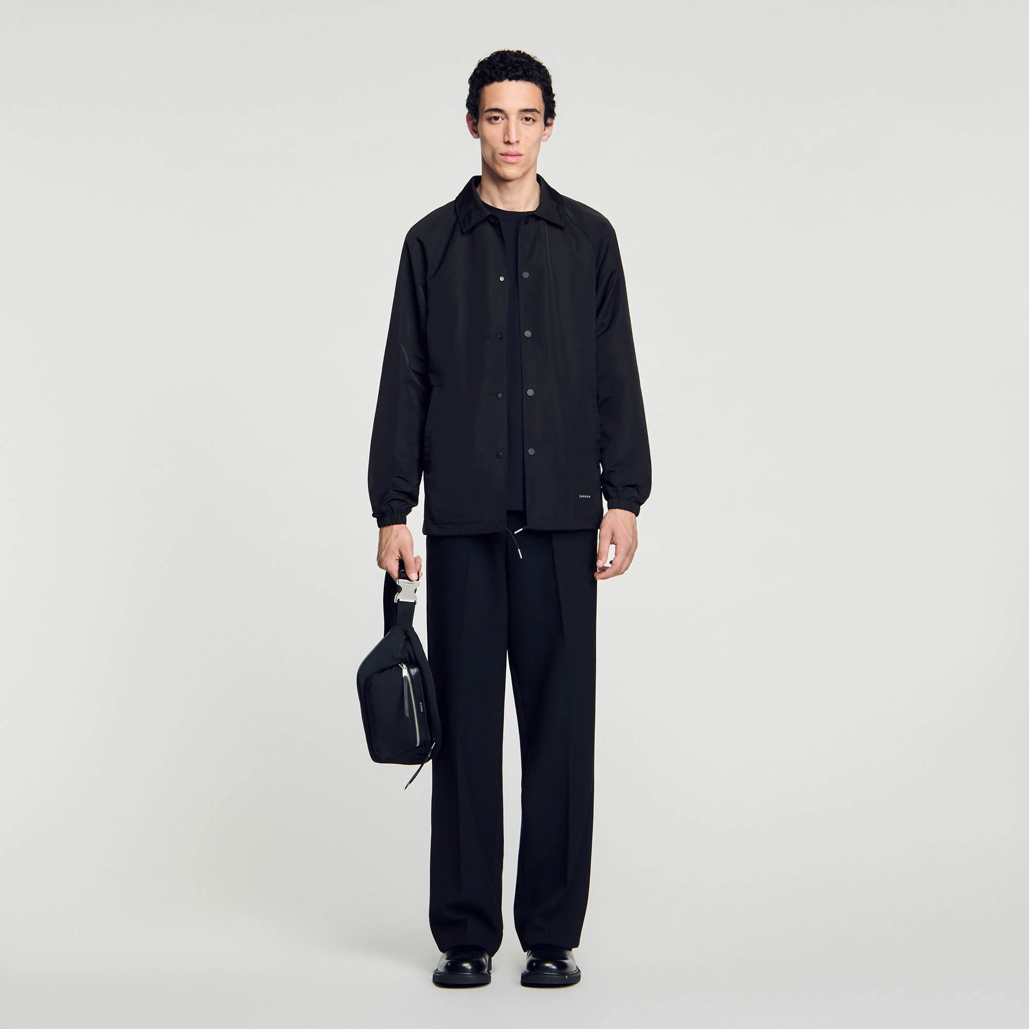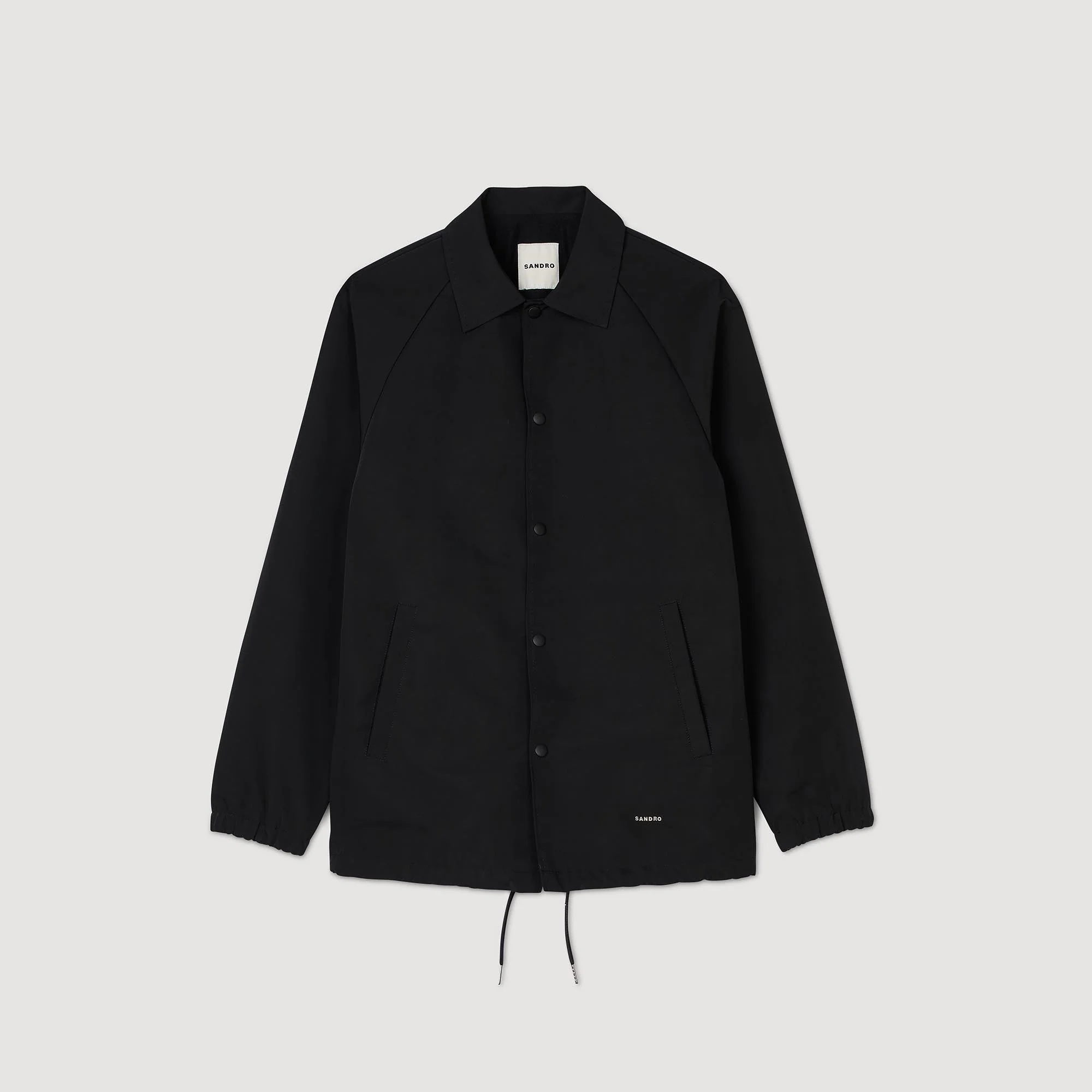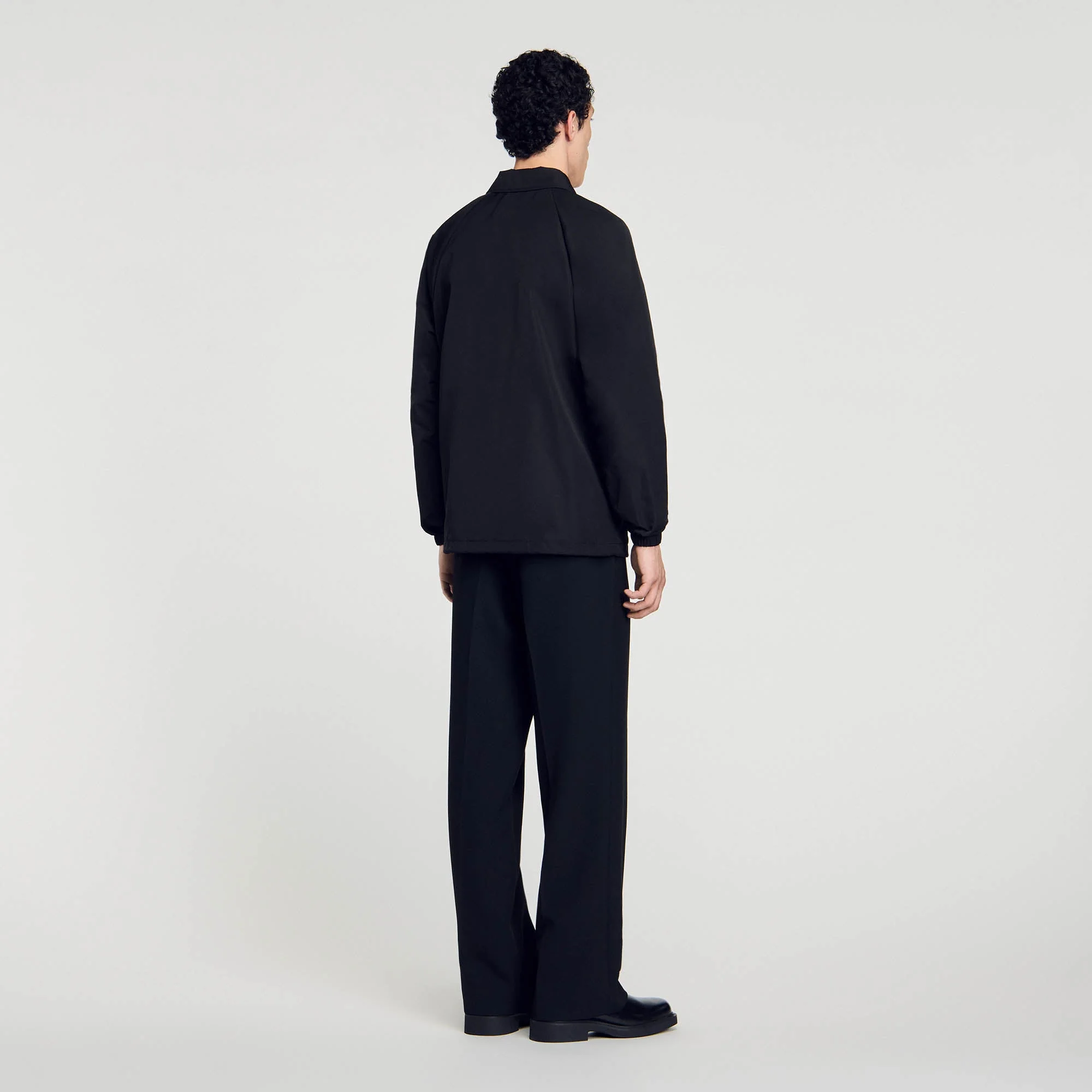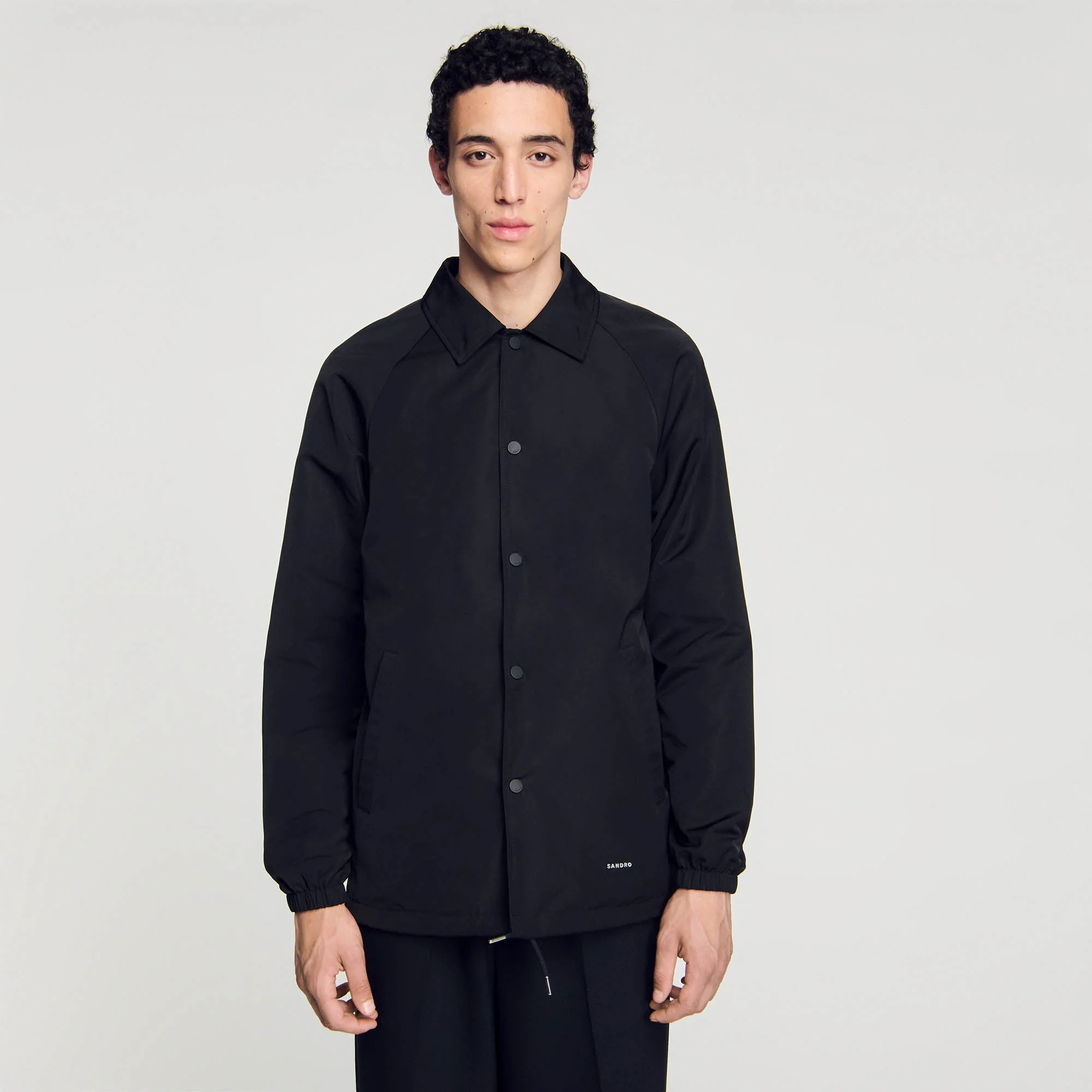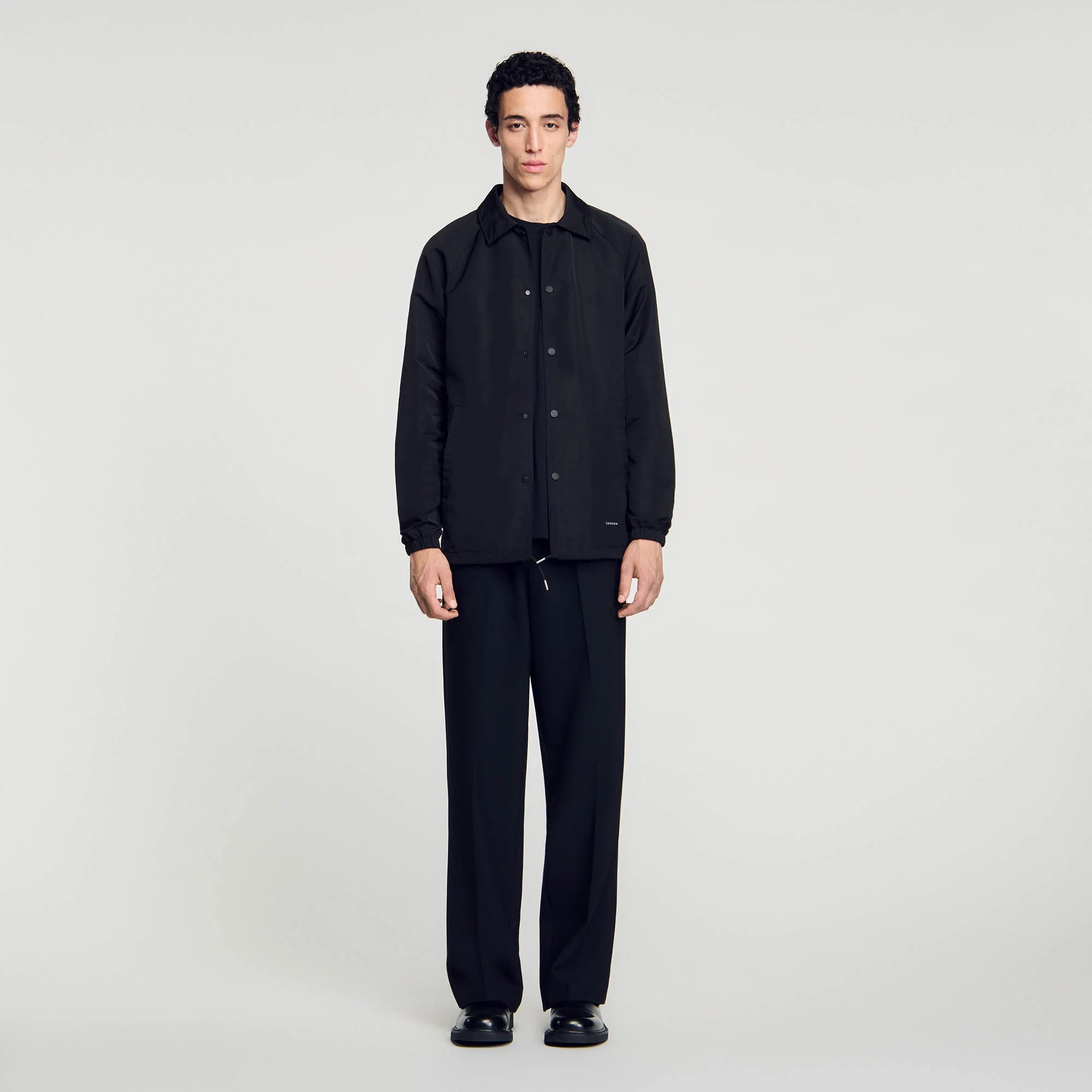 Chaqueta de material técnico de corte recto con cuello de camisa, mangas largas con puños elásticos y logotipo de SANDRO de metal.