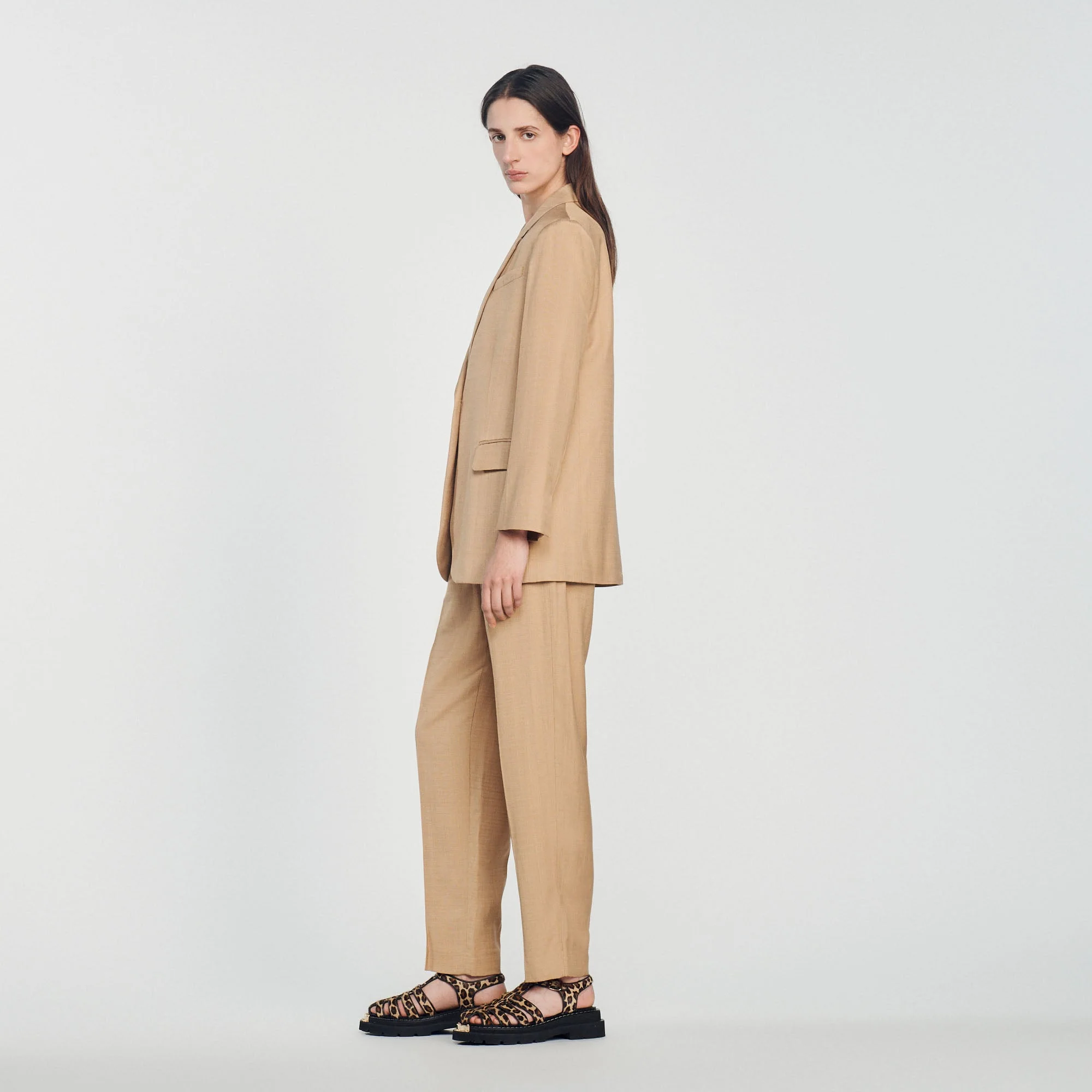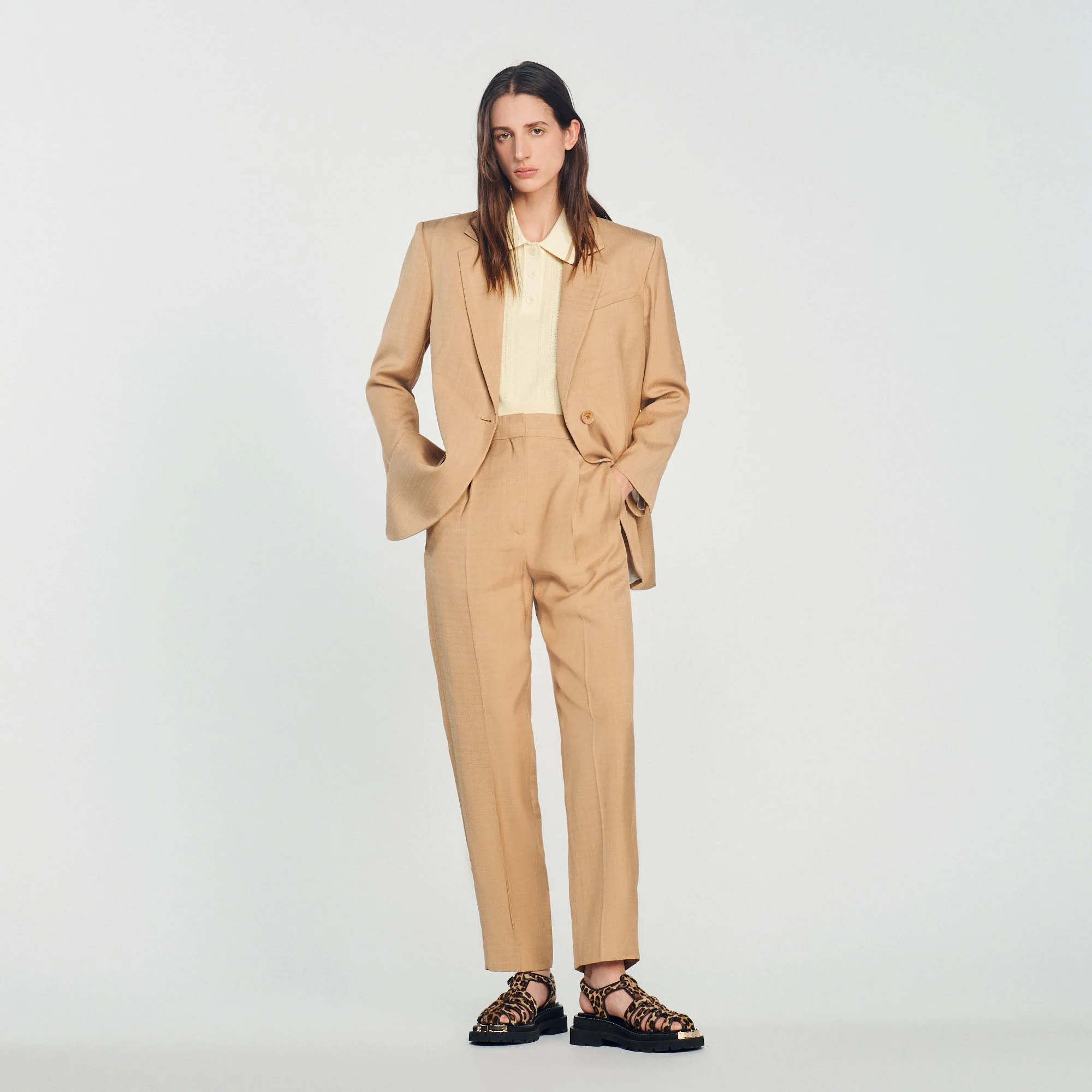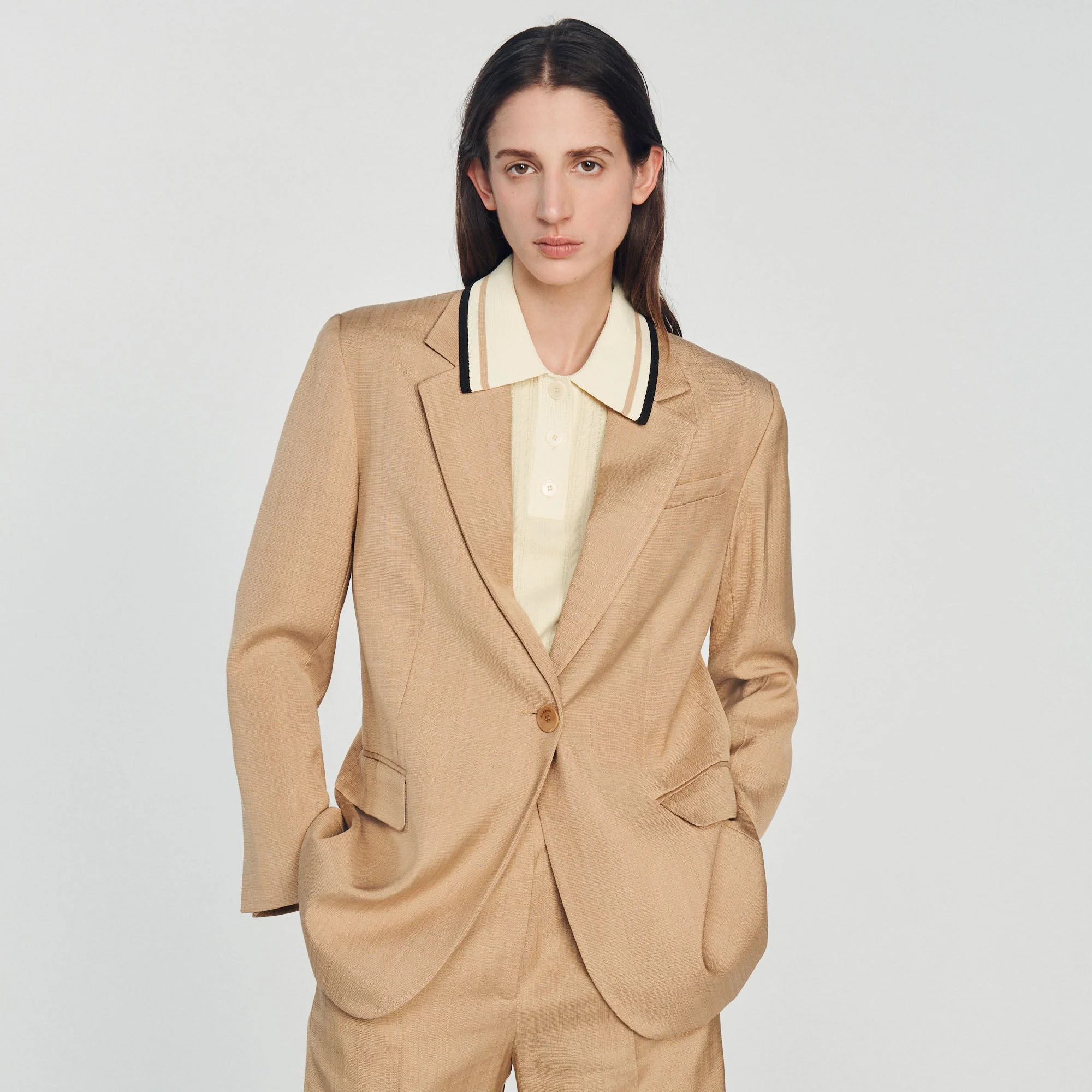 Chaqueta de sastre de manga larga y cuello sastre, con bolsillos con solapa y un bolsillo de ojal.Chaqueta de sastre Sandro de mujer