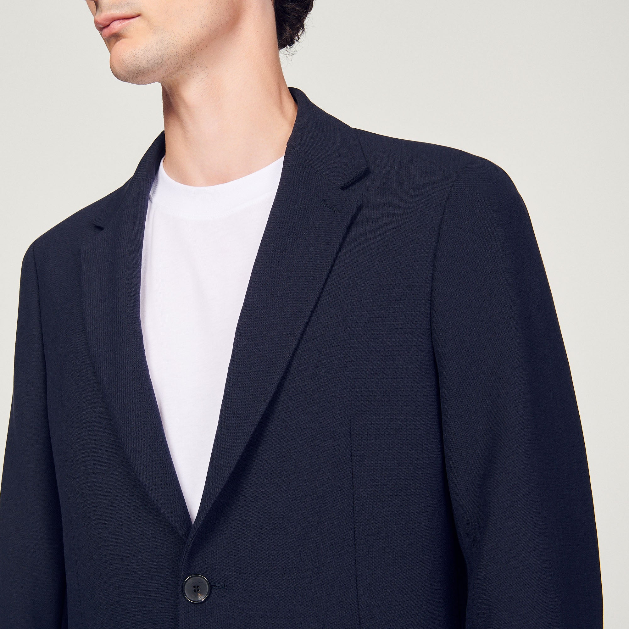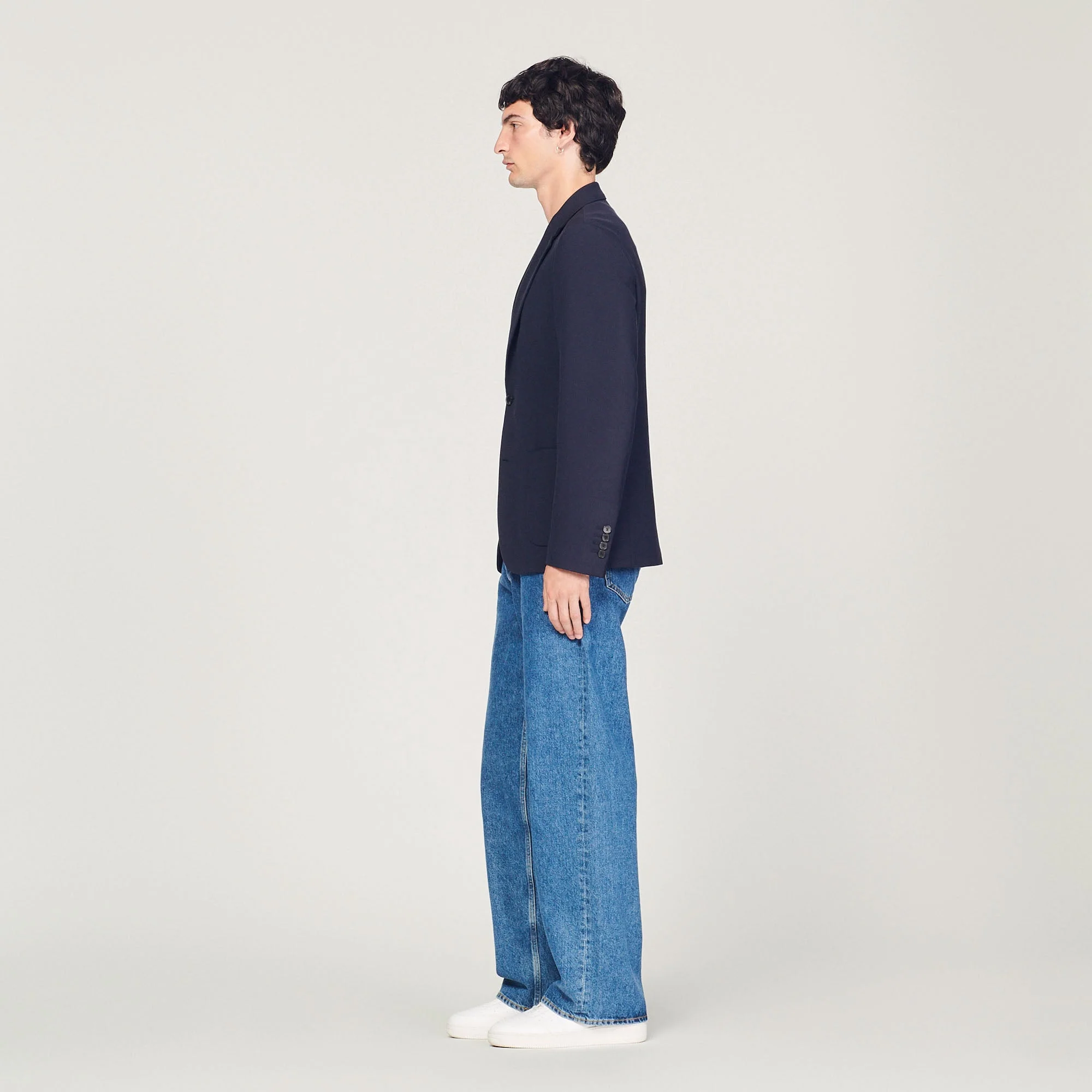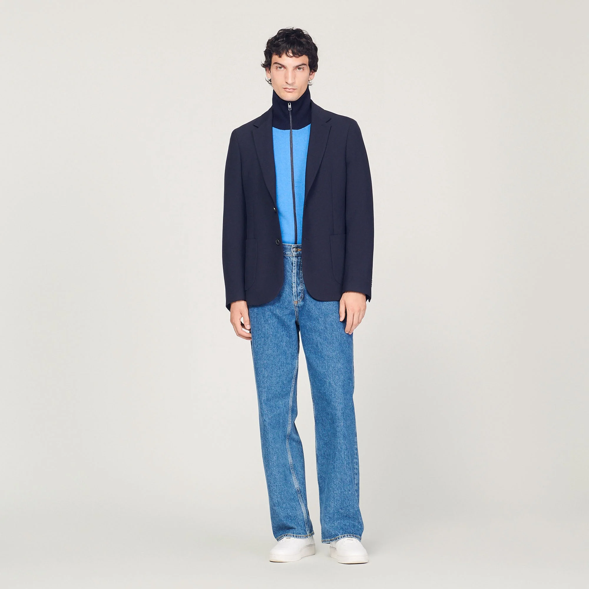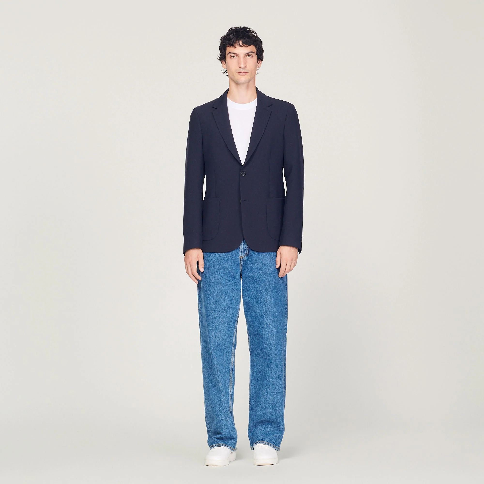 Chaqueta de traje oversize de jersey de lana de manga larga con puño abotonado y cuello amplio, con cierre de botones y bolsillos de parche. • Chaqueta de traje Sandro de hombre