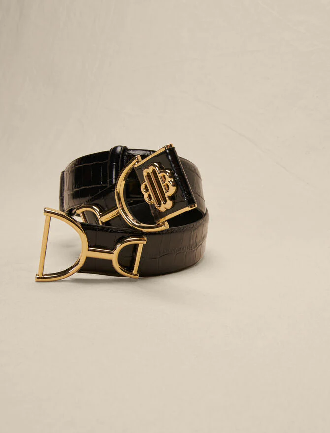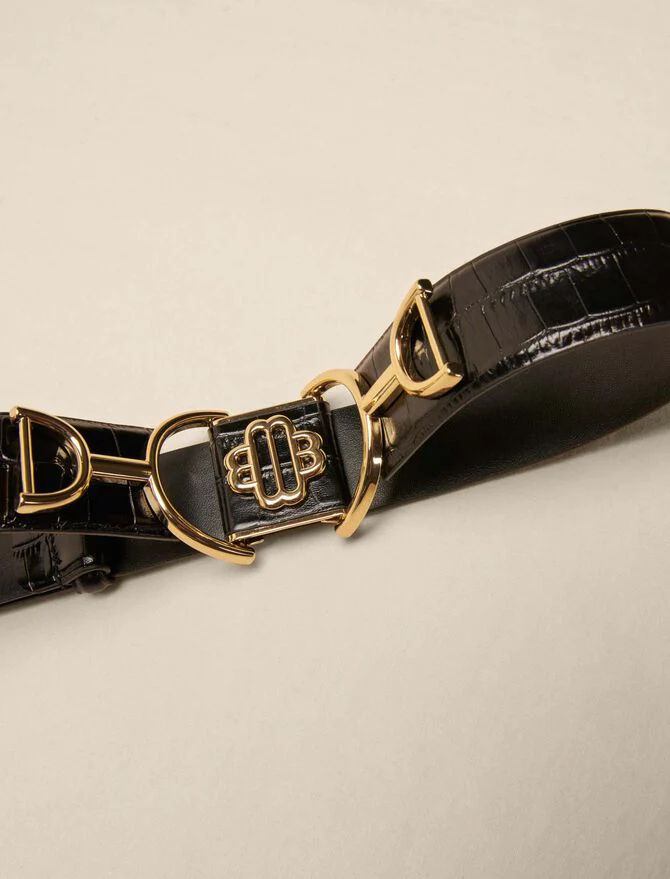 Este cinturón de imitación de piel de cocodrilo presenta una hebilla horsebit Clover de metal dorado. Ideal para ajustar un vestido y marcar la cintura con estilo.Ref.: MFACE00296Comprando este producto, estará apoyando una fabricación de cuero más responsable a través del Leather Working Group, que certifica a las curtidurías en función de su rendimiento medioambiental (agua, energía, residuos, etc.).En Maje, imaginamos el futuro. Compartimos el objetivo de reducir, un poquito más cada temporada, el impacto en el medio ambiente de las prendas que diseñamos.
