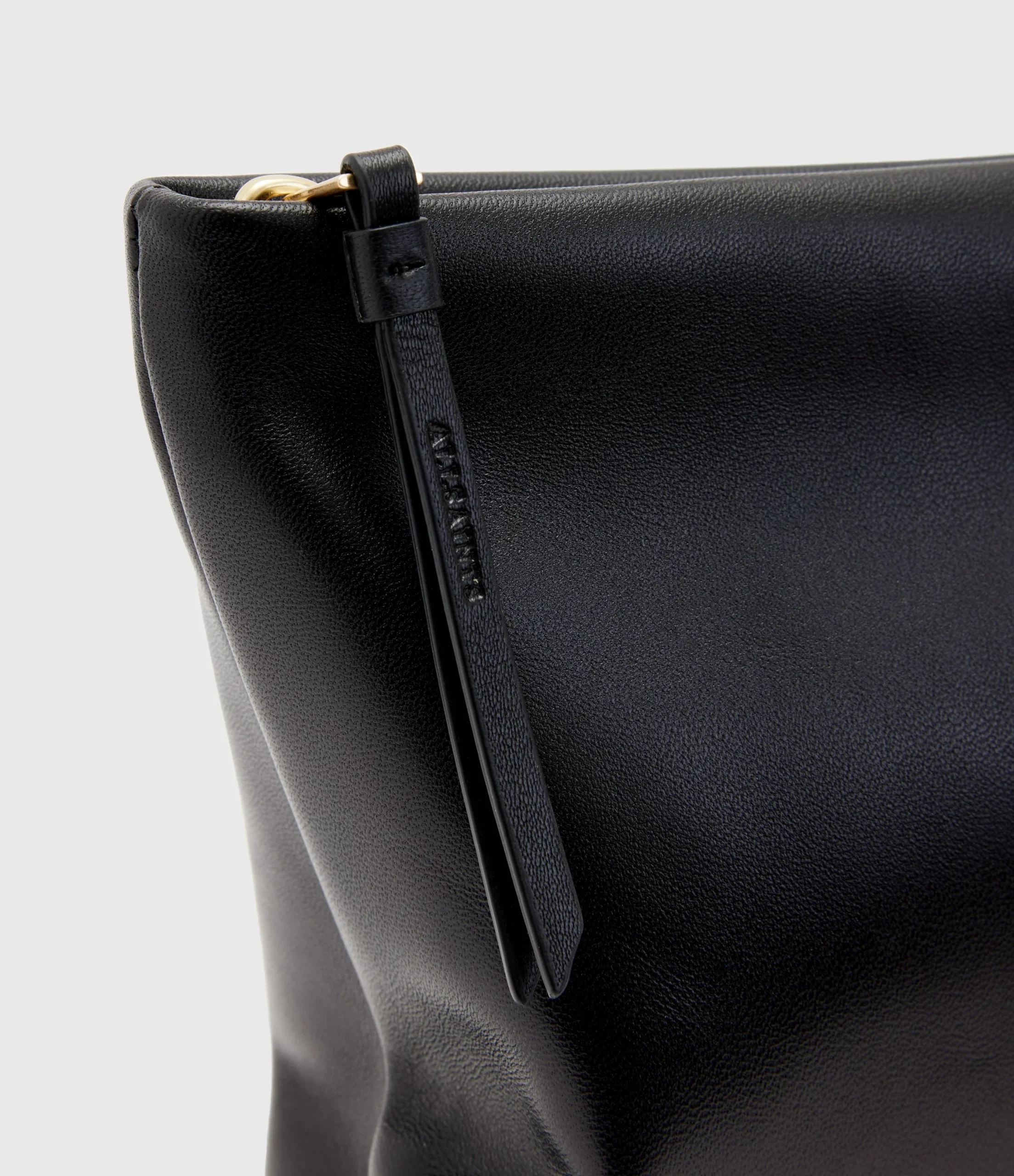 Bolsa color negra estilo clutch para mujer, marca AllSaints.