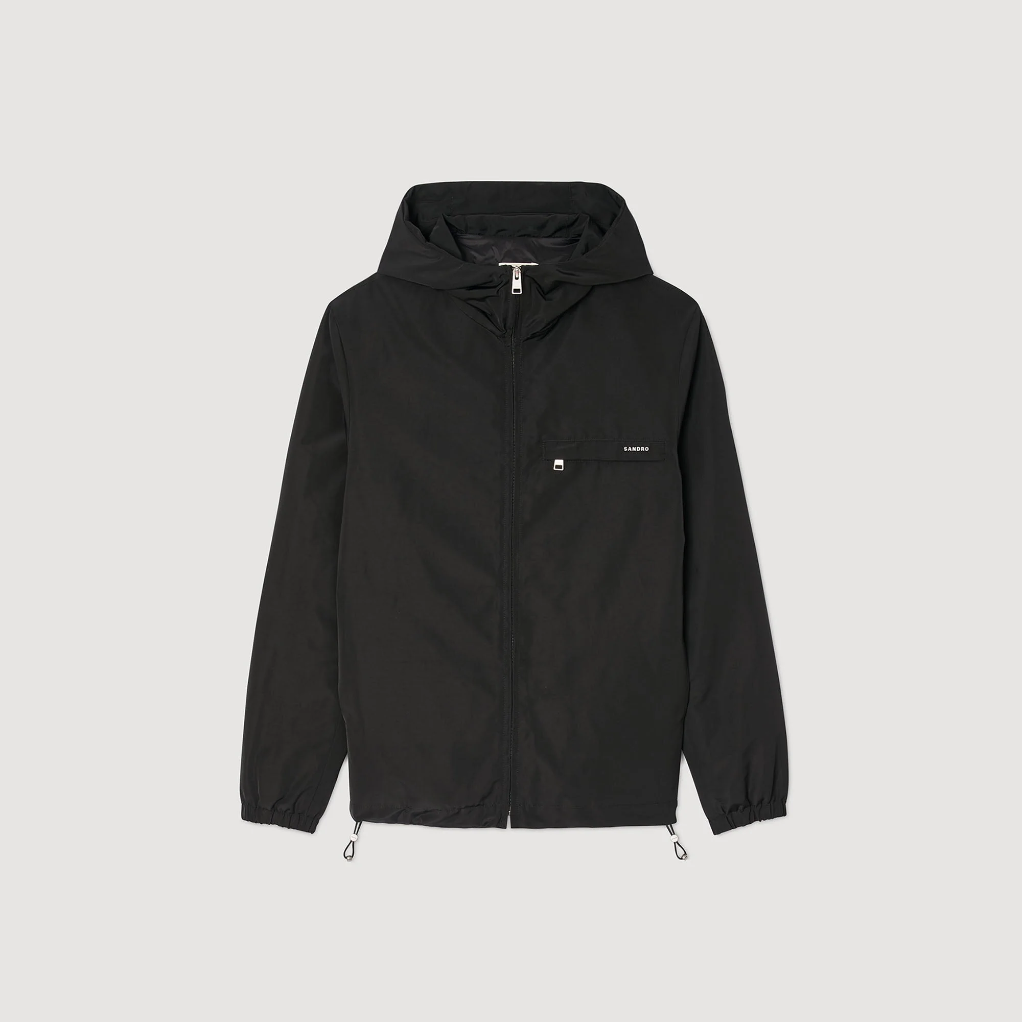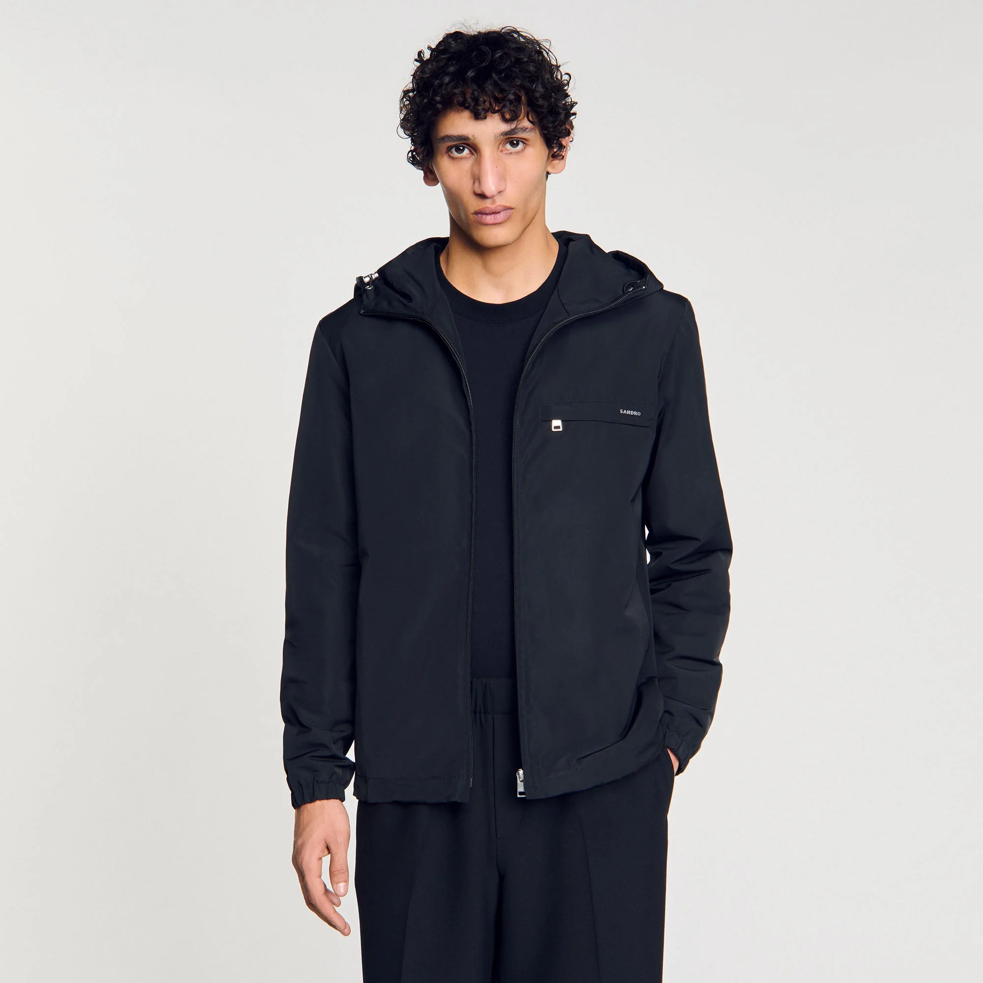 Cortavientos de nailon ligeramente acolchado y forrado, con capucha, manga larga y cierre de cremallera.