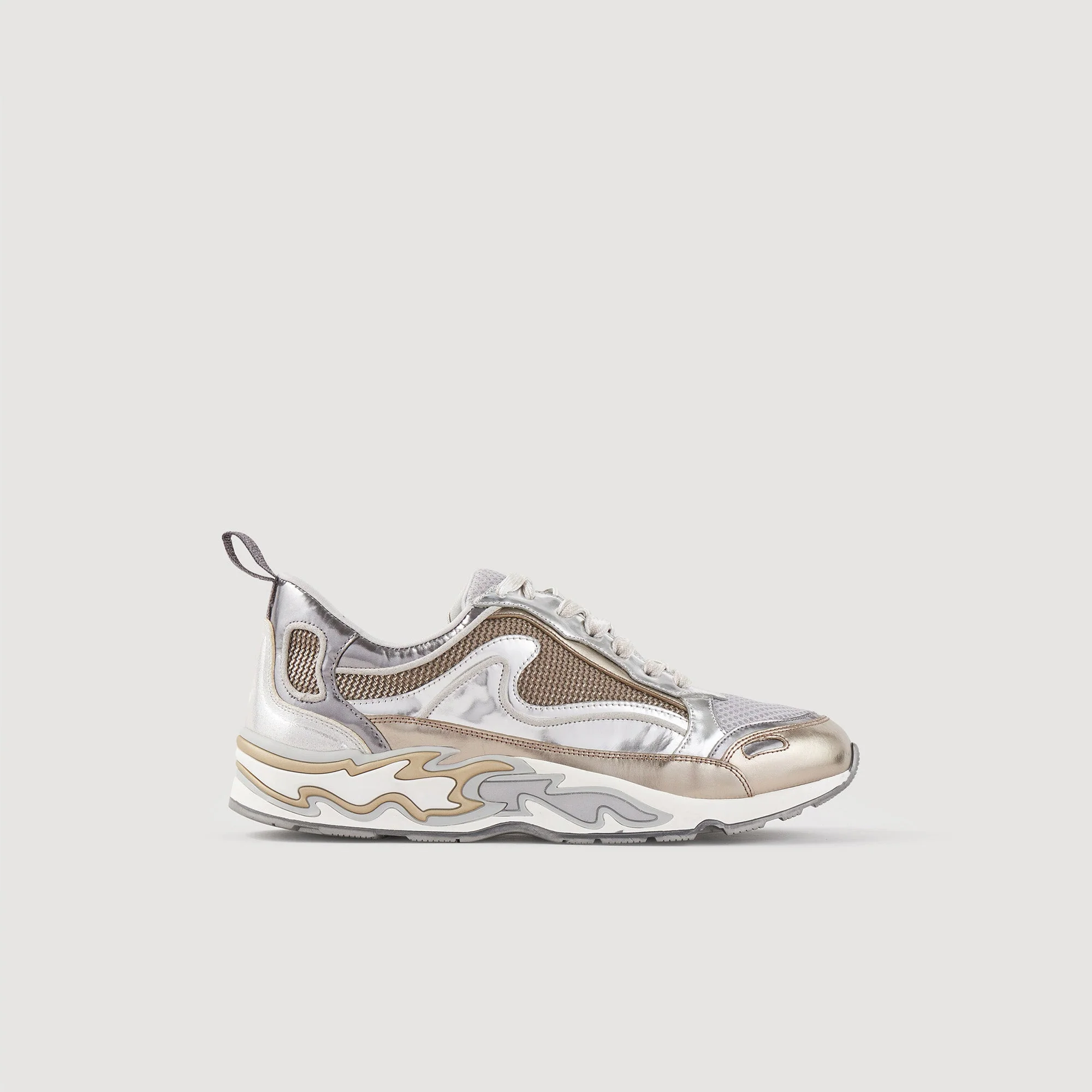 Deportivas con mezcla de materiales con cordones y suela con motivo de llamas.