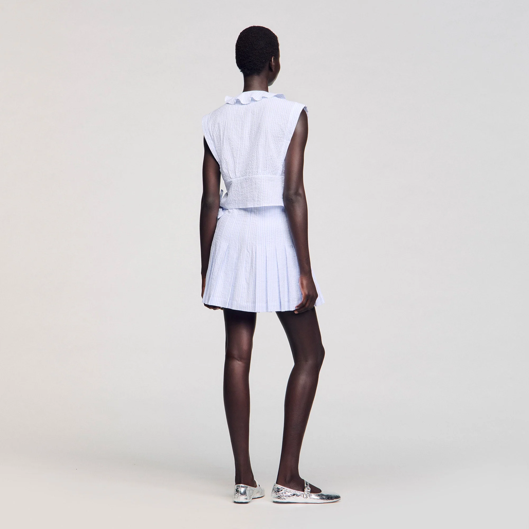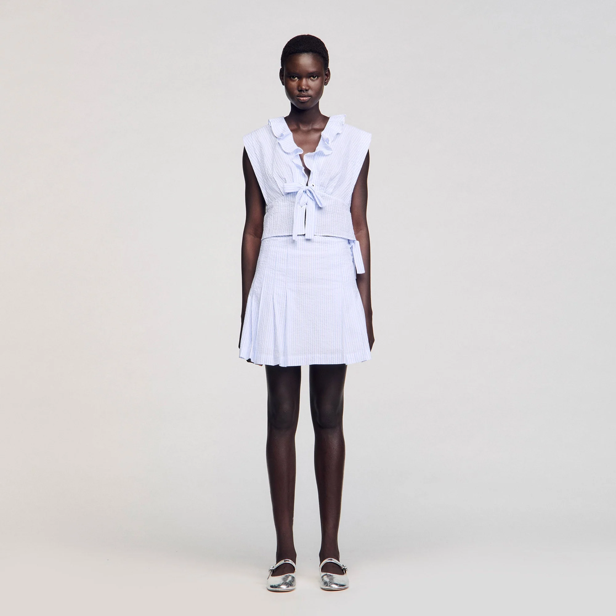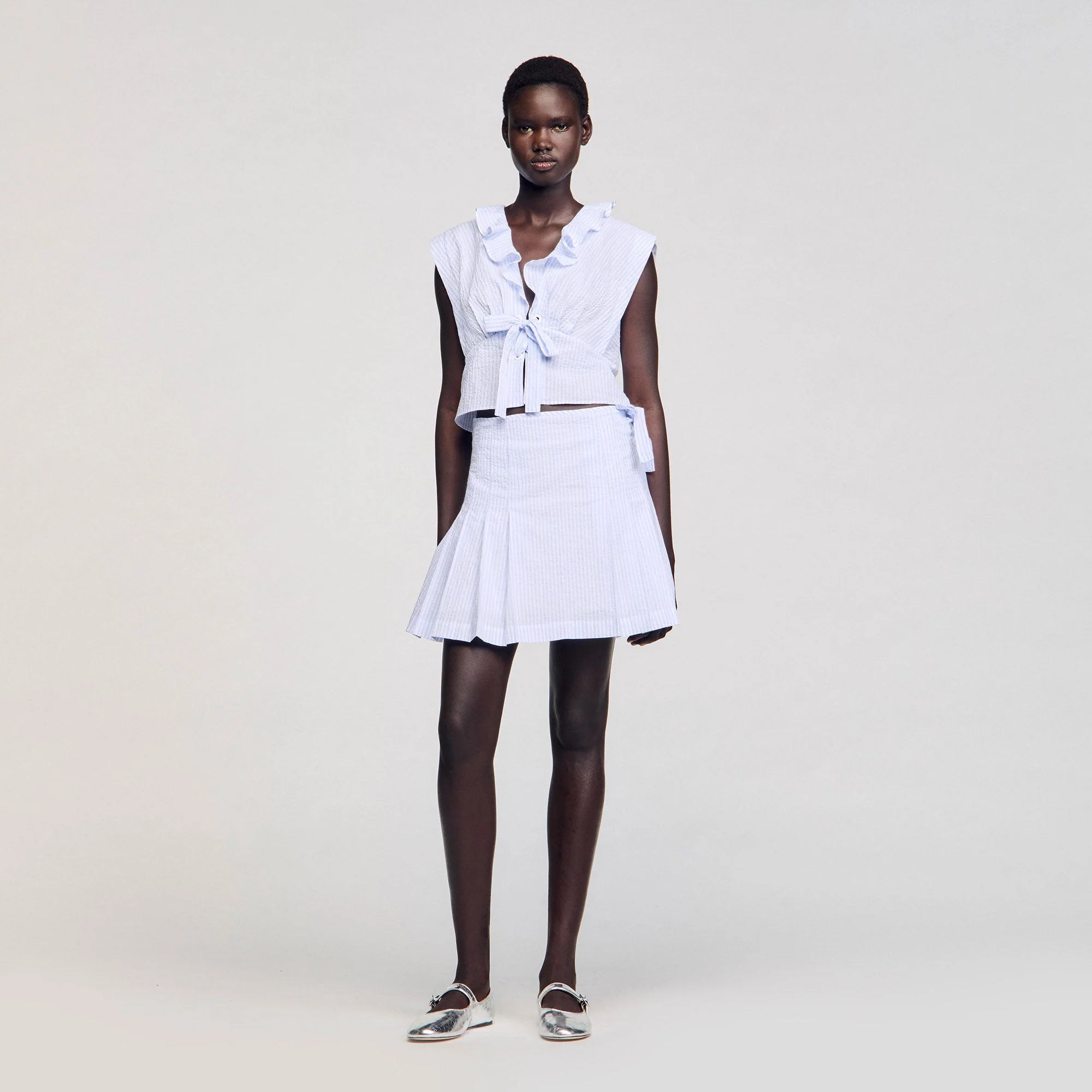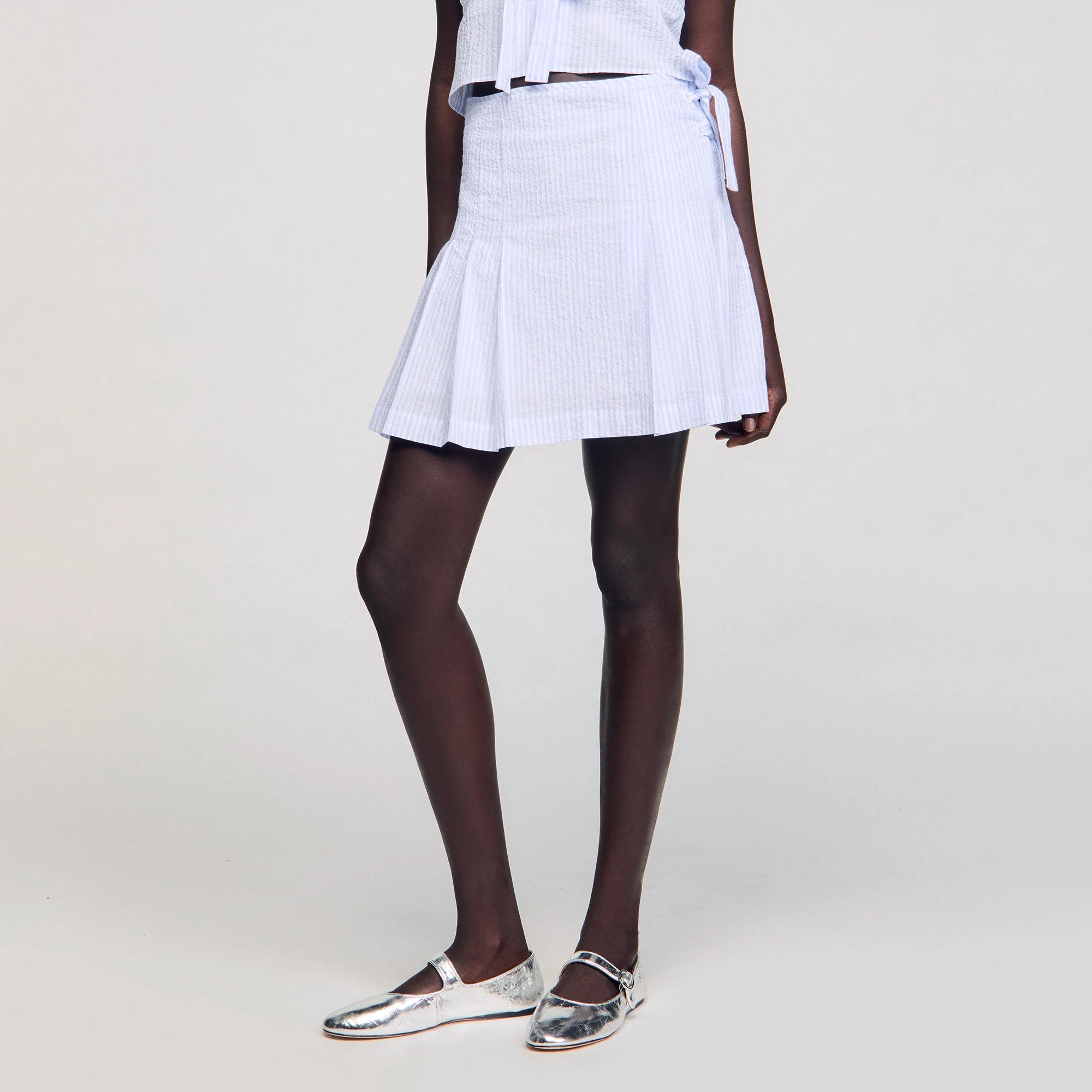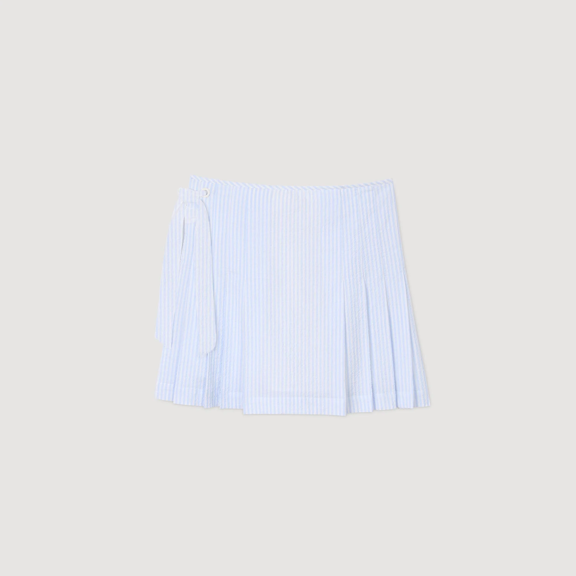 Falda corta plisada a rayas con cintas para anudar en el lateral.