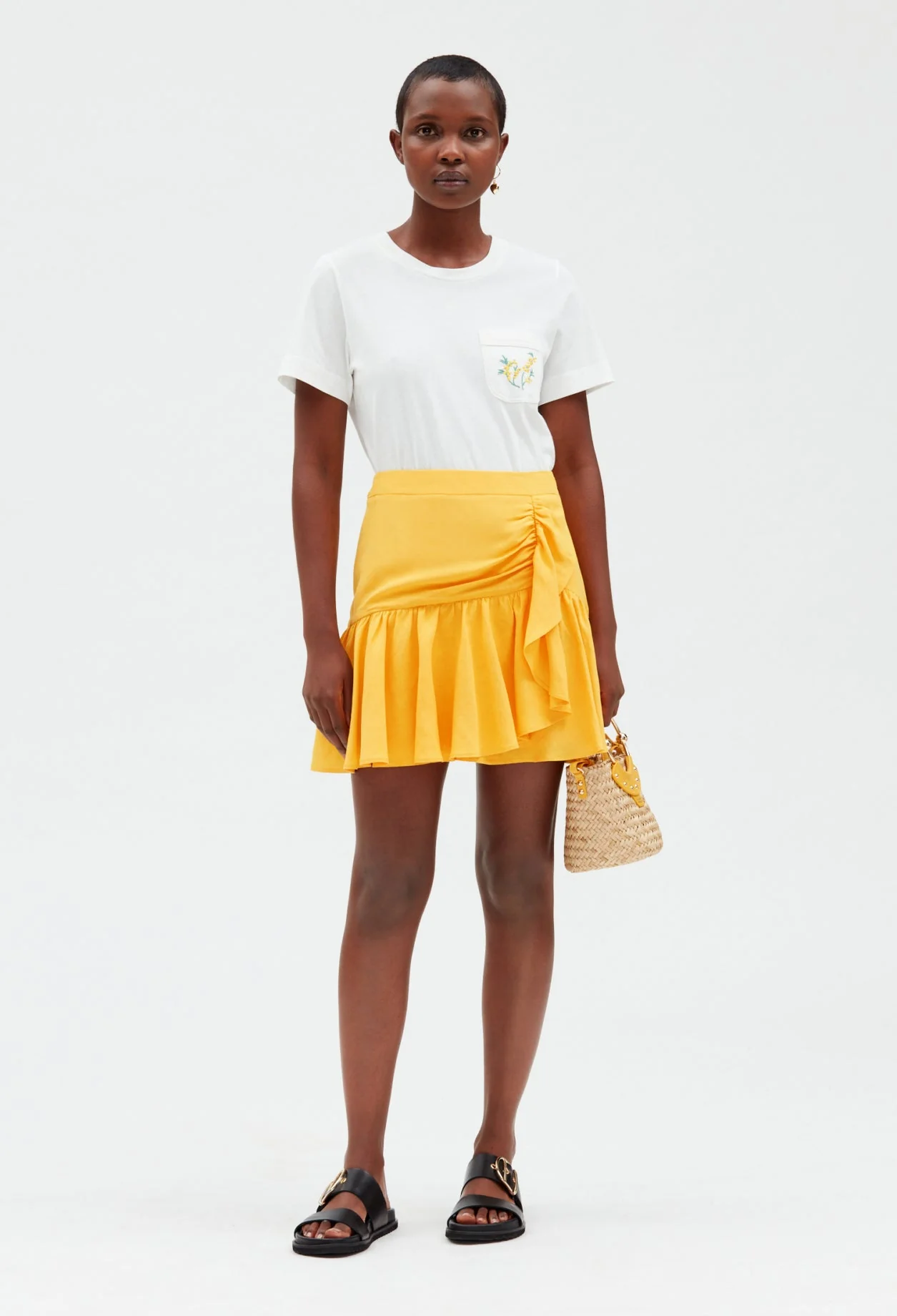 Falda corta con volantes mimosa