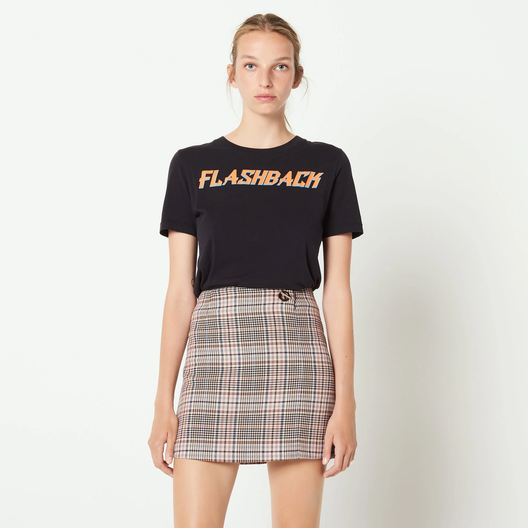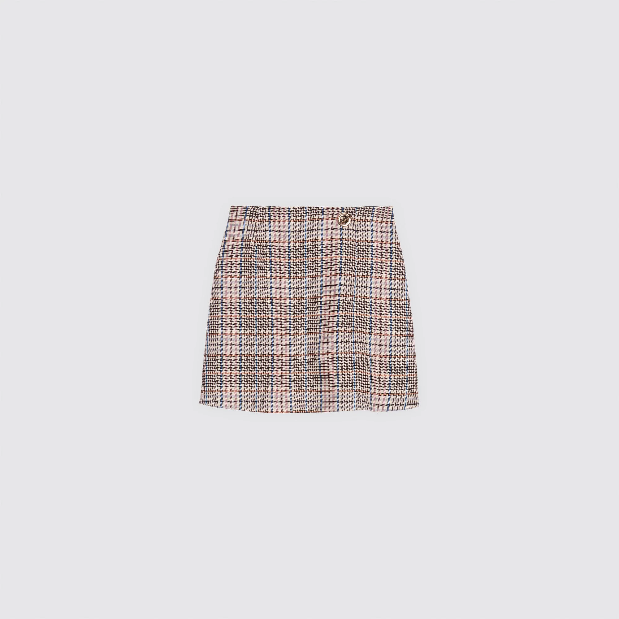 FALDA CORTA ESTAMPADA A CUADROS, MARCA SANDRO. 52% ALGODÓN, 28% POLIÉSTER, 20% LANA. LIMPIEZA EN SECO PROFESIONAL. REVISAR ETIQUETA INTERNA DE LAVADO PARA MÁS INFORMACIÓN..