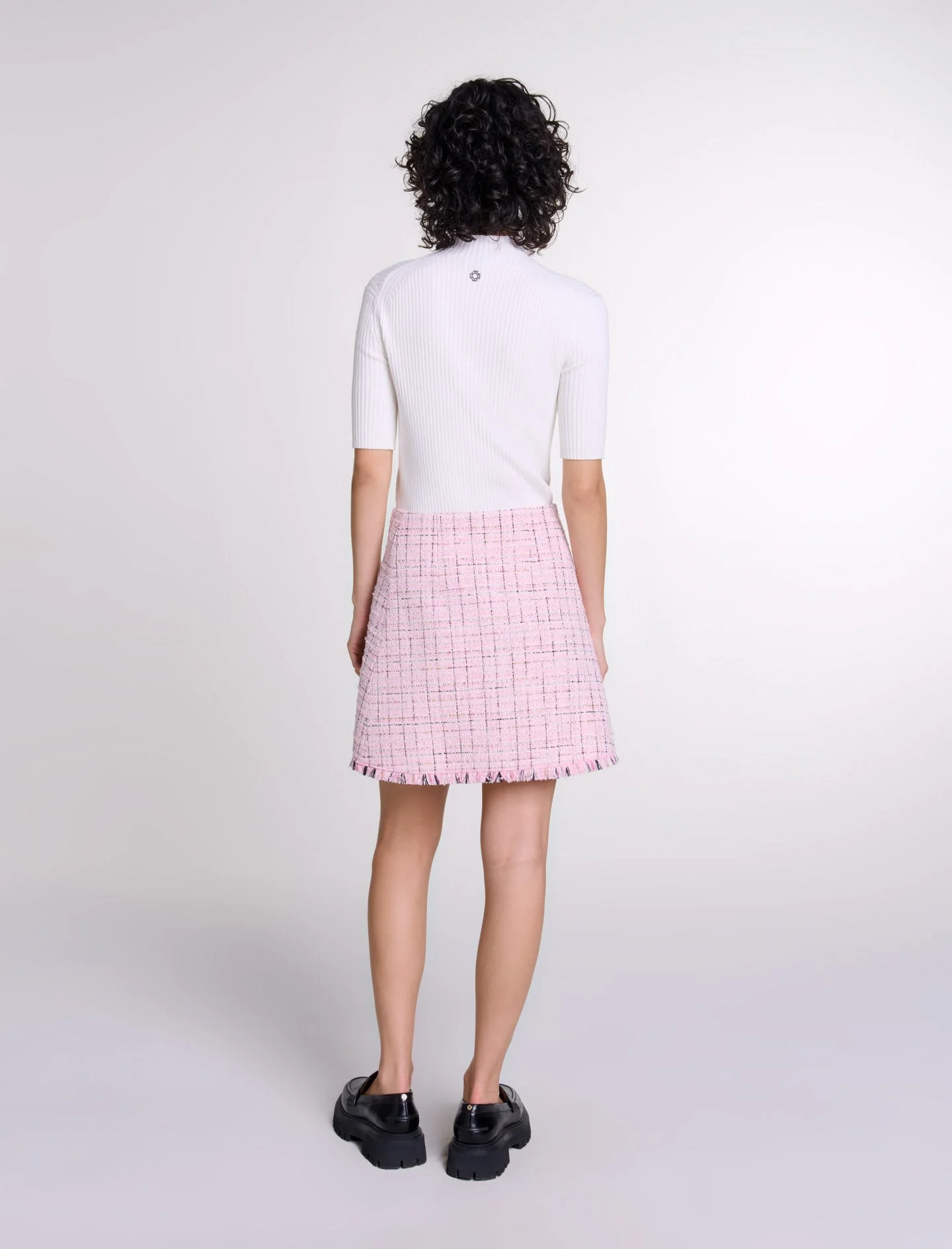 • Falda de tweed con cinturón