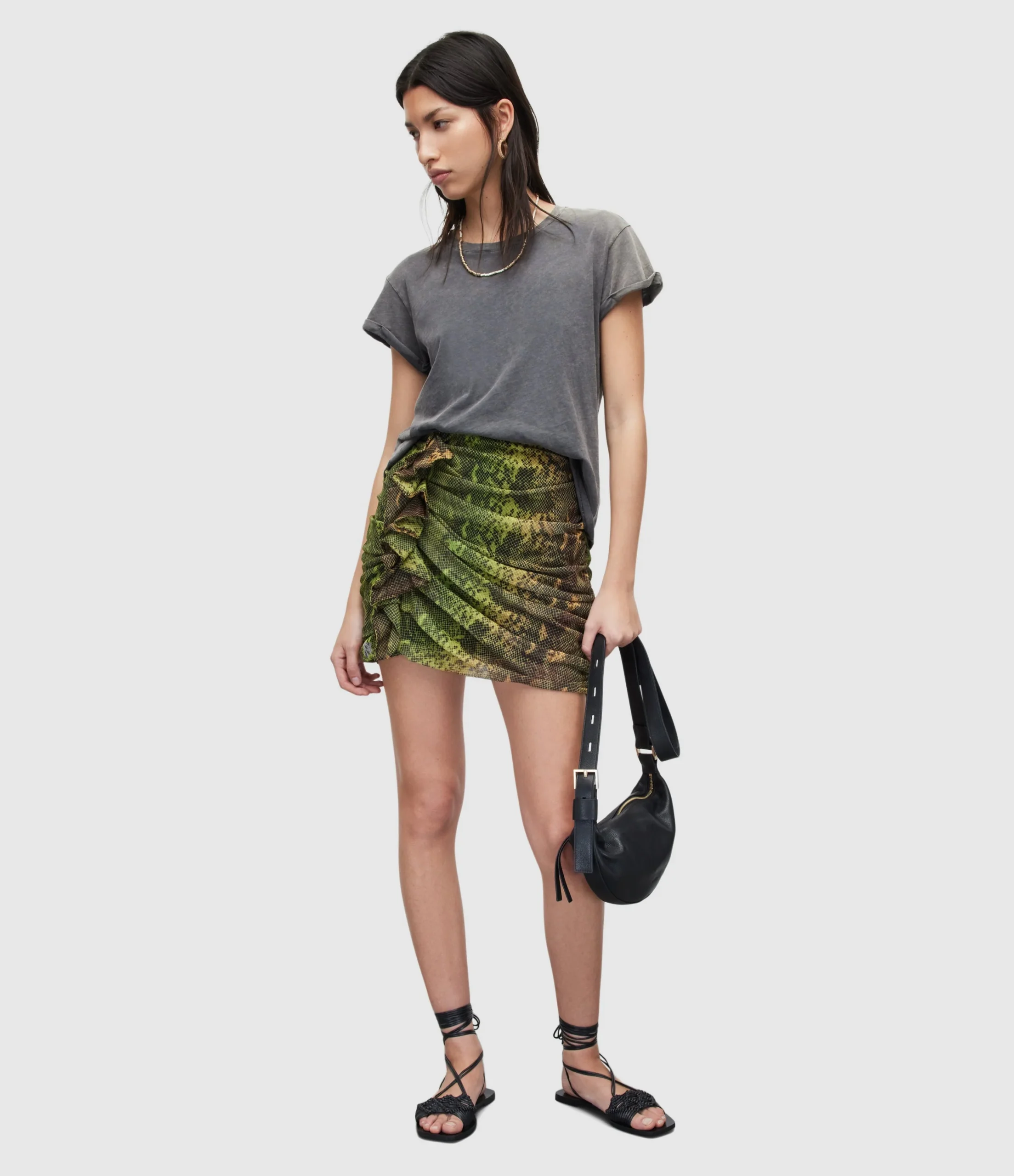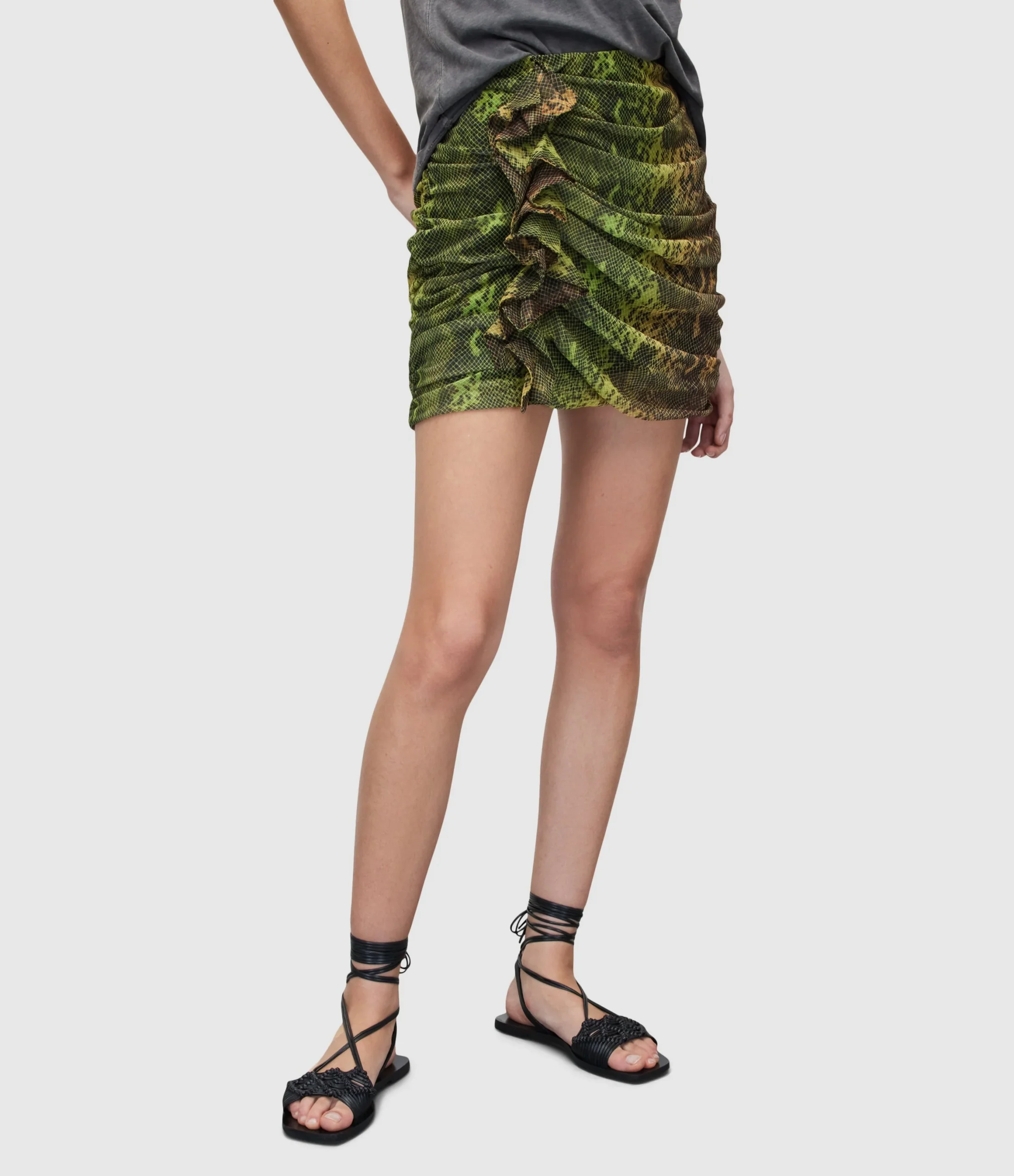 Falda Gloria Ramona Verde para mujer, marca AllSaints. COMPOSICIÓN Y LAVADO: Consultar etiqueta interna.