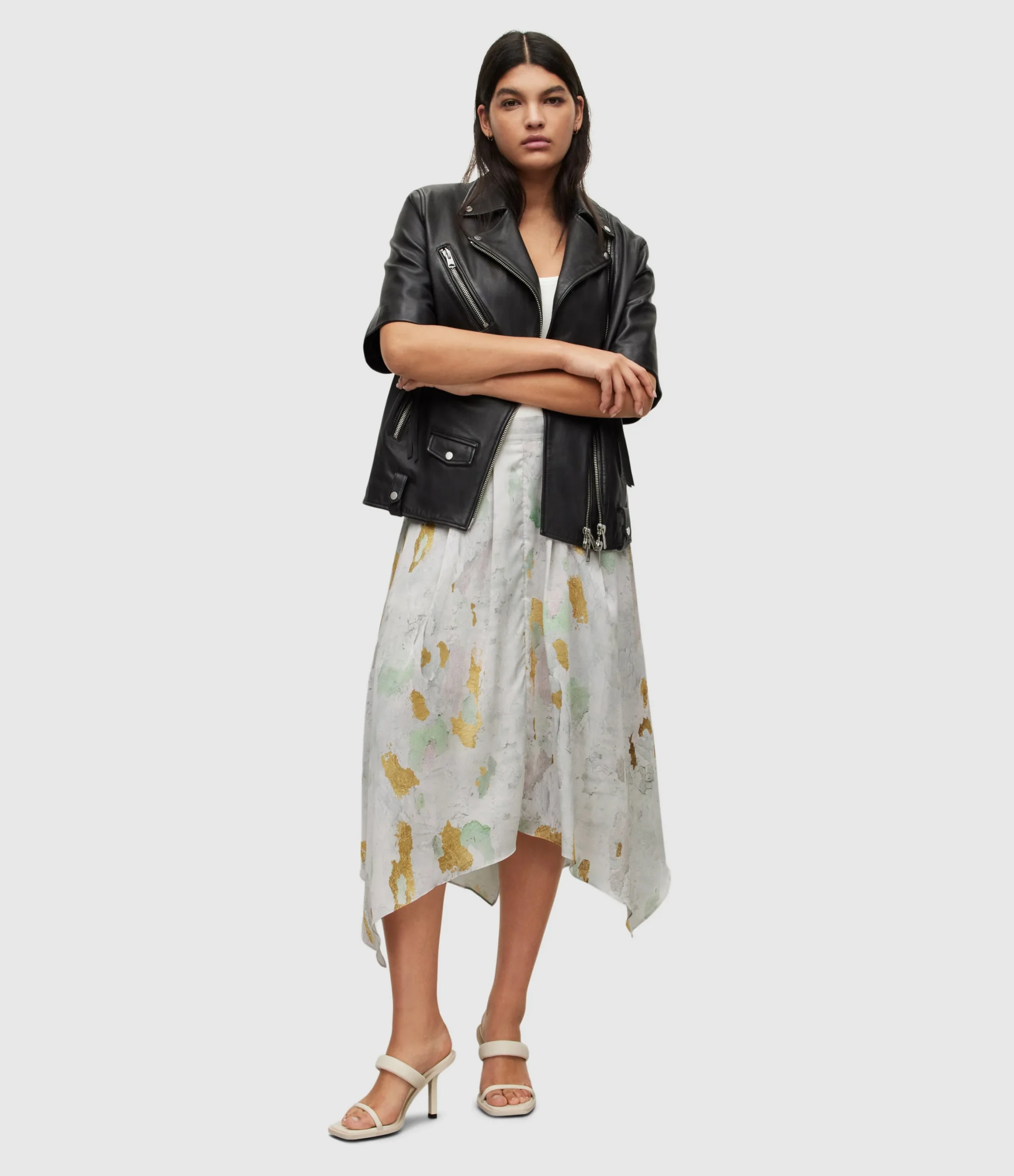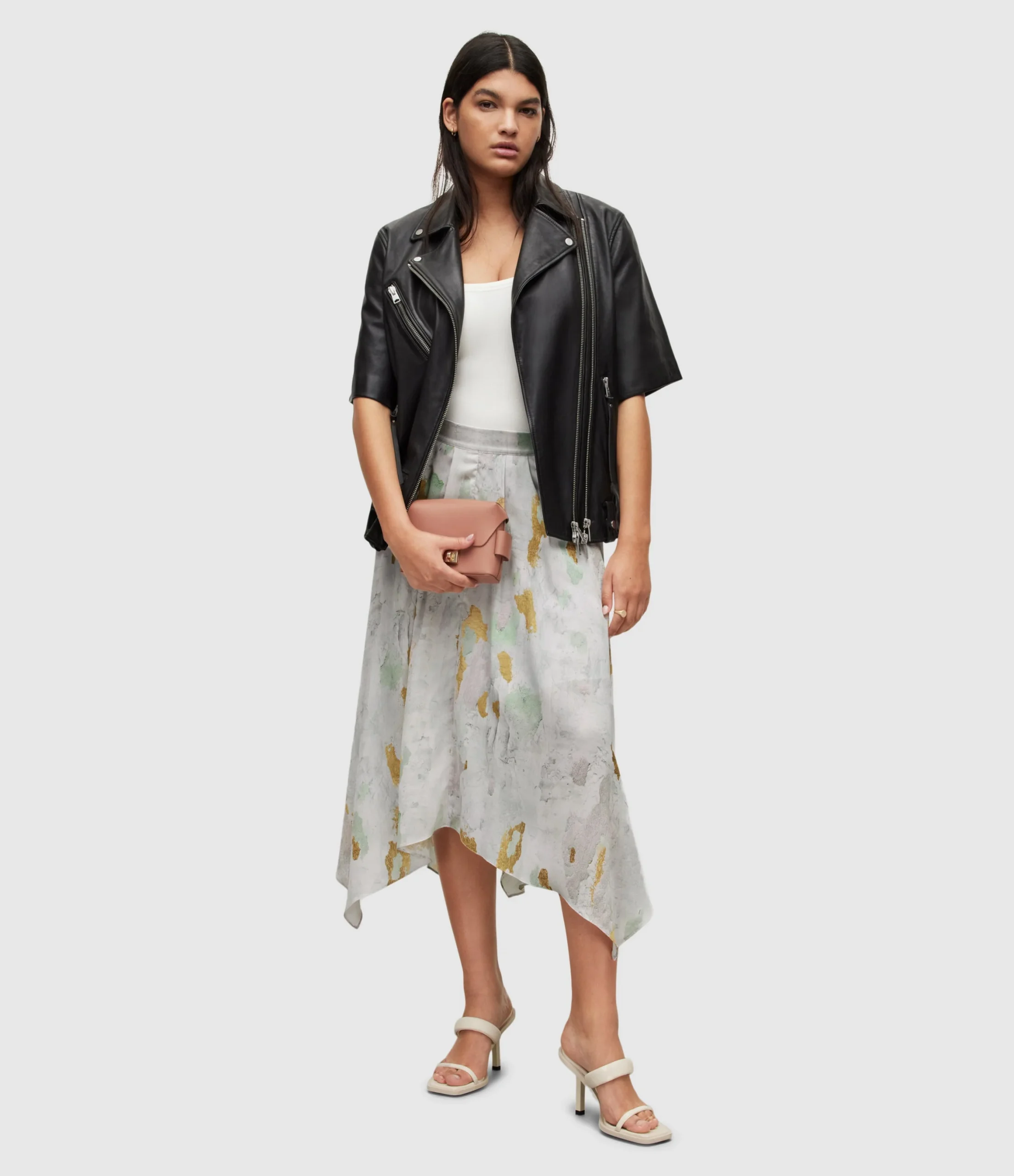 Falda Greta Paola Blanco para mujer, marca AllSaints. COMPOSICIÓN Y LAVADO: Consultar etiqueta interna.