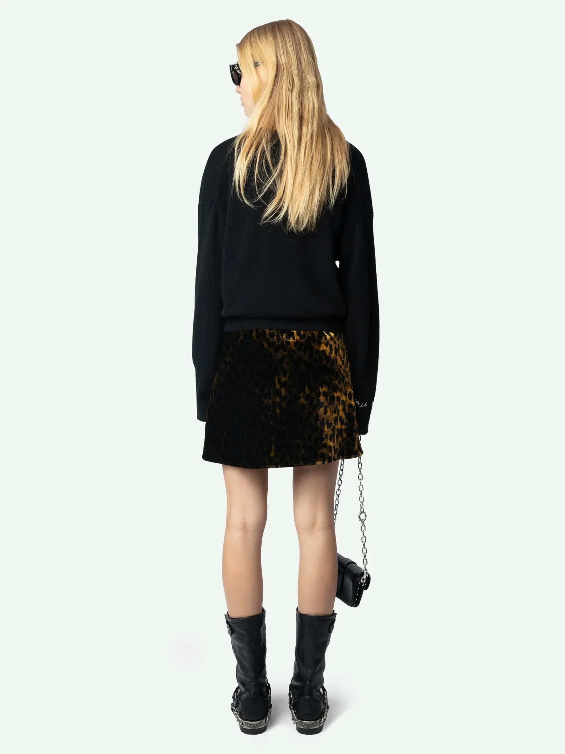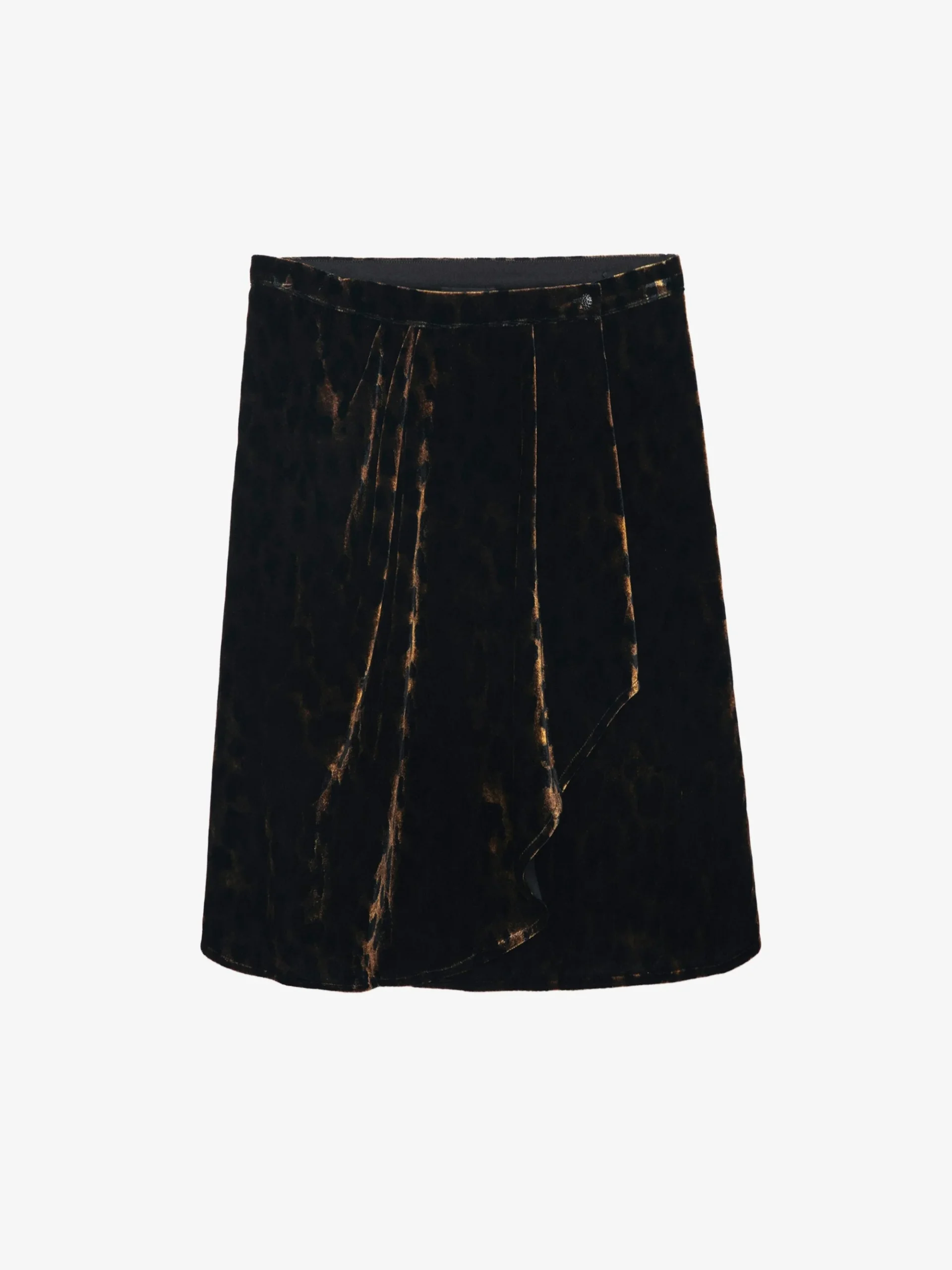 Falda corta con volantes de terciopelo estampado leopardo.