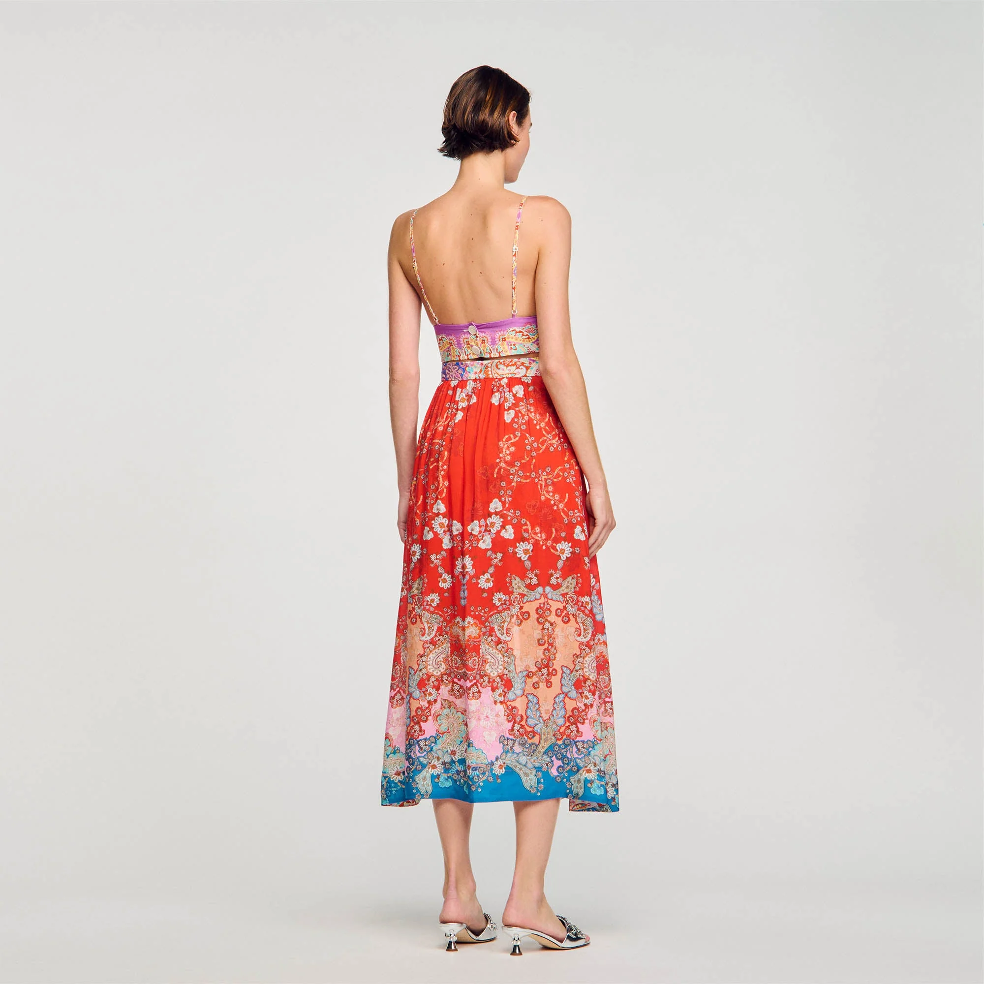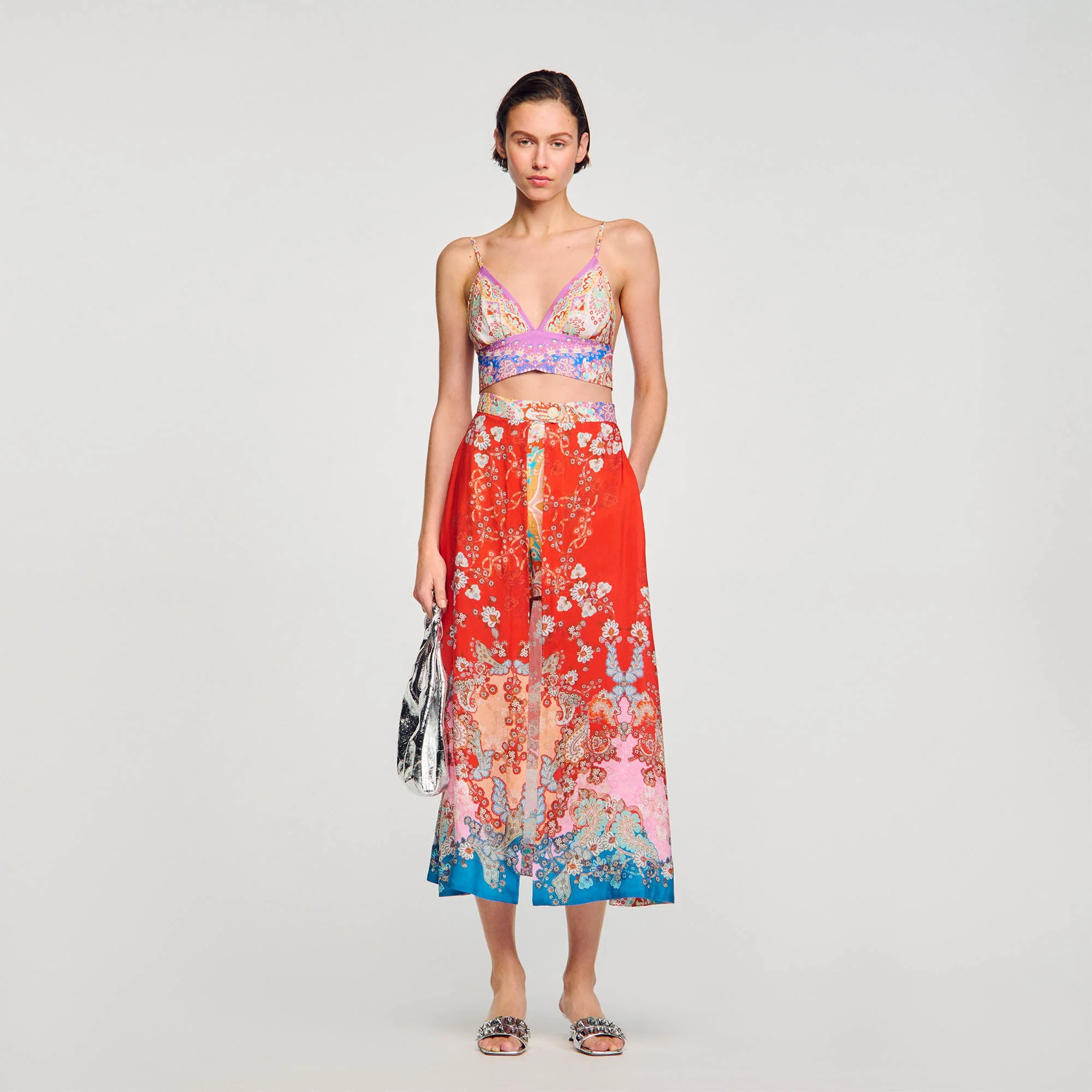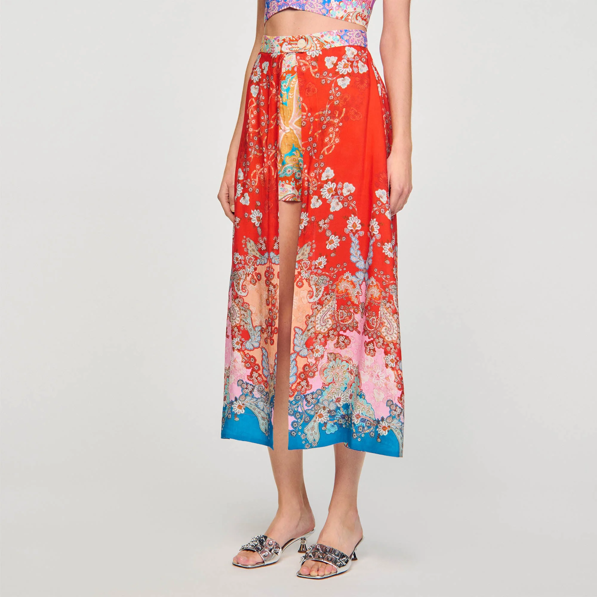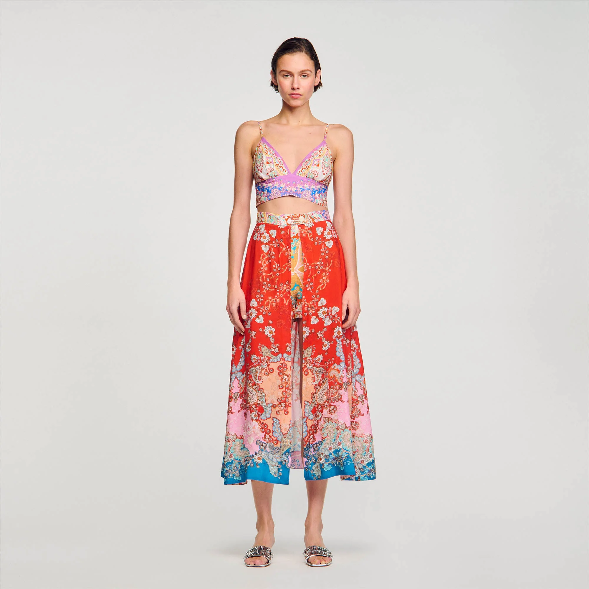 • Falda pantalón trampantojo con flores Sandro Femme