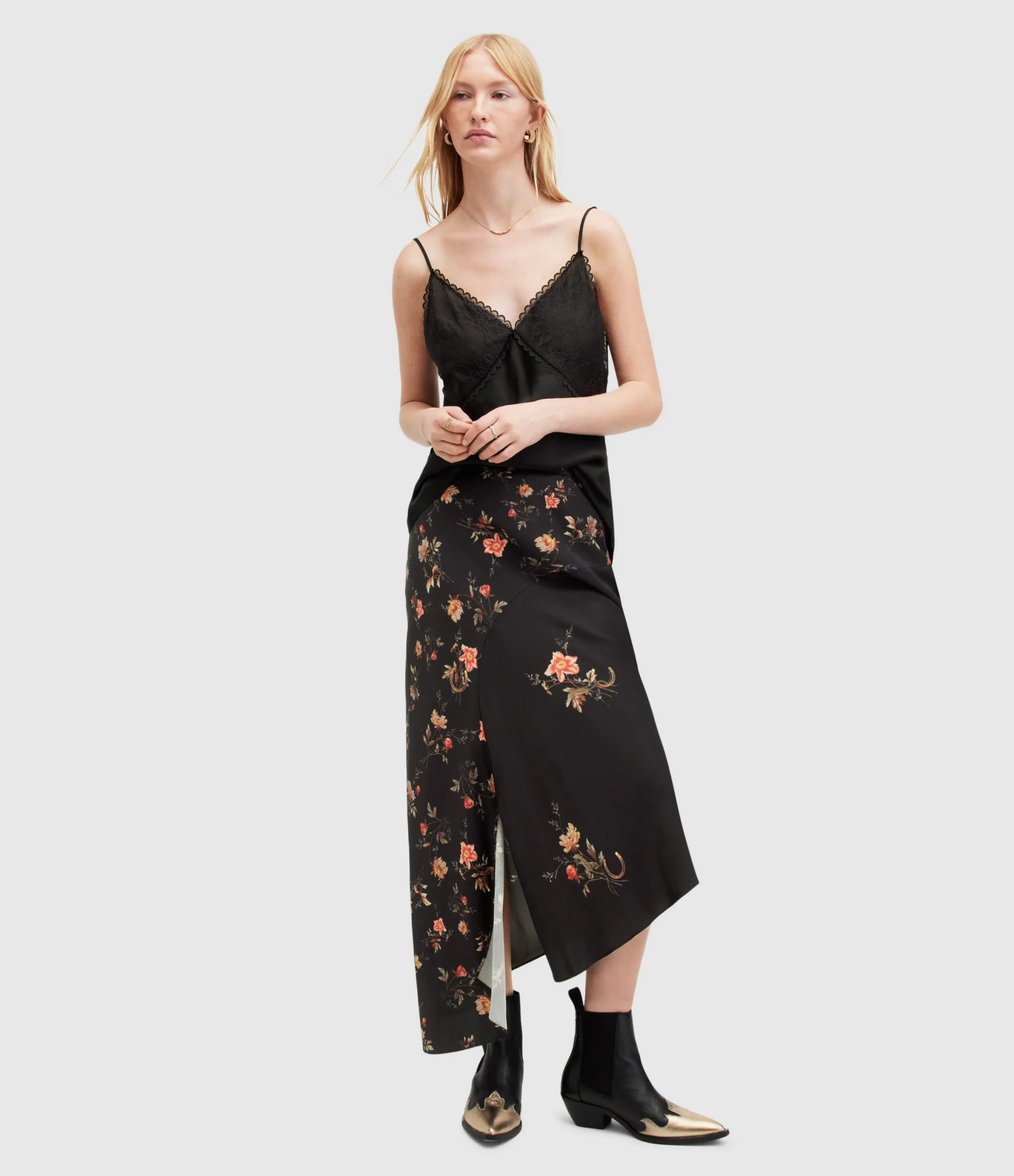 Falda Luisa Tanana color Negro para mujer, marca AllSaints.