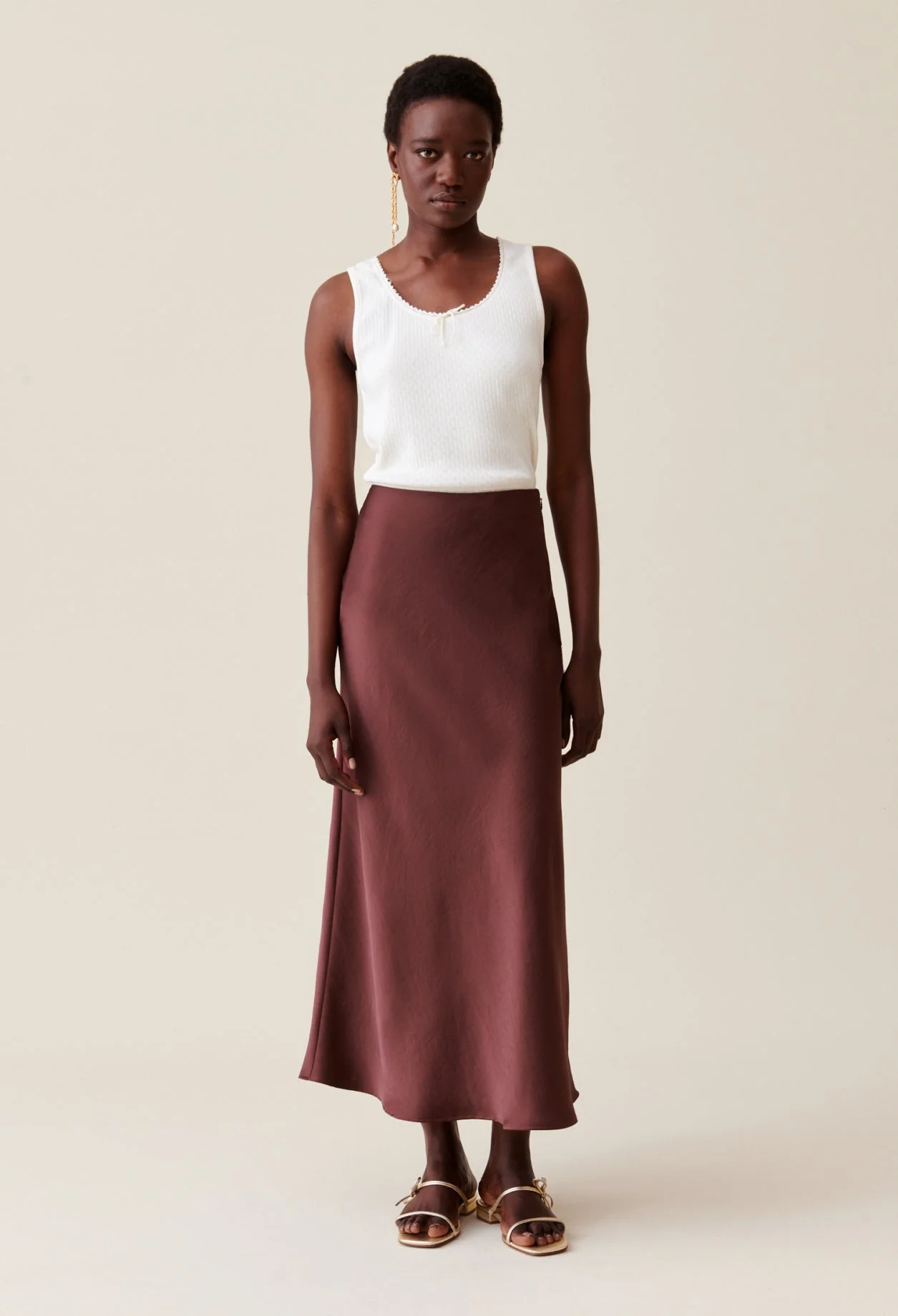 Corte recto ligeramente acampanado en la parte inferior, cintura alta