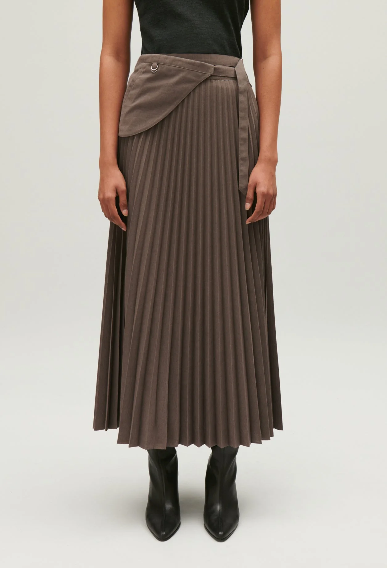 Falda midi plisada con cinturón extraíble con bolsillo grande