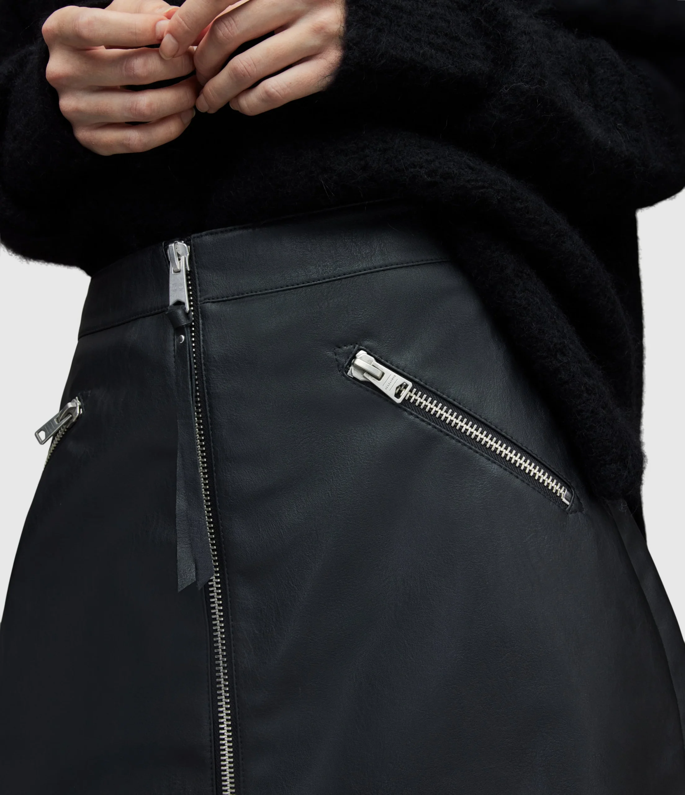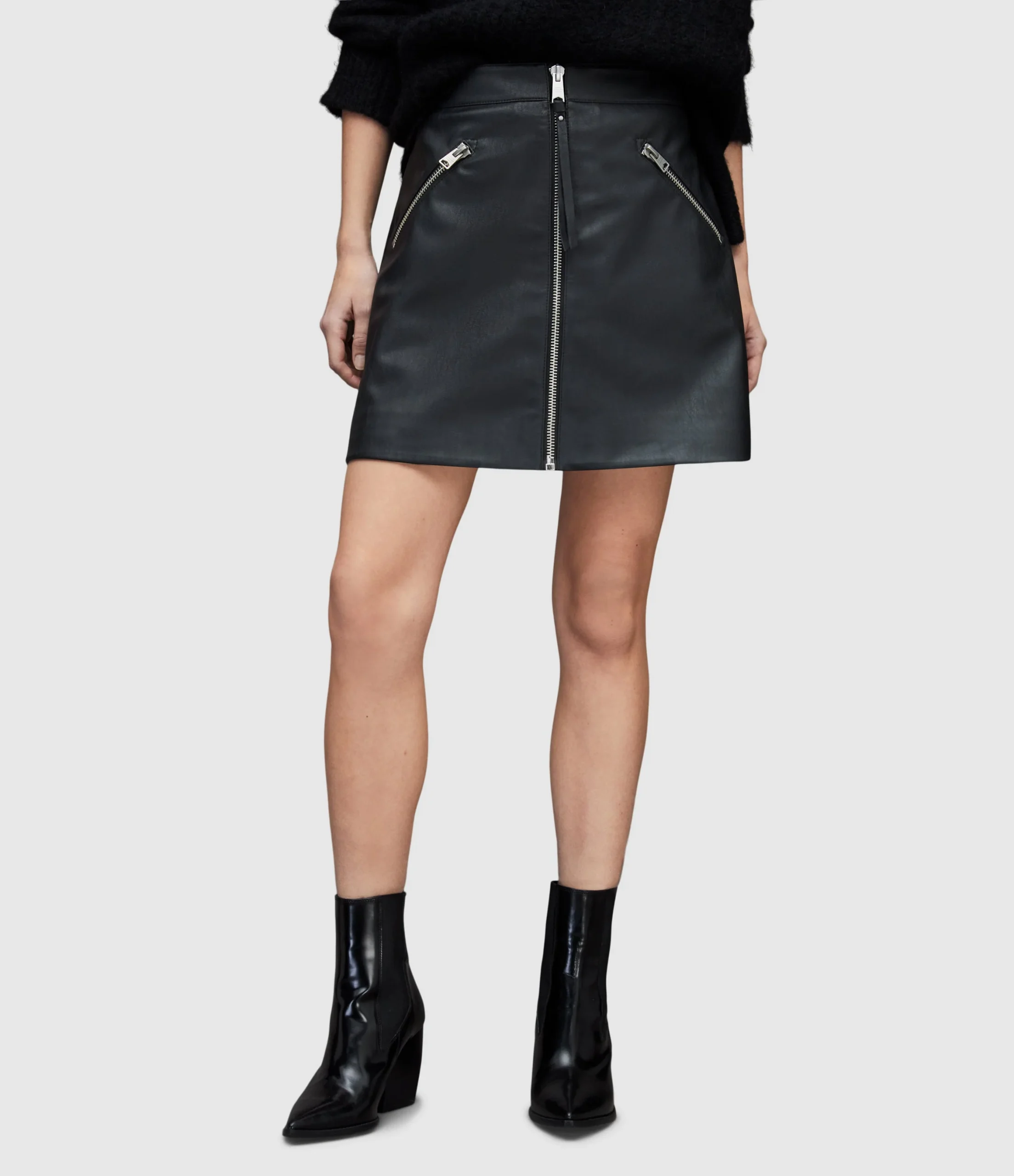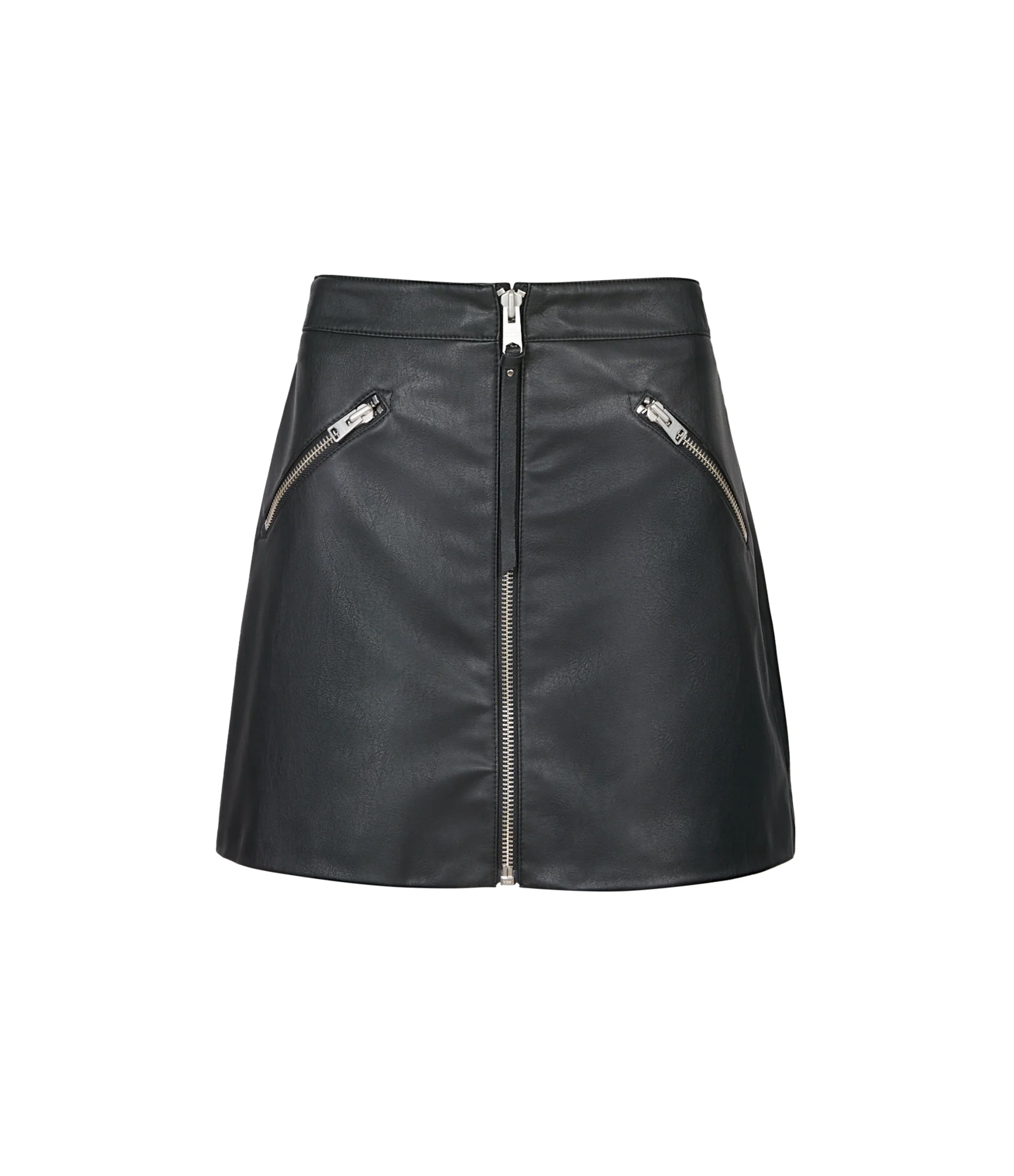 PIPER FAUX SKIRT WL180X BLACK AUG Zip closure Regular fit Short length The Piper skirt has an a-line Shape a centre front zip with a dull nickel stud on the self faux puller, and two zip pockets N/A NA Straight hem Unlined NA FAUX Lightweight