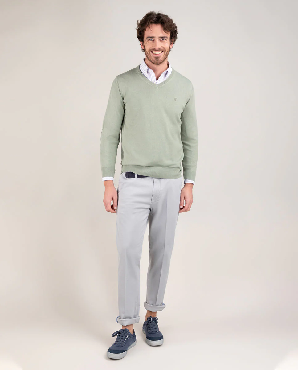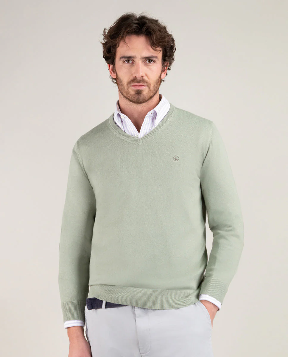 Jersey Cuello Pico Coderas Verde Claro