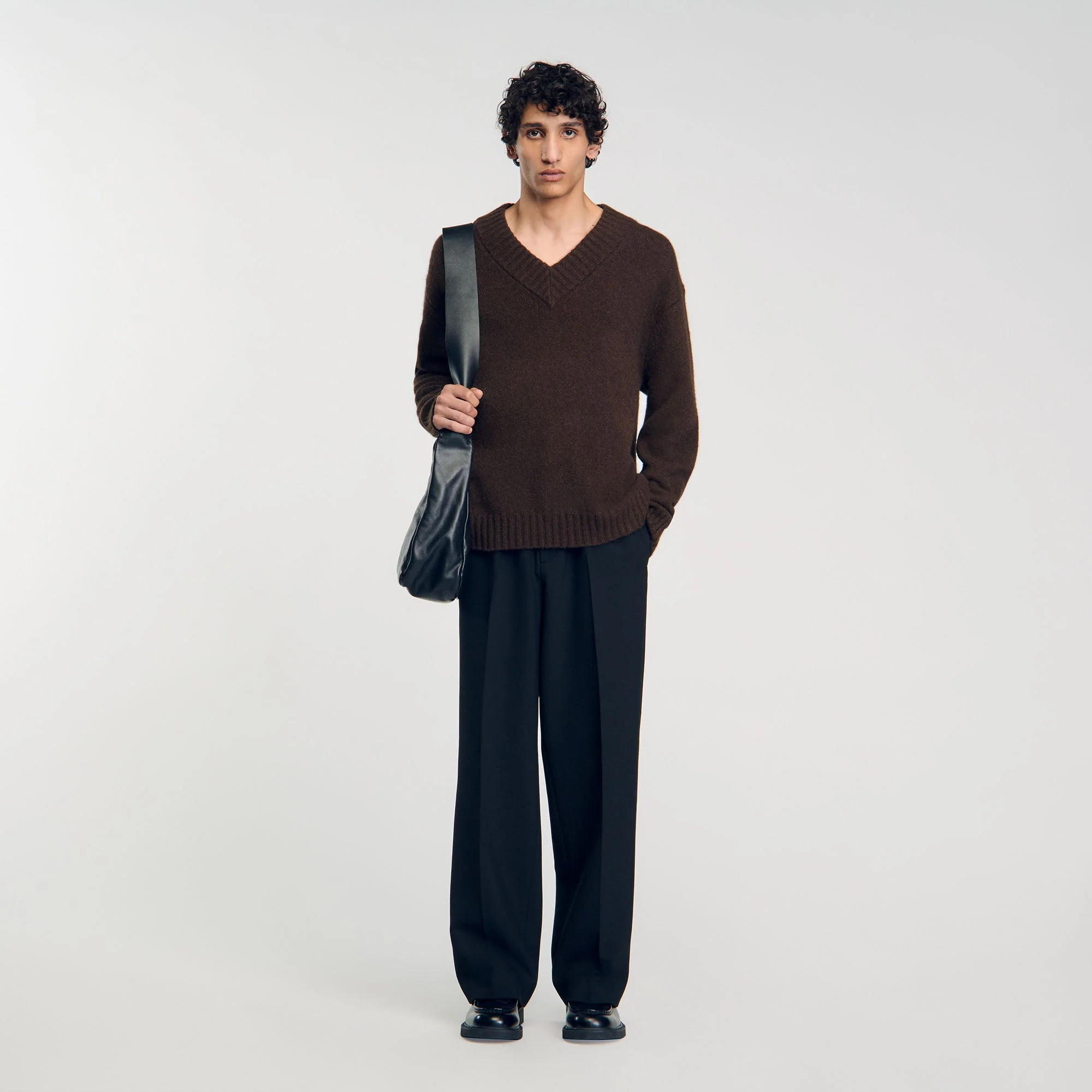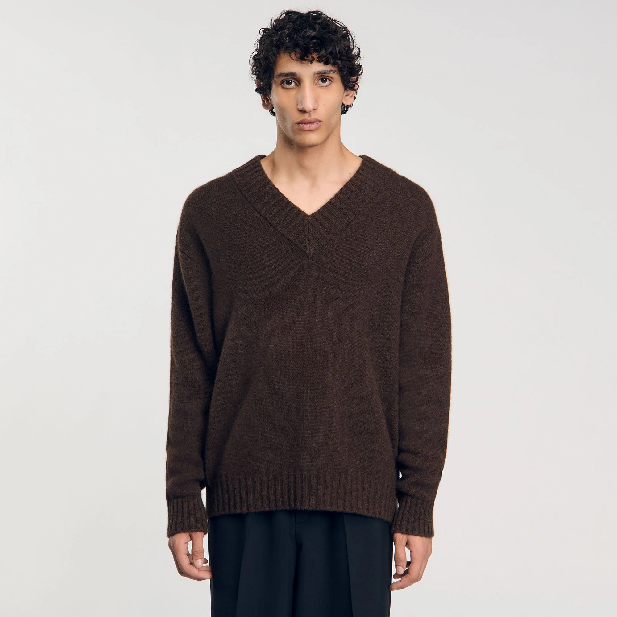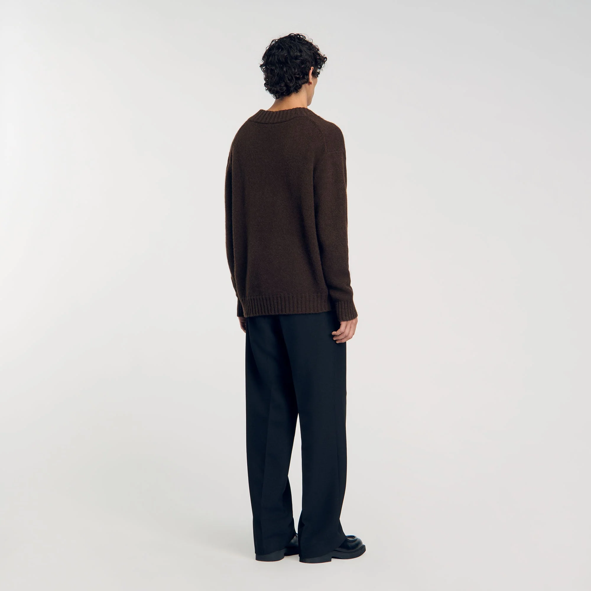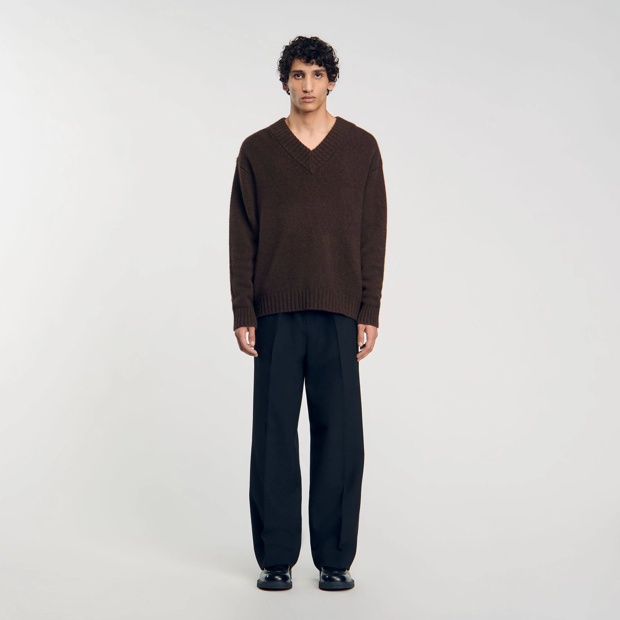 Jersey oversize de punto grueso y suave de yak con cuello de pico y manga larga.