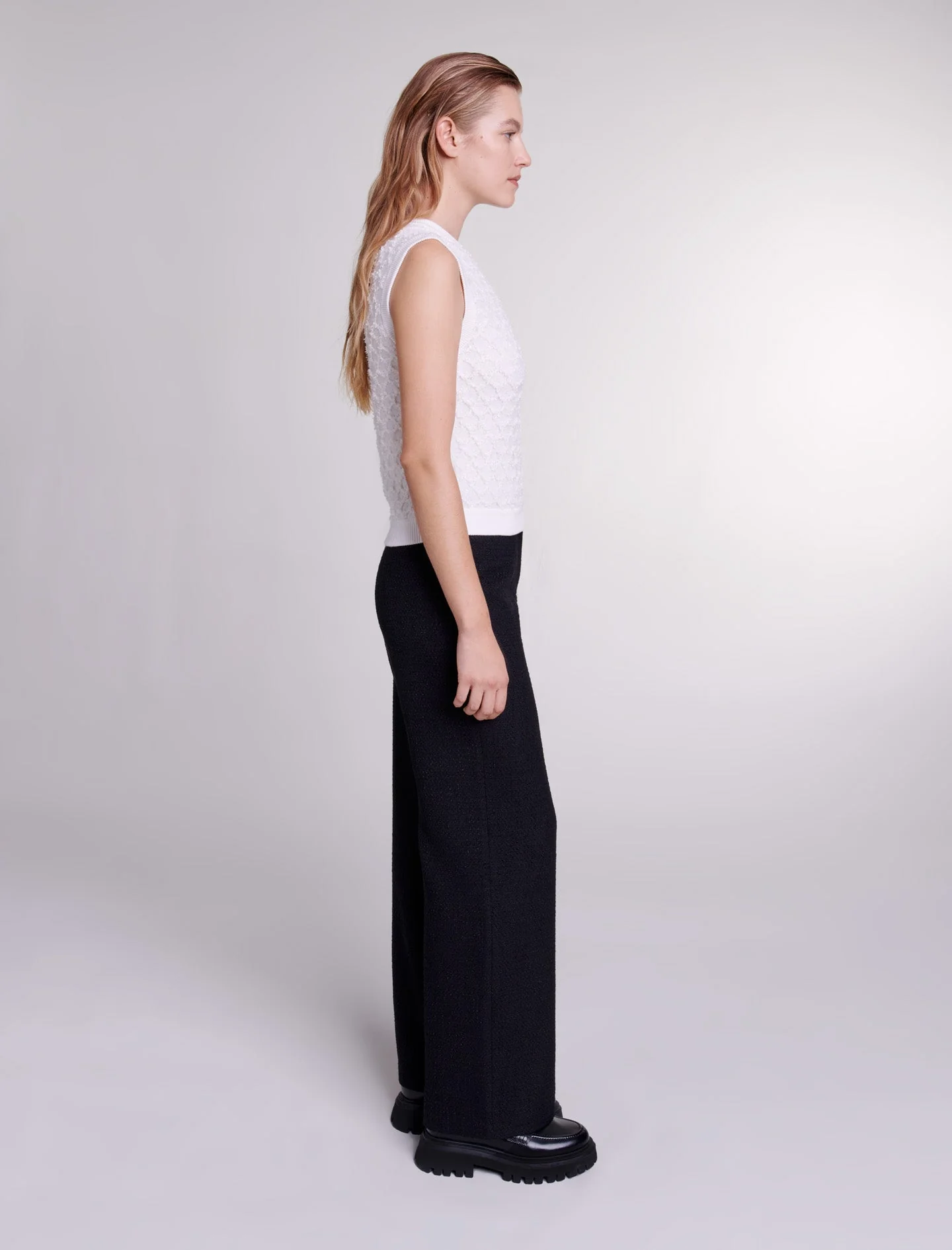• Jersey sin mangas de punto en relieve de efecto cortado