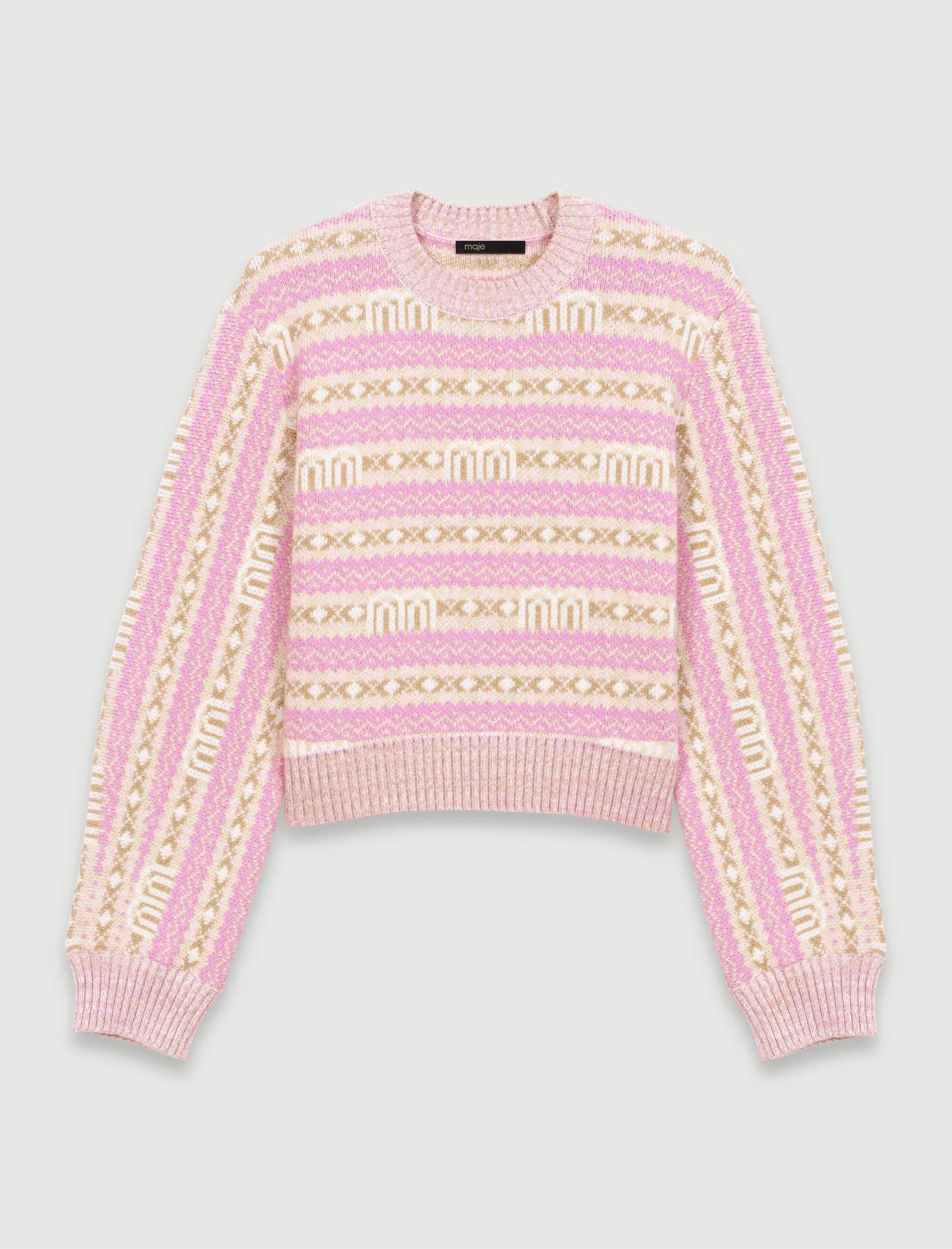 Adornado con nuestro característico estampado M, este jersey corto de punto tiene un favorecedor corte holgado. Las mangas largas, el cuello redondo y los bordes de canalé liso añaden una elegante estructura a la silueta, para un look a la vez chic y atemporal.