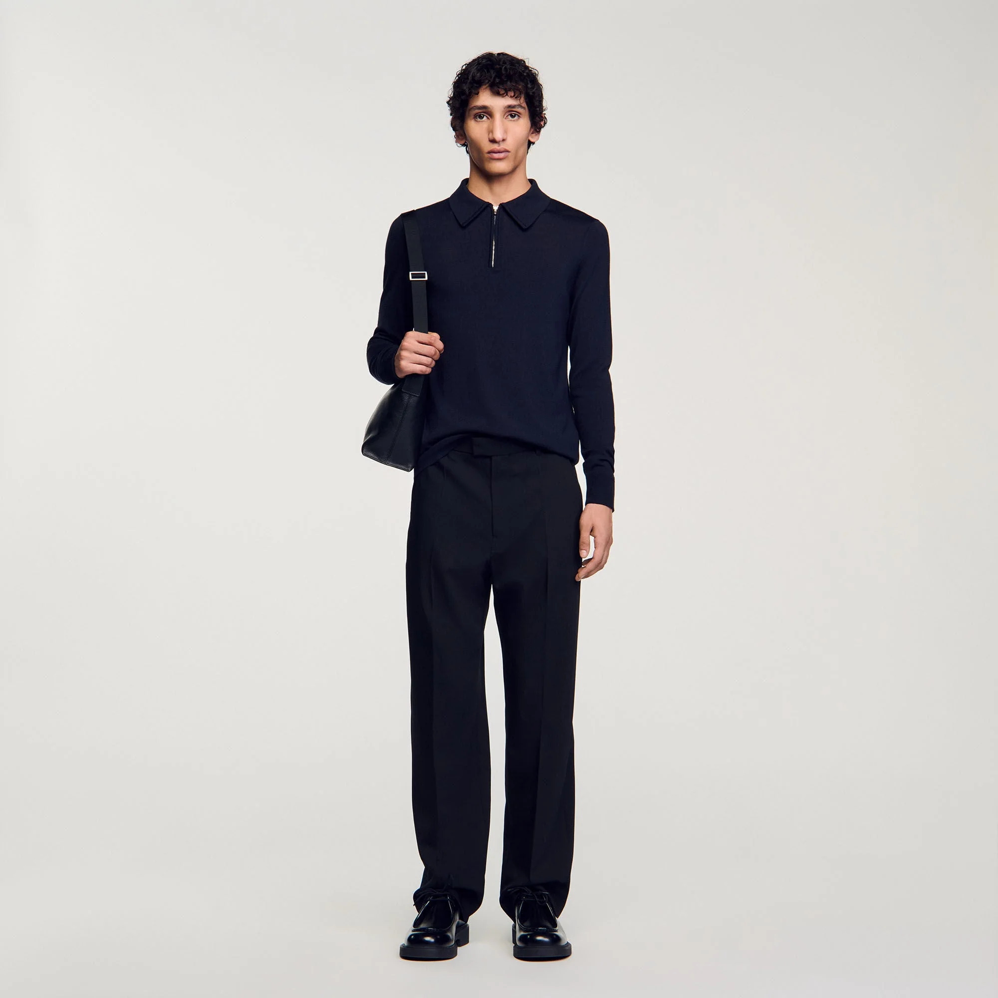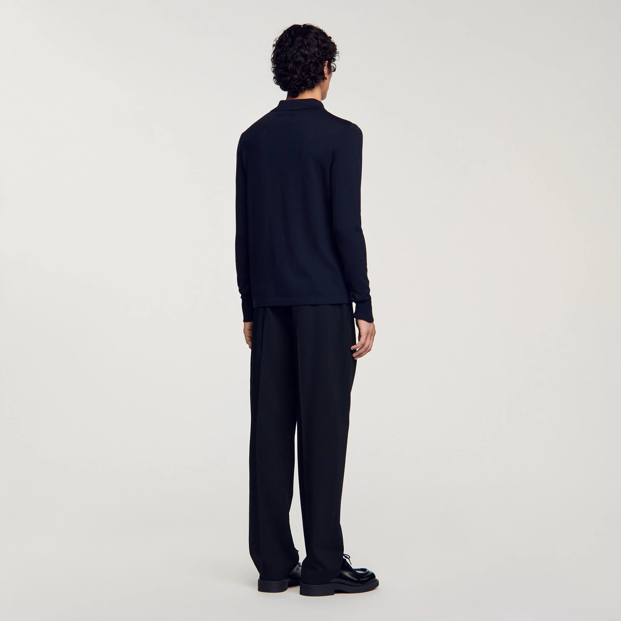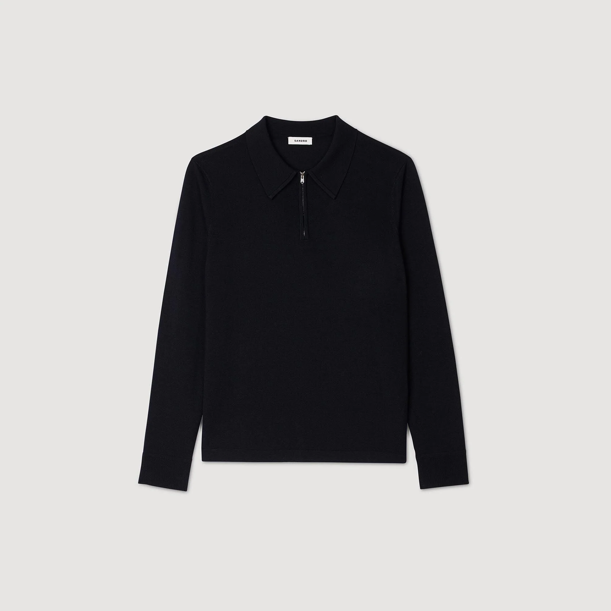 Jersey de punto con cuello polo con cremallera y manga larga.