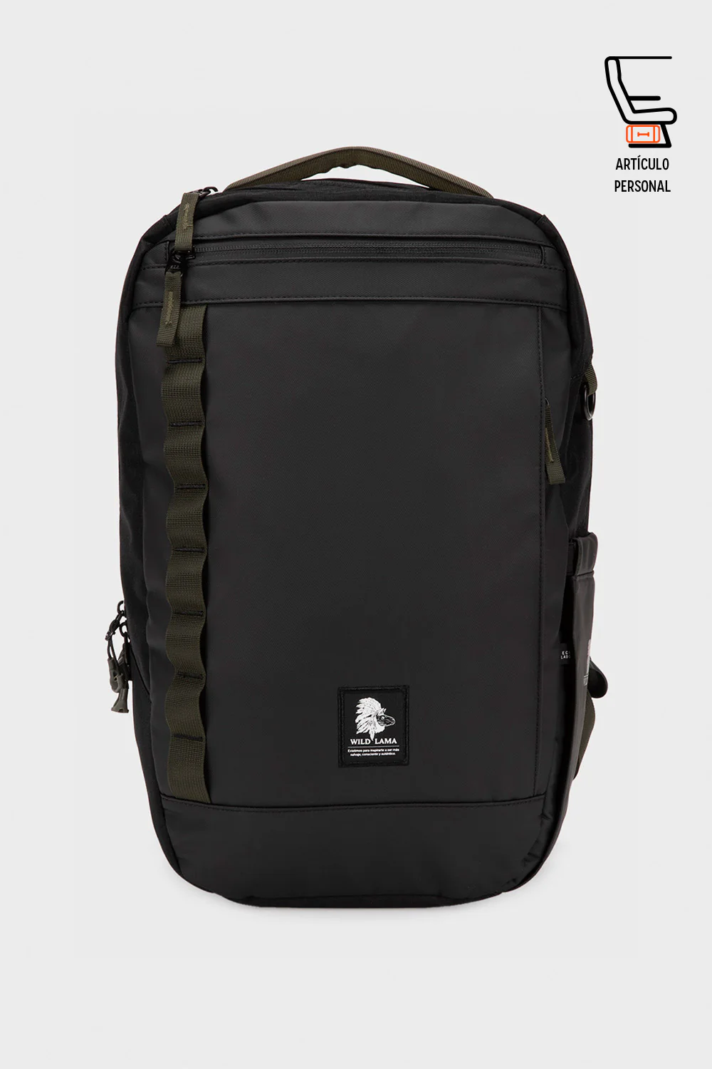 Cuenta con correas tipo «daisy chains» frontales para colgar accesorios. Incluye bolsillo elasticado para botella, correa en el pecho removible y espacio acolchado para computador de hasta 16″.