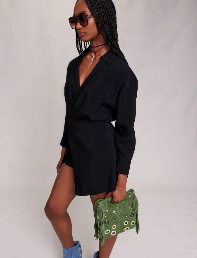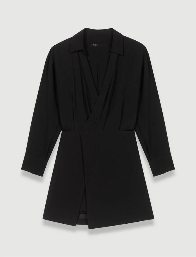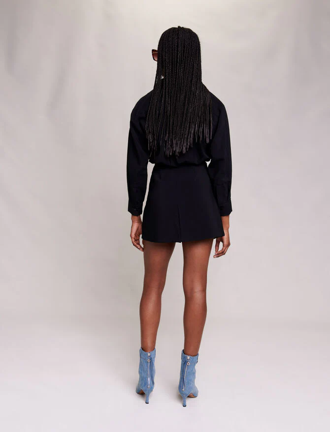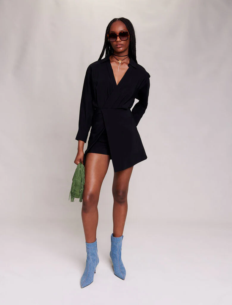 La nueva colección Maje, una oda a la inspiración británica de los años 70, reinventa los volúmenes retro con un toque atrevido para crear looks irresistiblemente sexis.Este mono corto recto, ideal para ir a trabajar o para salir de noche, juega con las proporciones y combina comodidad y elegancia.Cuenta con cuello de camisa, cierre con cremallera y botones, escote cruzado con botón y manga larga con botón en el puño.Su falda recta con paneles abiertos define una figura perfectamente ajustada y con estilo.Fácil de combinar con accesorios como gafas de sol, joyas y botas de estilo western.Ref.: MFPCO00309