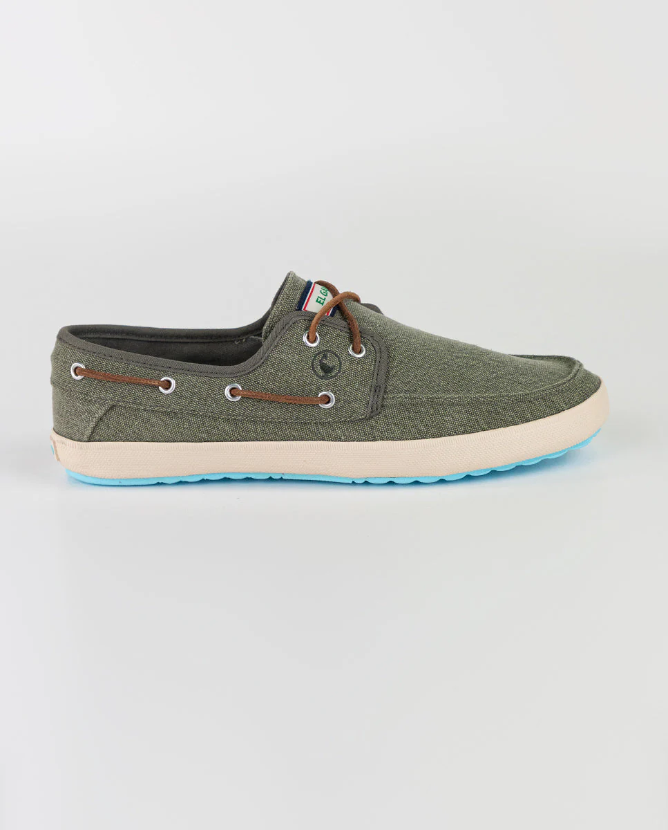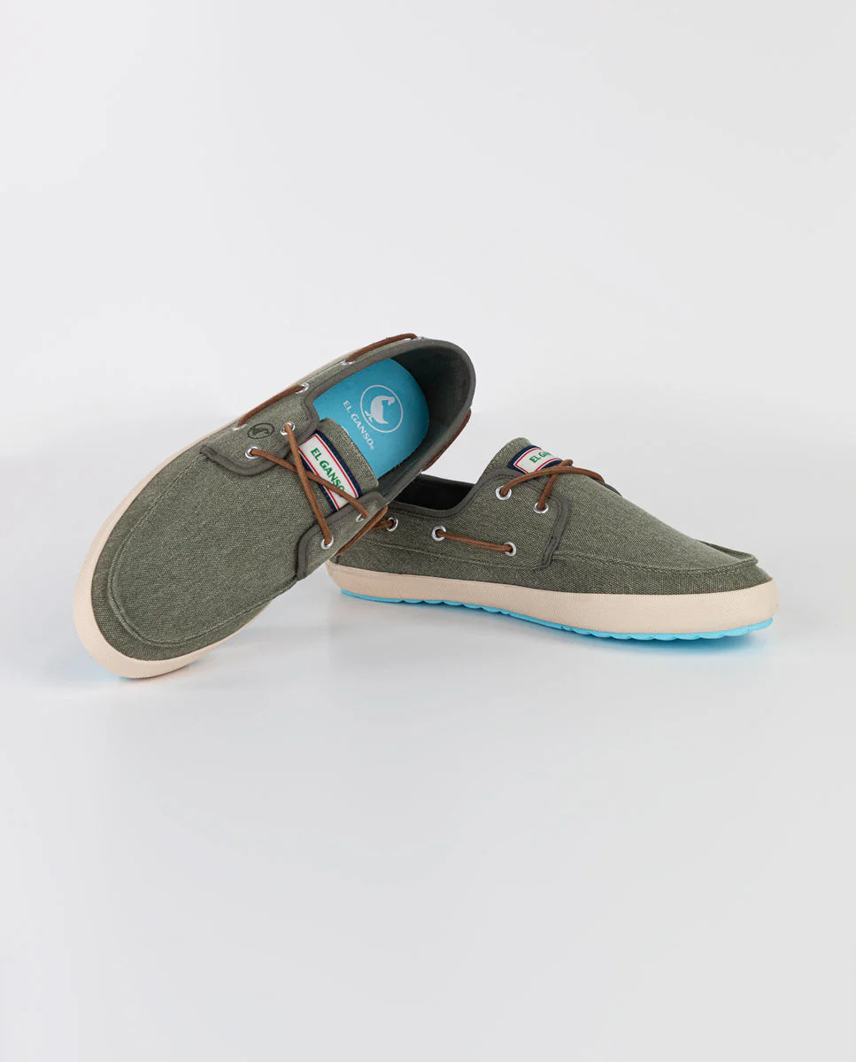 Náutico de hombre confeccionado en 100% algodón canvas lavado. Suela de goma vulcanizada de origen natural de color blanco, y planta de suela a contraste. Cordones de cuero y detalle de logo bordado en el perfil. Forro interior de algodón. Plantilla de alta confortabilidad.