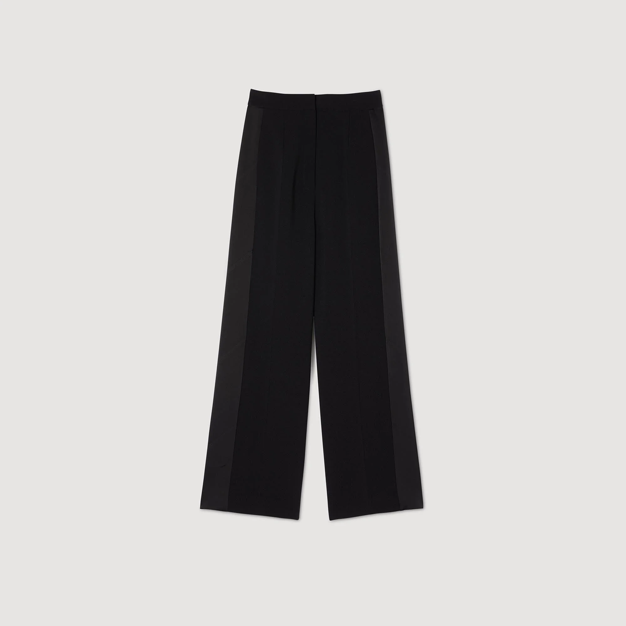 Pantalón ancho con detalle de franjas laterales satinadas en contraste.