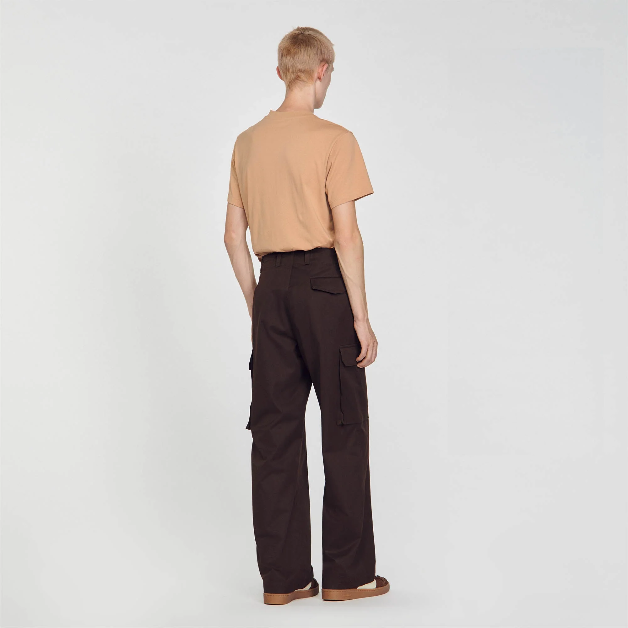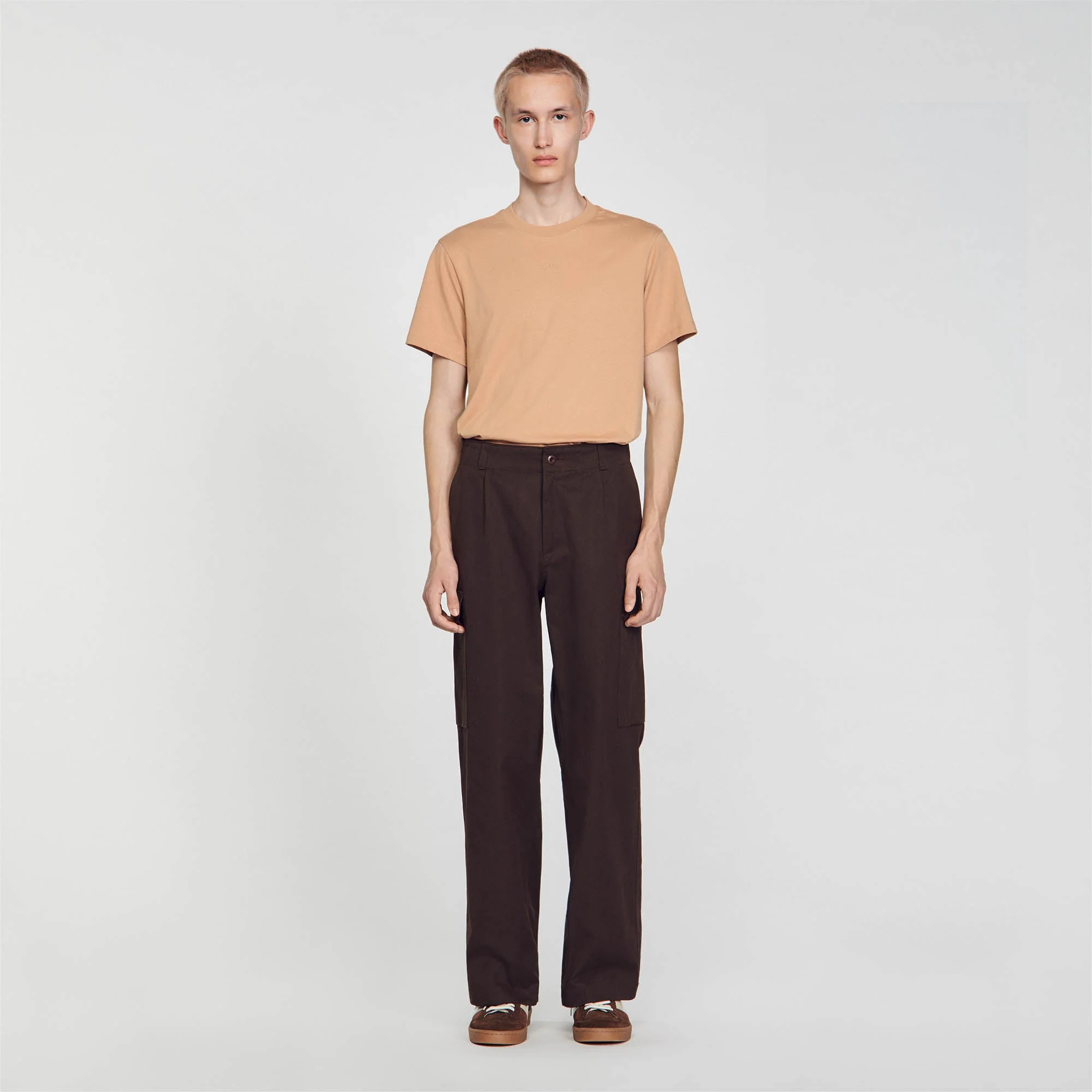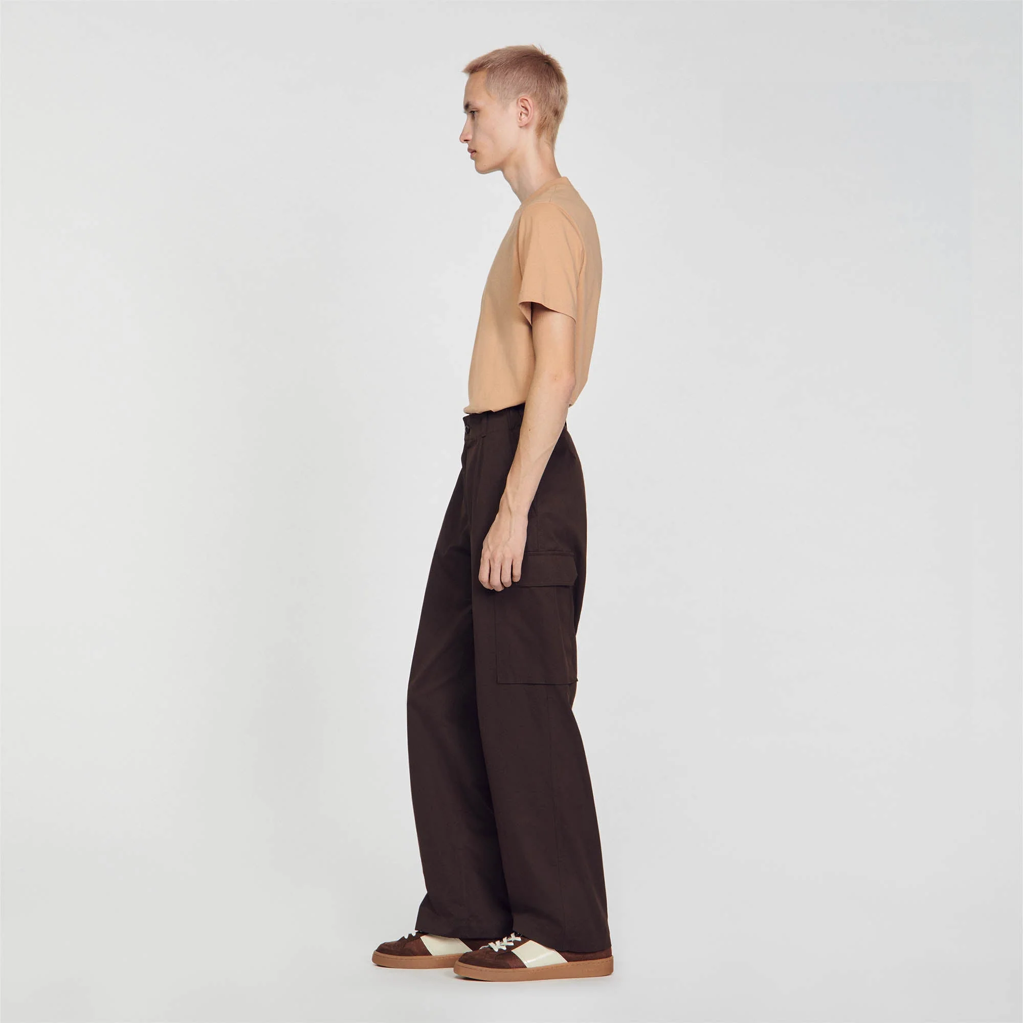 Pantalón cargo de corte ancho con bolsillos laterales.