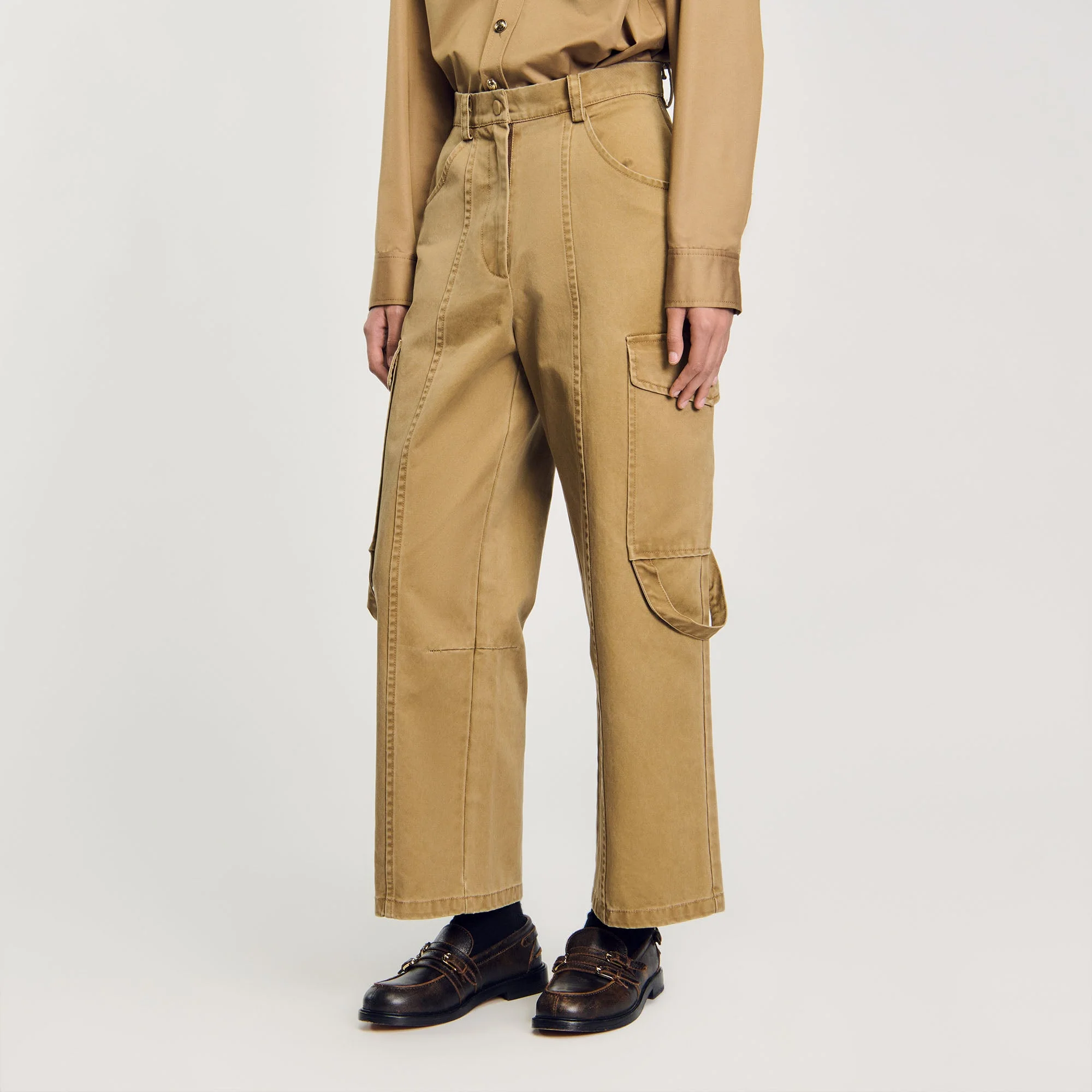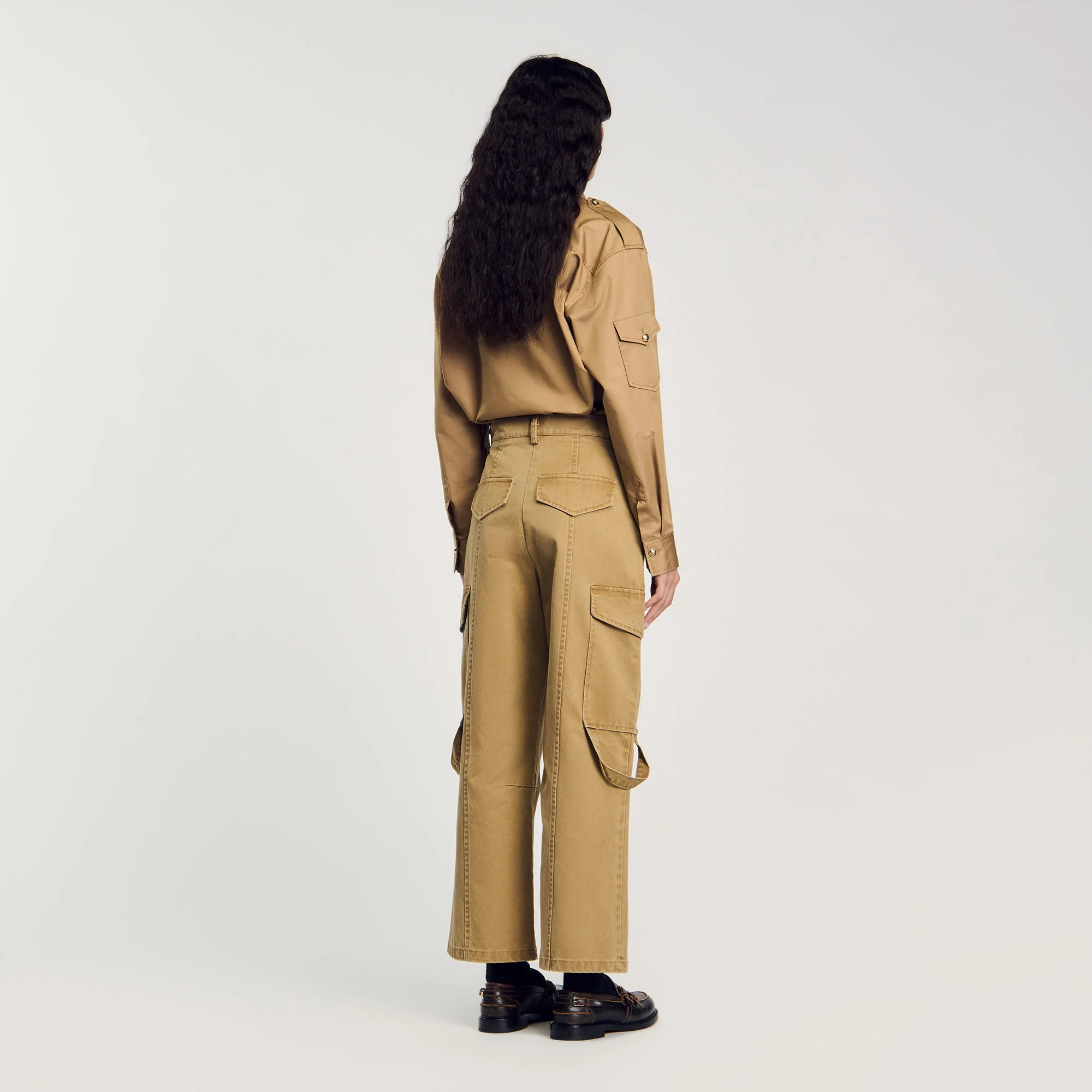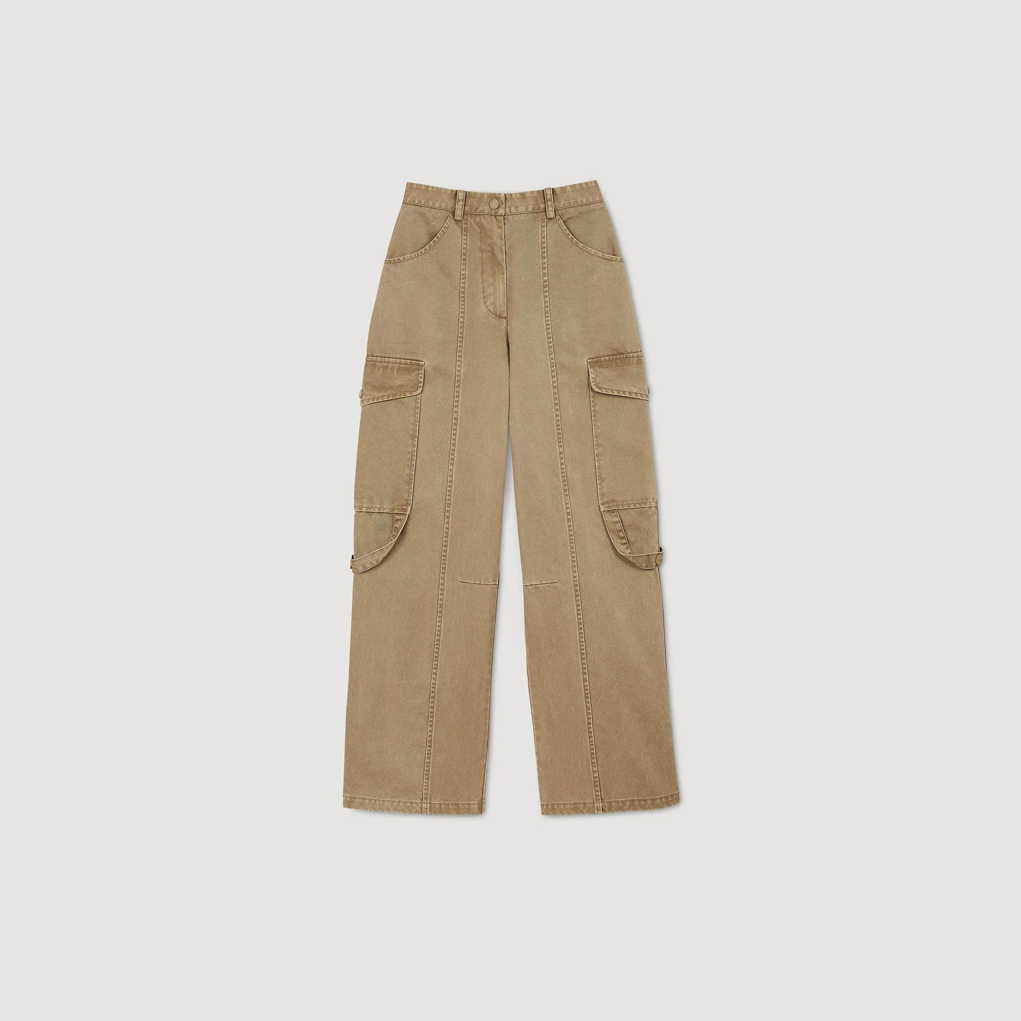 Pantalón cargo ancho con bolsillos grandes con solapas y tiras laterales.
