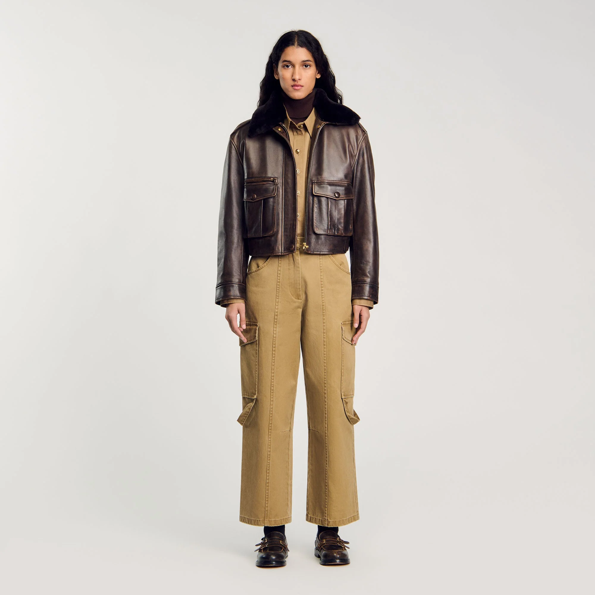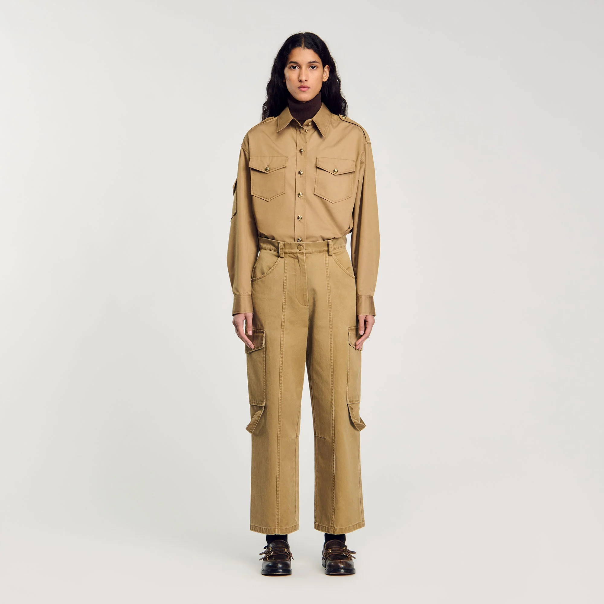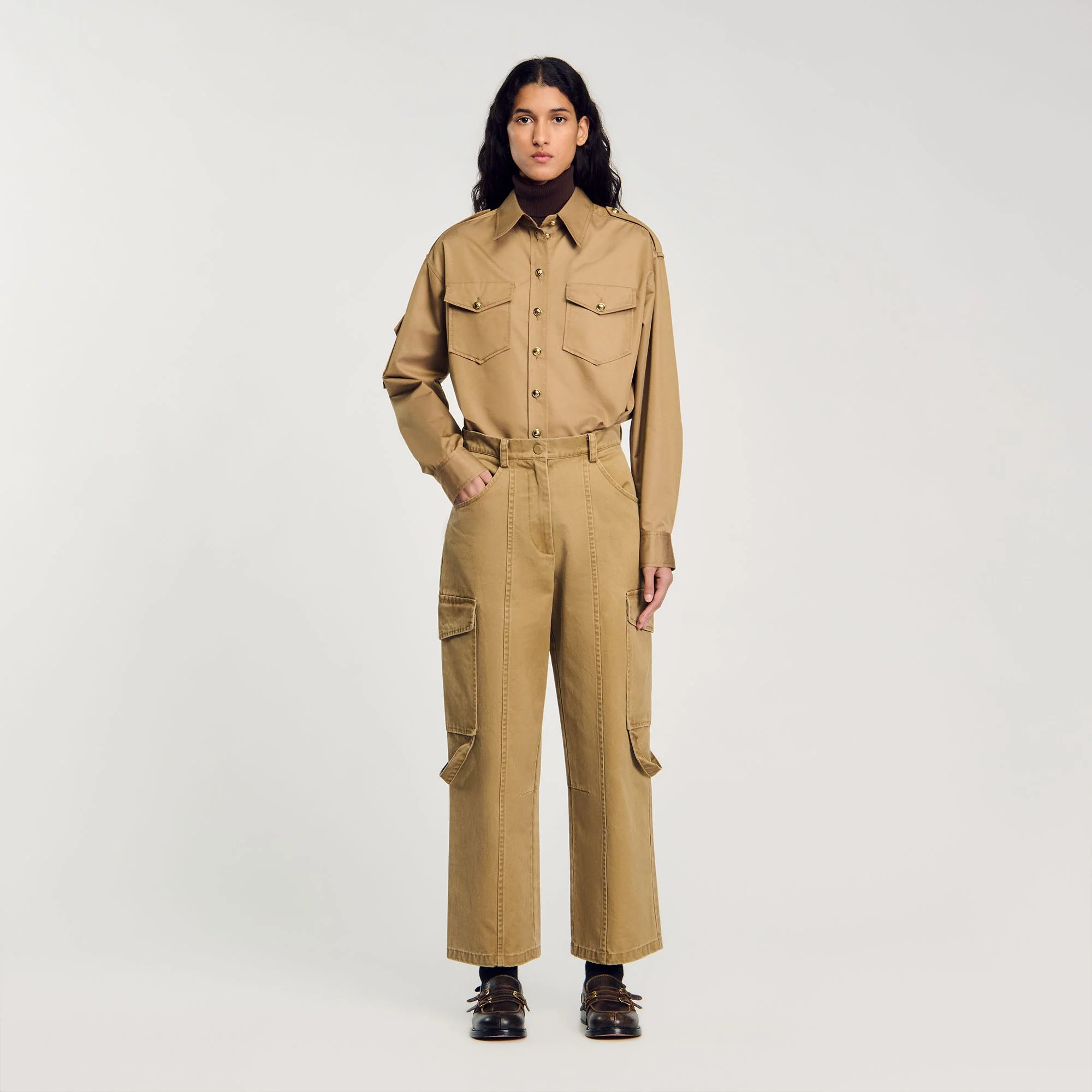Pantalón cargo ancho con bolsillos grandes con solapas y tiras laterales.