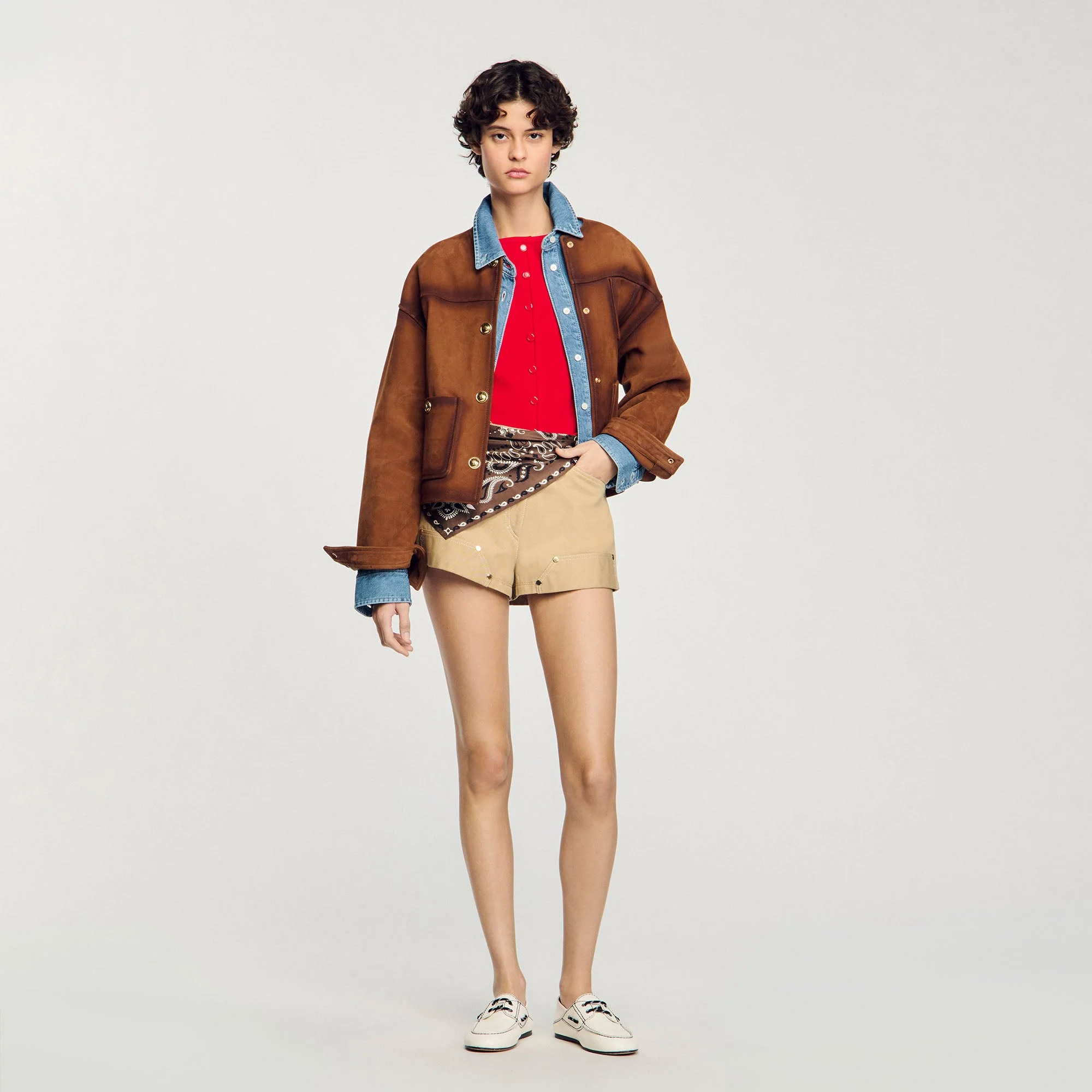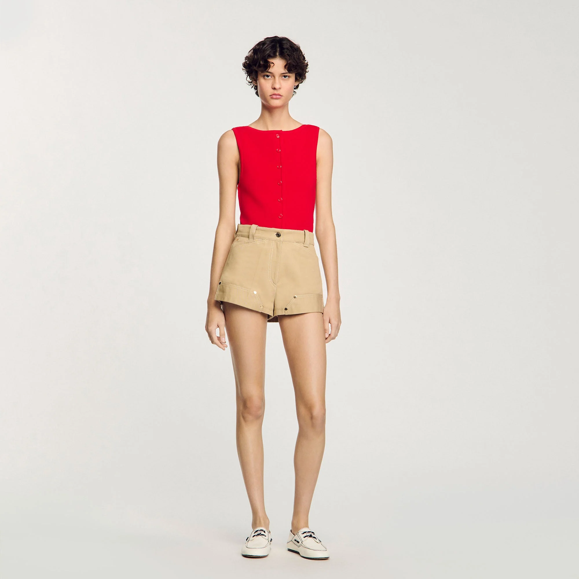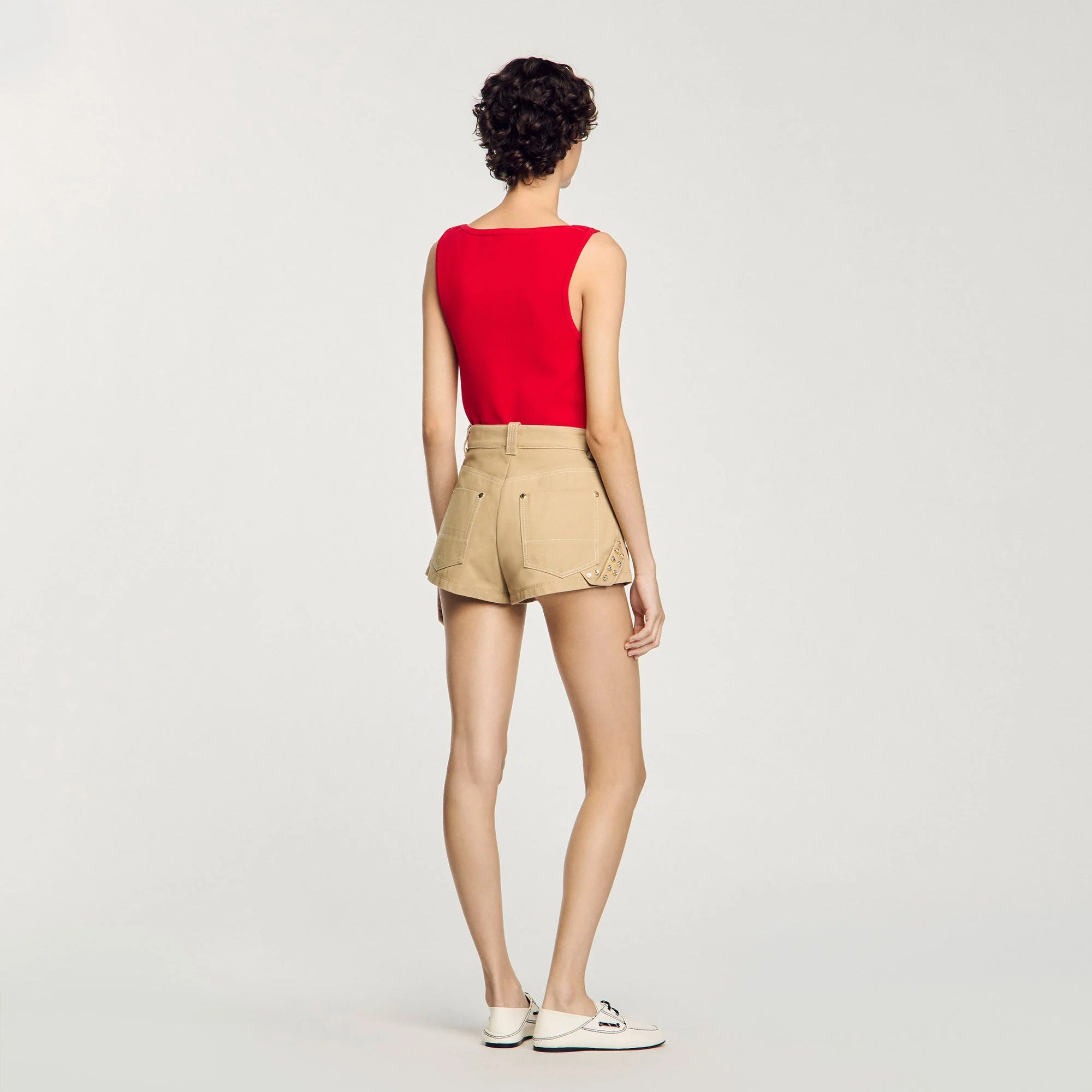 Pantalón corto carpenter con apliques pespunteados y bolsillos de parche.