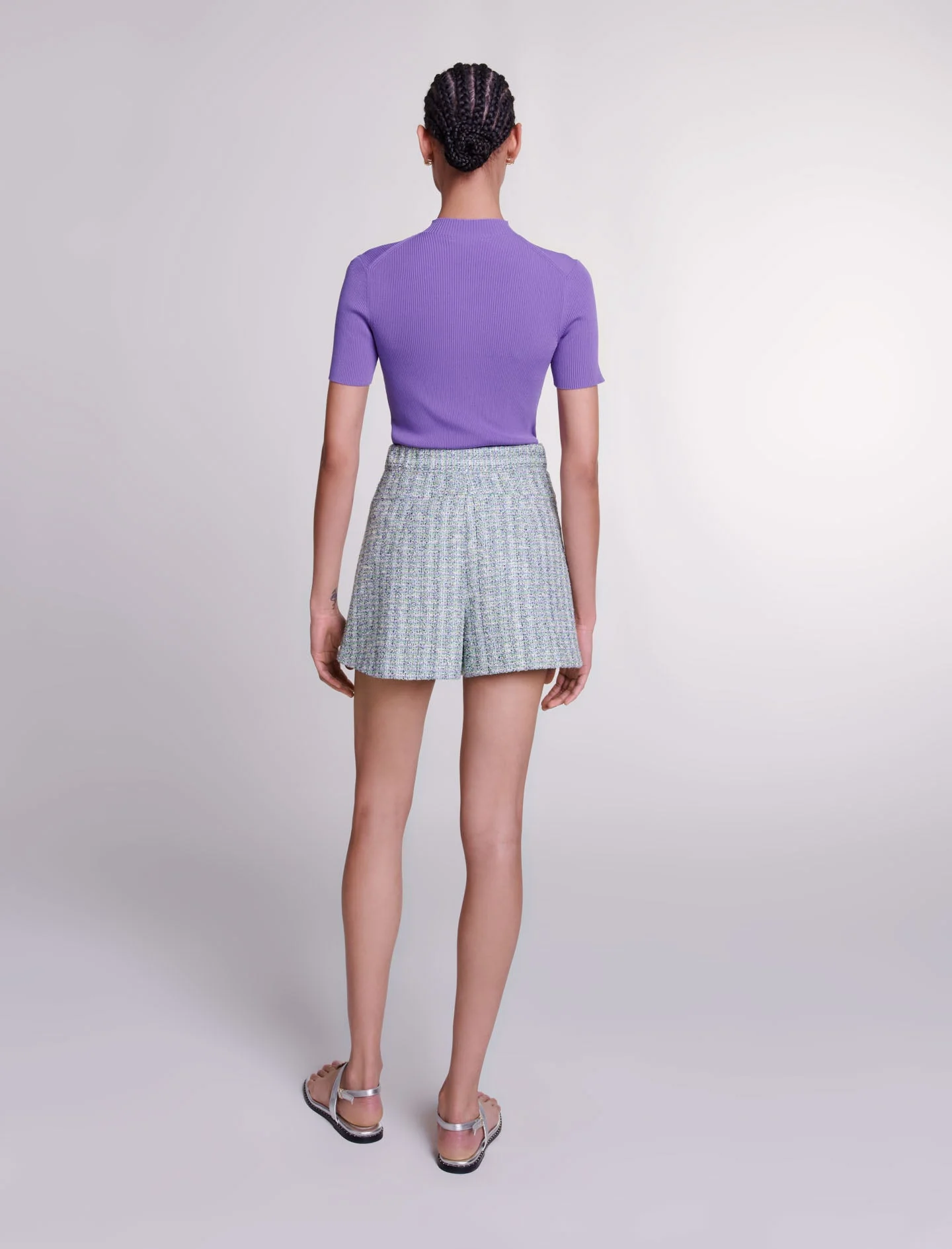 • Pantalón corto de tweed con hilos plateados