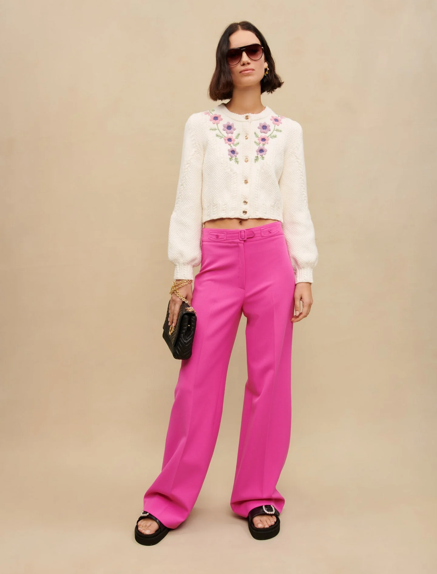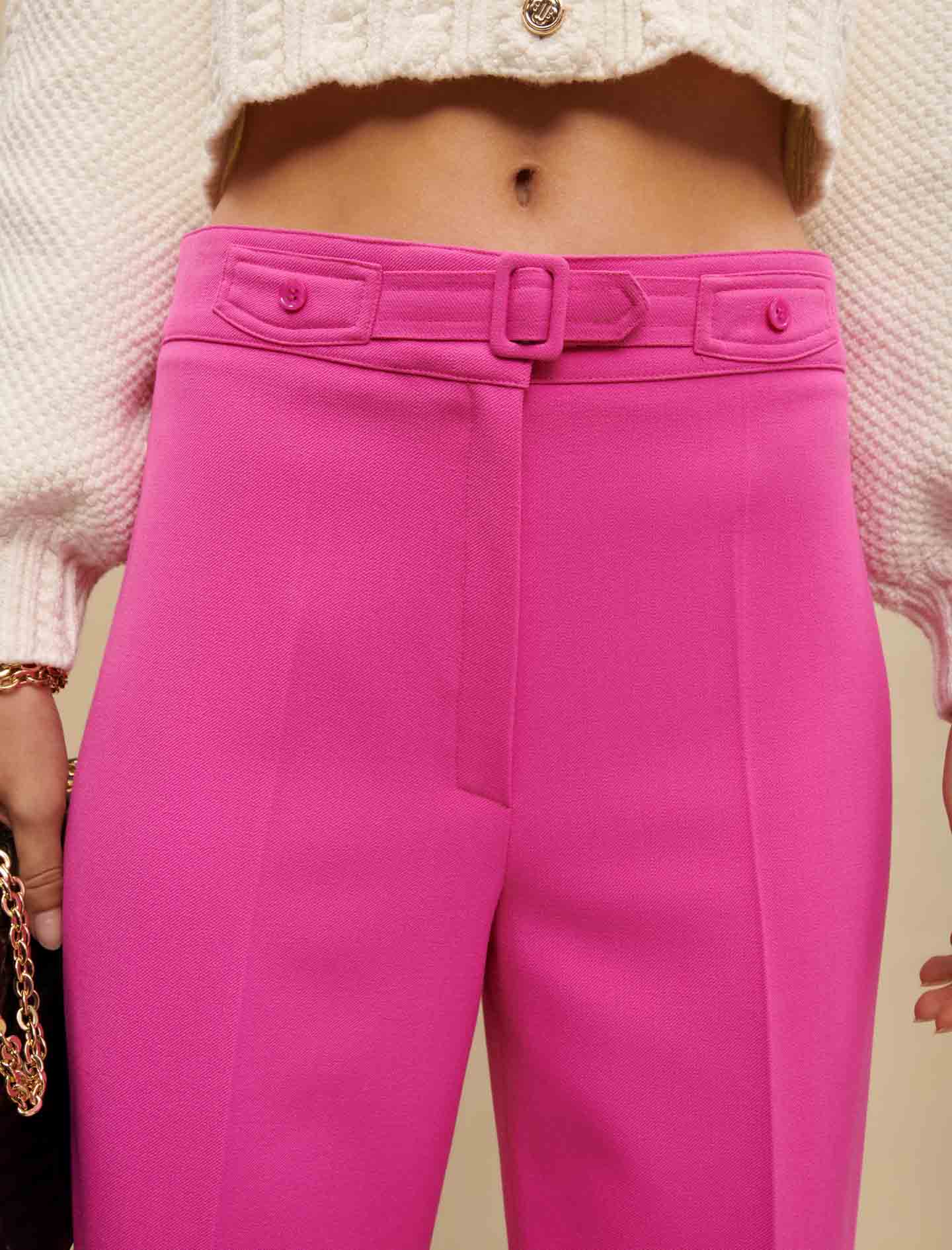 Una versión moderna y feminizada de los pantalones de traje para hombre. Con su línea delicadamente acampanada, estos pantalones de traje se centran en el volumen y combinan bien con una camisa rosa pastel para una agradable variación de tonos.