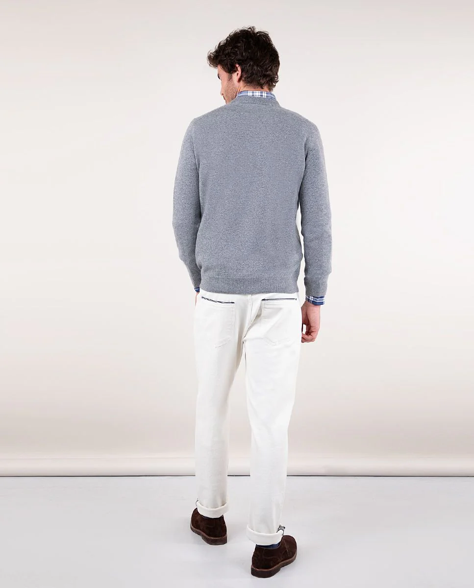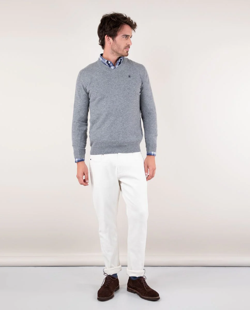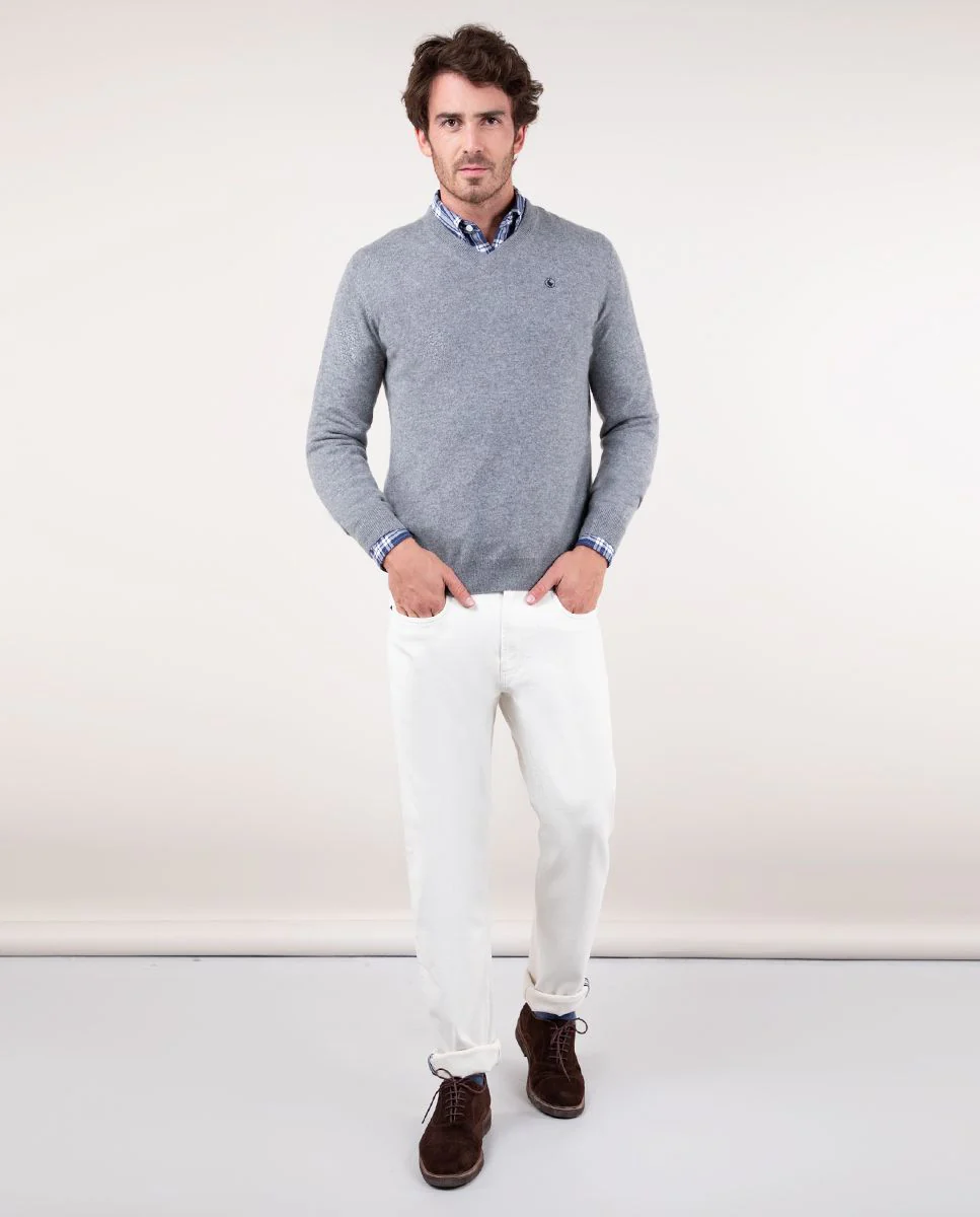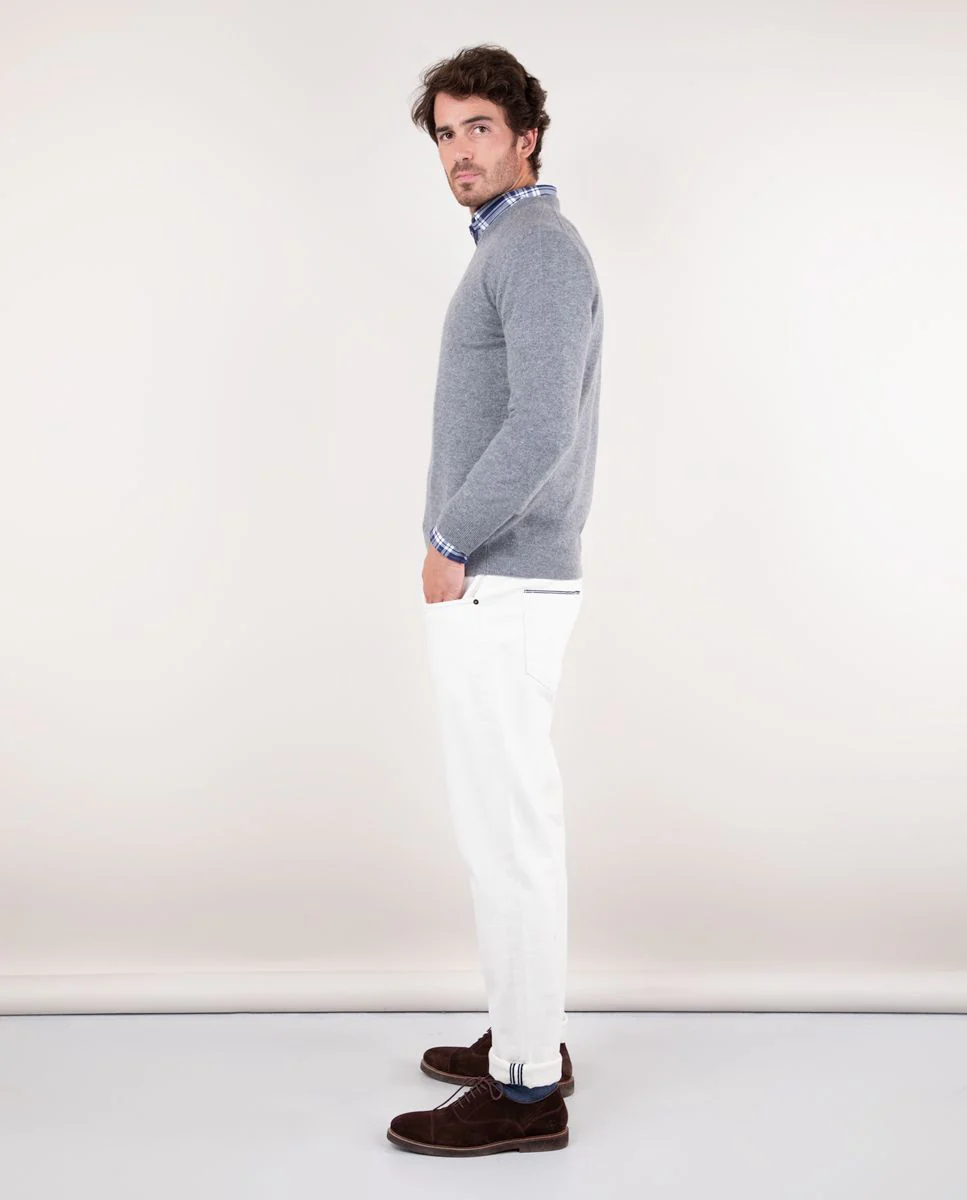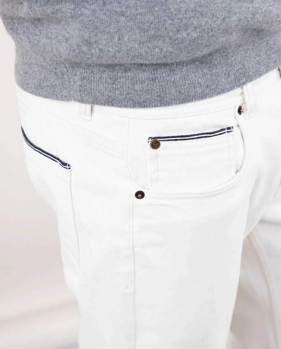 Pantalón vaquero color crudo. Corte Slim Fit, cierre con cremallera y cinco bolsillos. Tiene trabillas. Detalle de etiqueta de El Ganso en la cintura trasera.