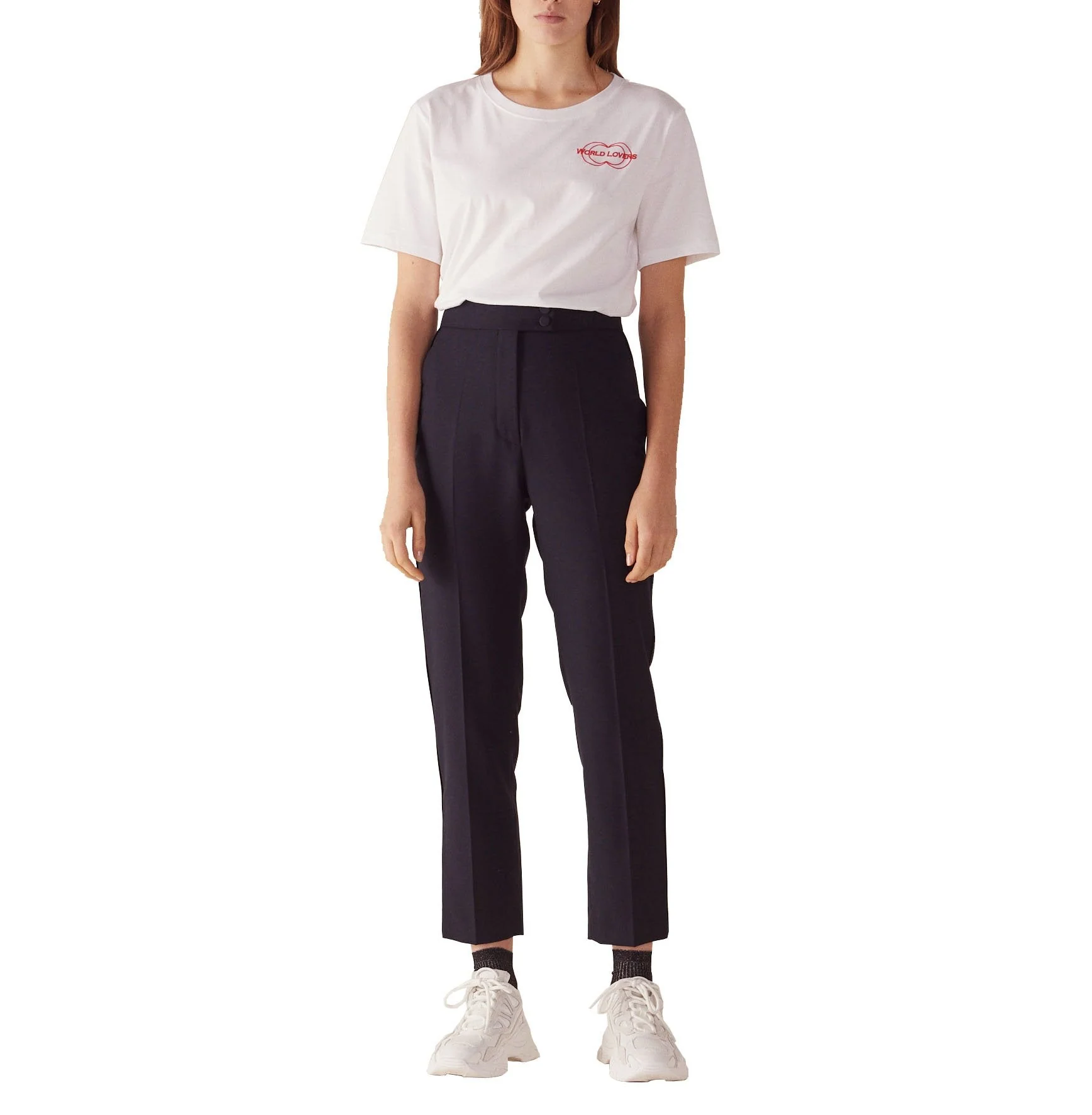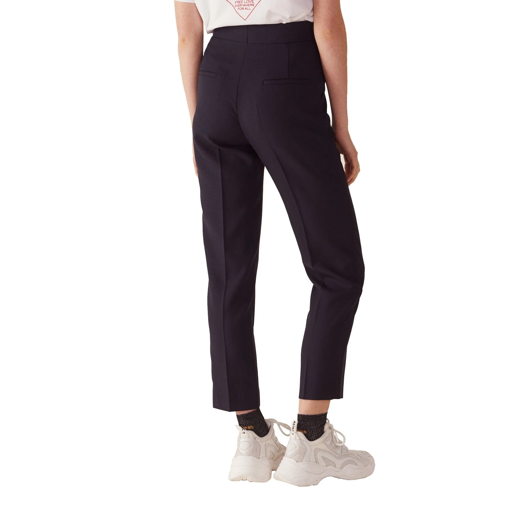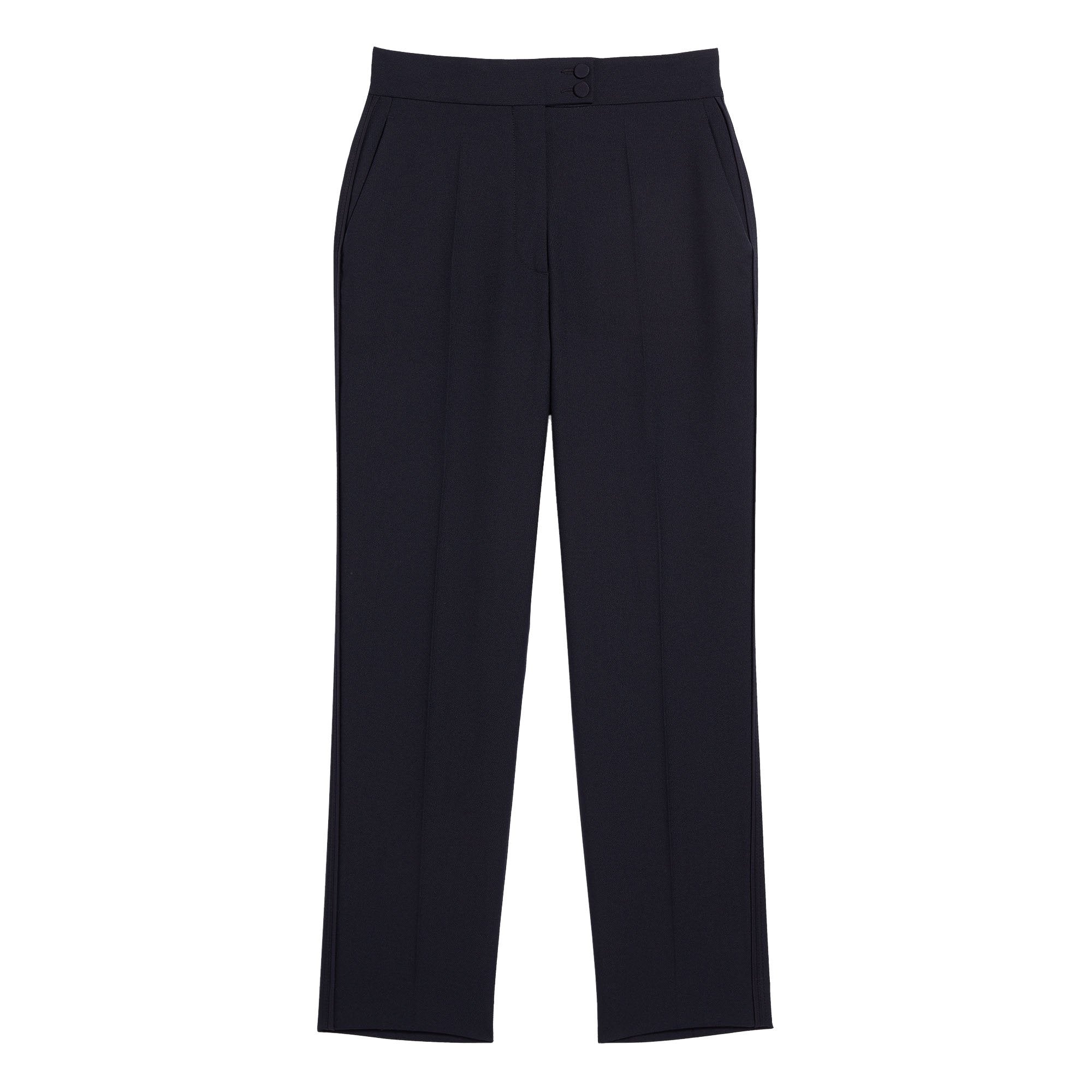 PANTALÓN LISO, CORTE AMPLIO Y CINTURA ALTA., MARCA SANDRO. 70% POLIÉSTER 30% VISCOSA. LAVADO A MANDO DELICADO, SIN BLANQUEADOR, NO SECADORA. REVISAR ETIQUETA INTERNA DE LAVADO PARA MÁS INFORMACIÓN..
