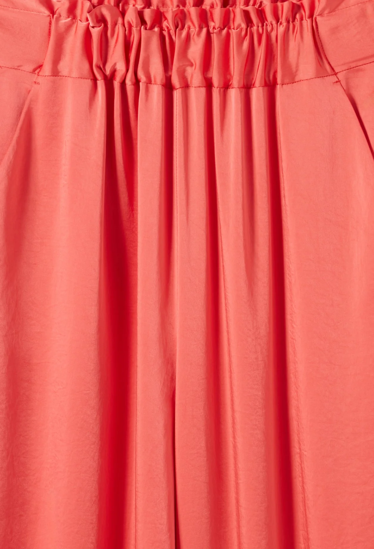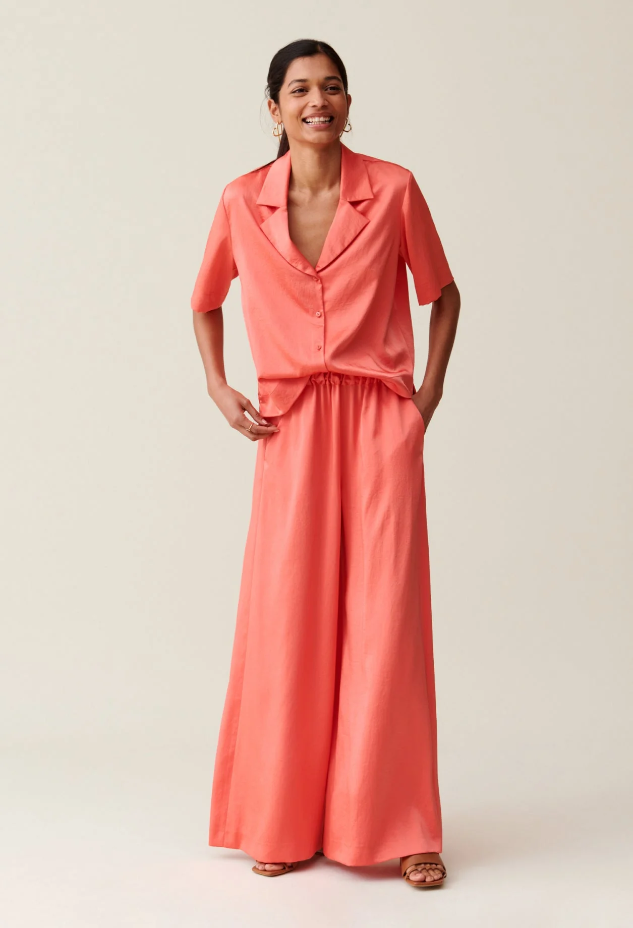 Pantalón fluido satinado de piernas anchas y rectas con cintura alta elástica