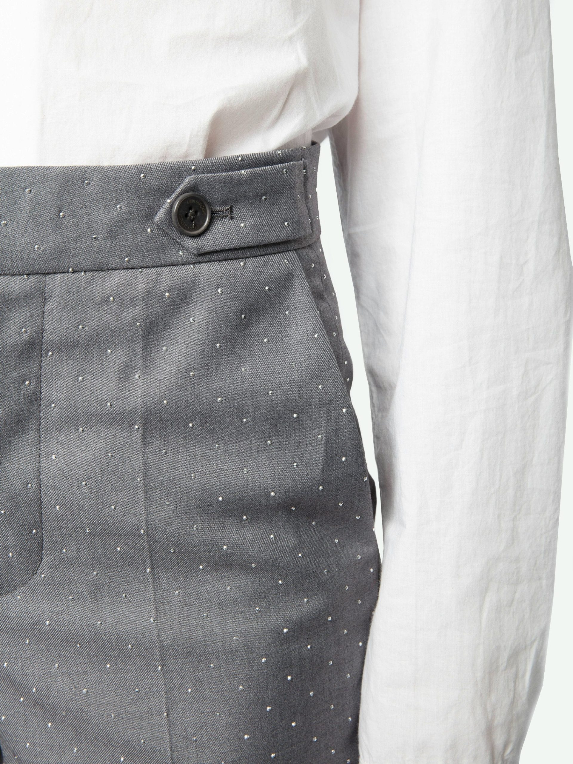 Pantalón de sastre recto con strass y bolsillos.