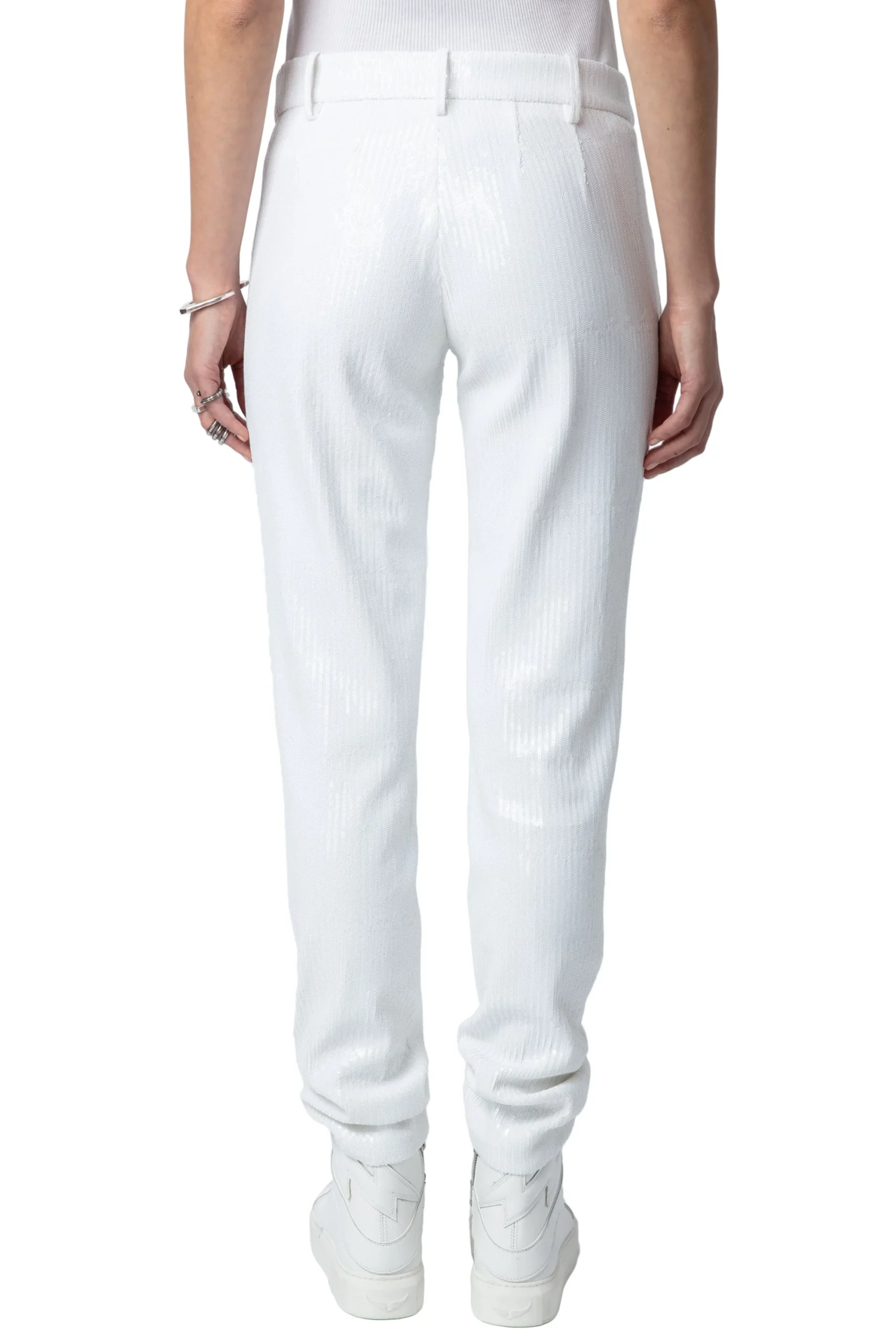 Pantalón Prune Sequins Blanco marca Zadig & Voltaire. COMPOSICIÓN. Material principal: Viscosa. Consultar instrucciones de lavado en etiqueta interna.