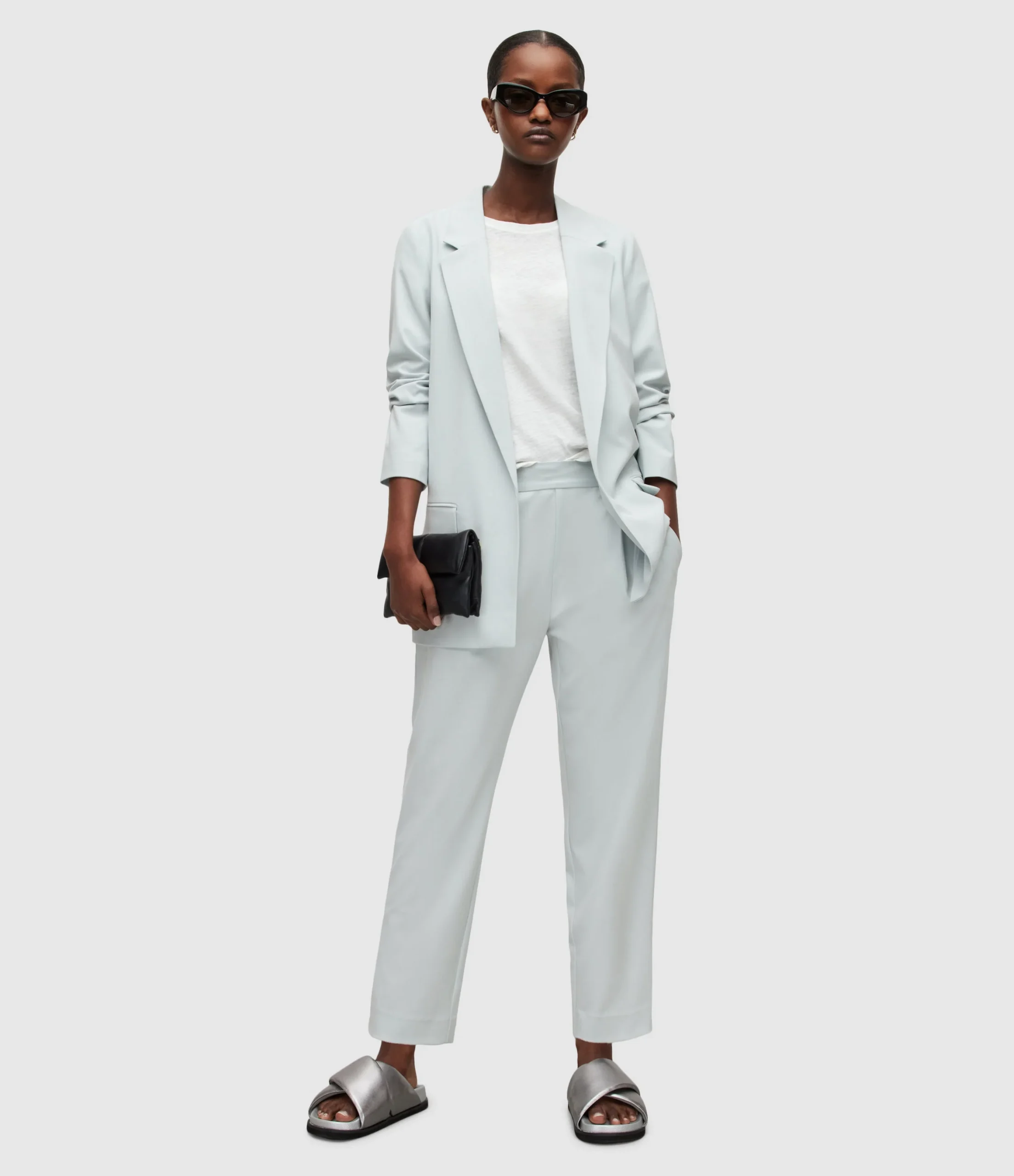 Pantalones Aleida Azul Medio para mujer, marca AllSaints. COMPOSICIÓN Y LAVADO: Consultar etiqueta interna.